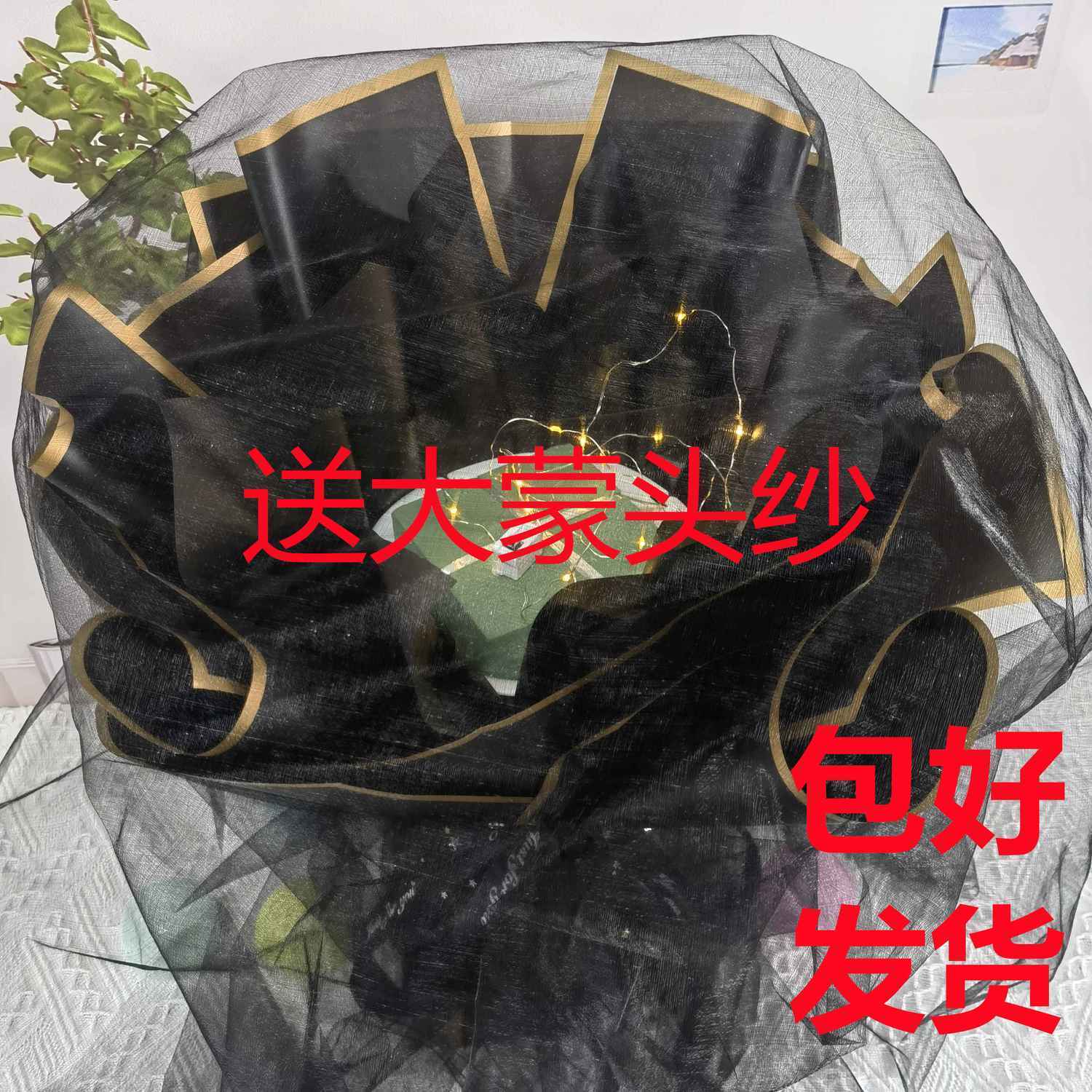 • 대형 플라워 튜브 블랙 골드 엣지 베일