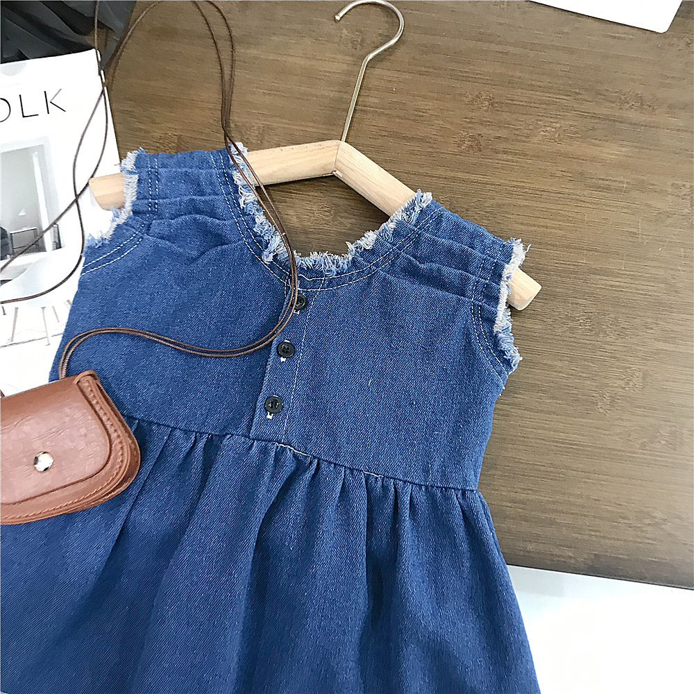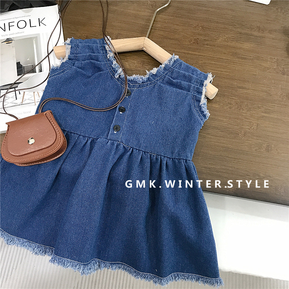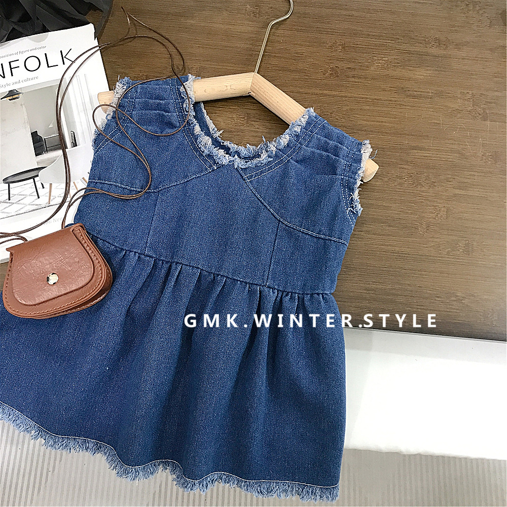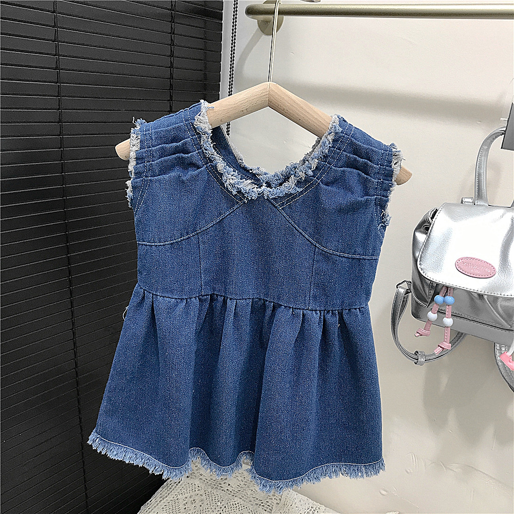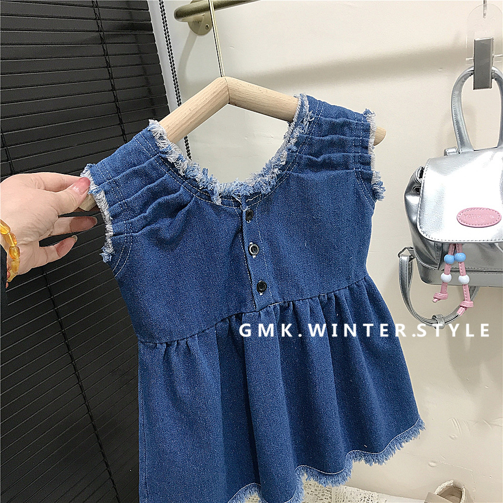 여자 조끼 스커트 여름 2025 새로운 한국 아기 서양식 데님 스커트 캐주얼 느슨한 어린이 원피스스토어 가기