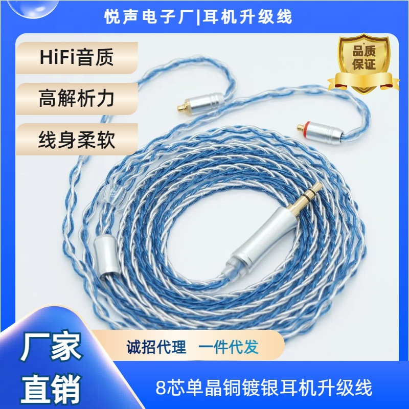 Yuesheng 8 가닥 블루 실버 단결정 구리 실버 도금 된 QDCTFZ0.78MMCX 마이크 헤드셋 오디오 업그레이드 라인을 장착 할 수 있습니다스토어 가기