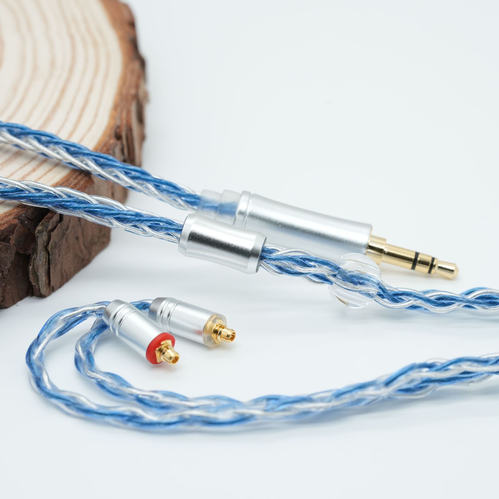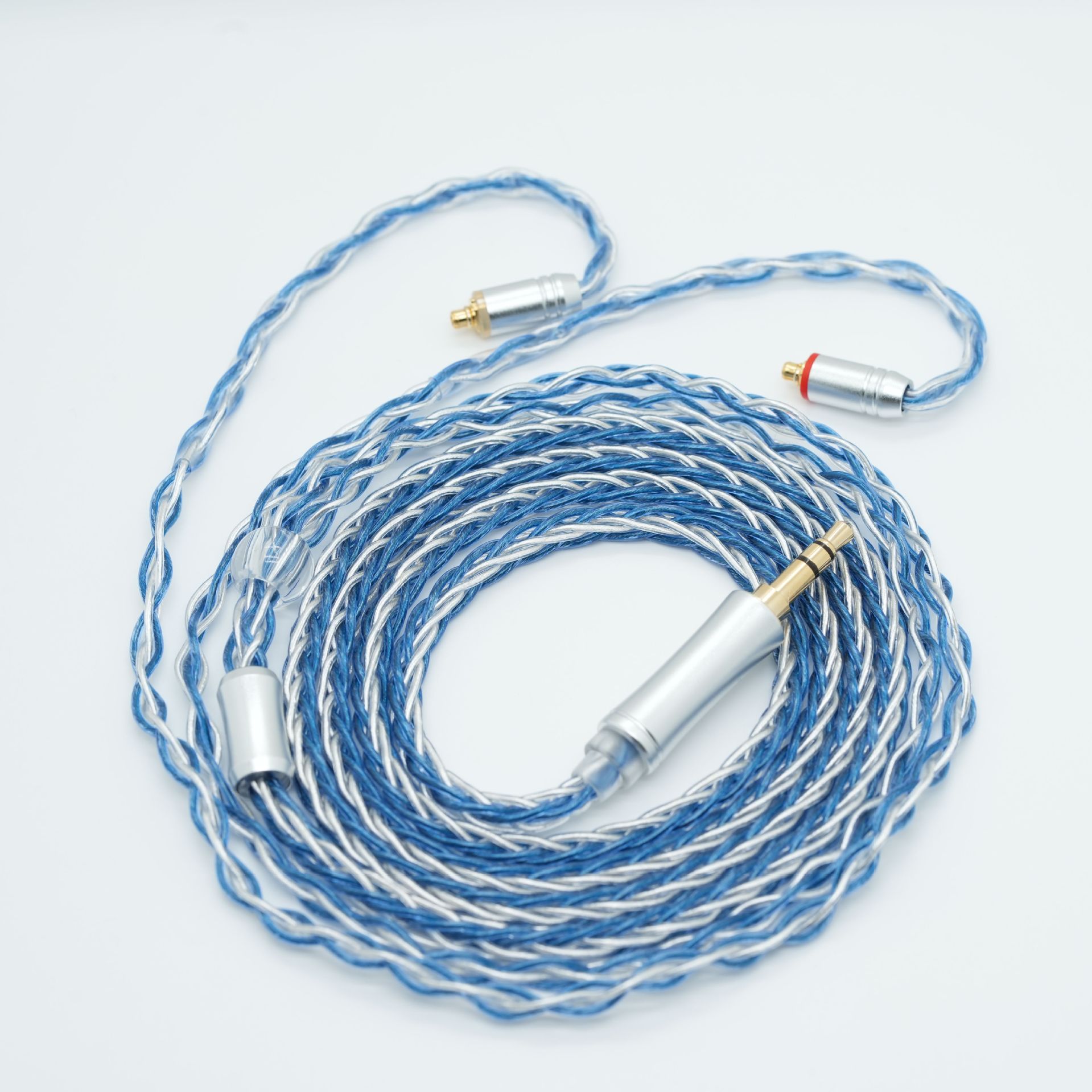 Yuesheng 8 가닥 블루 실버 단결정 구리 실버 도금 된 QDCTFZ0.78MMCX 마이크 헤드셋 오디오 업그레이드 라인을 장착 할 수 있습니다