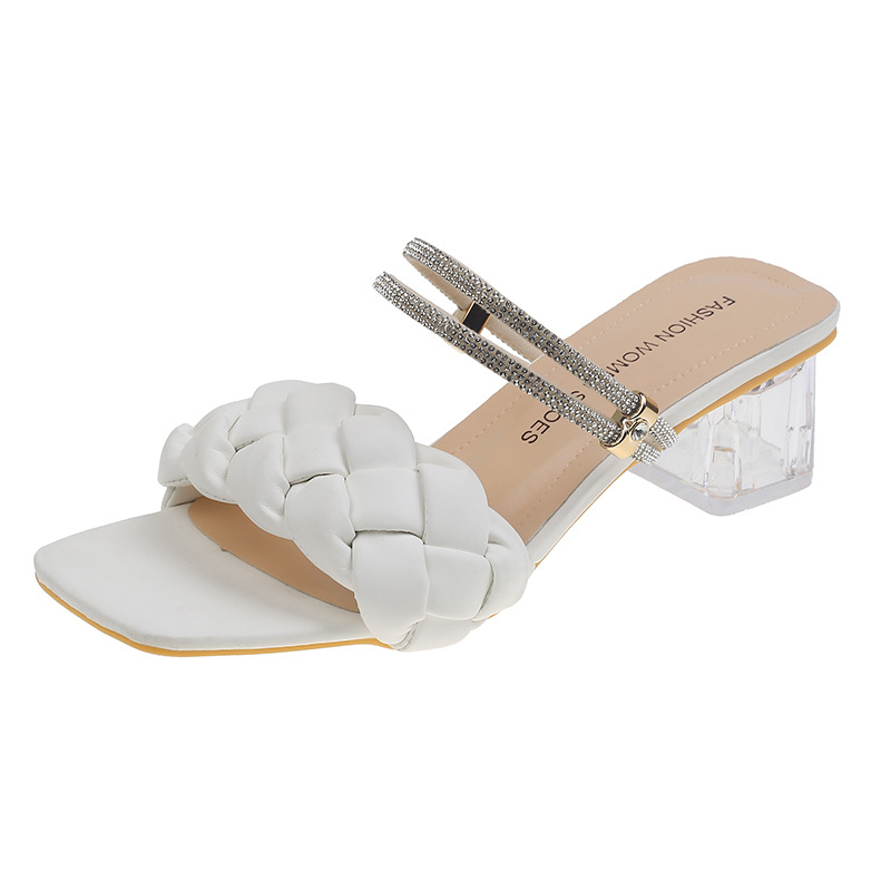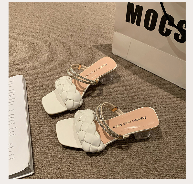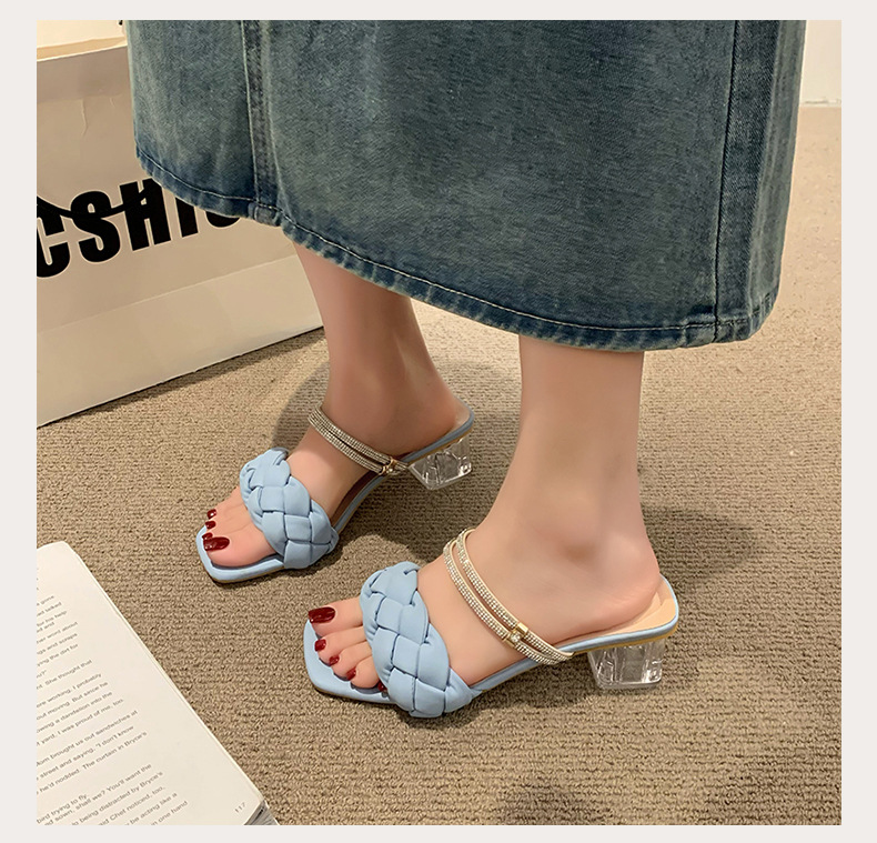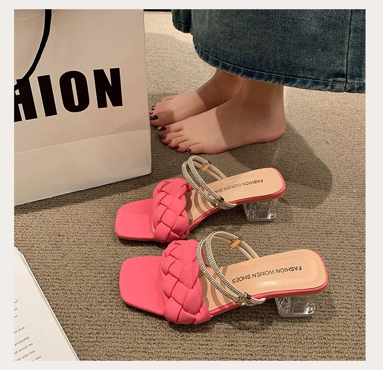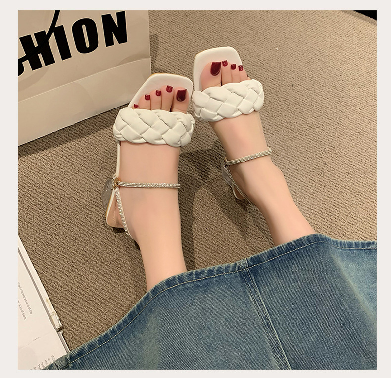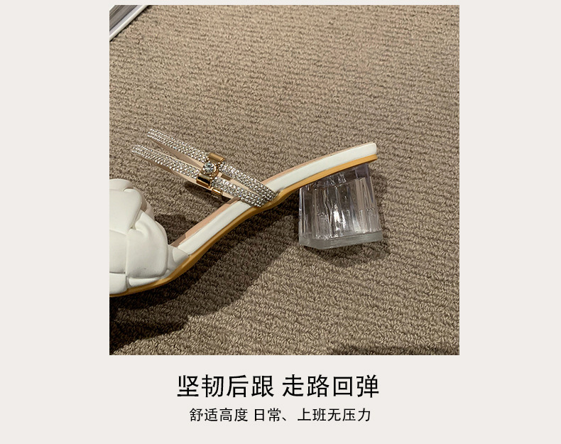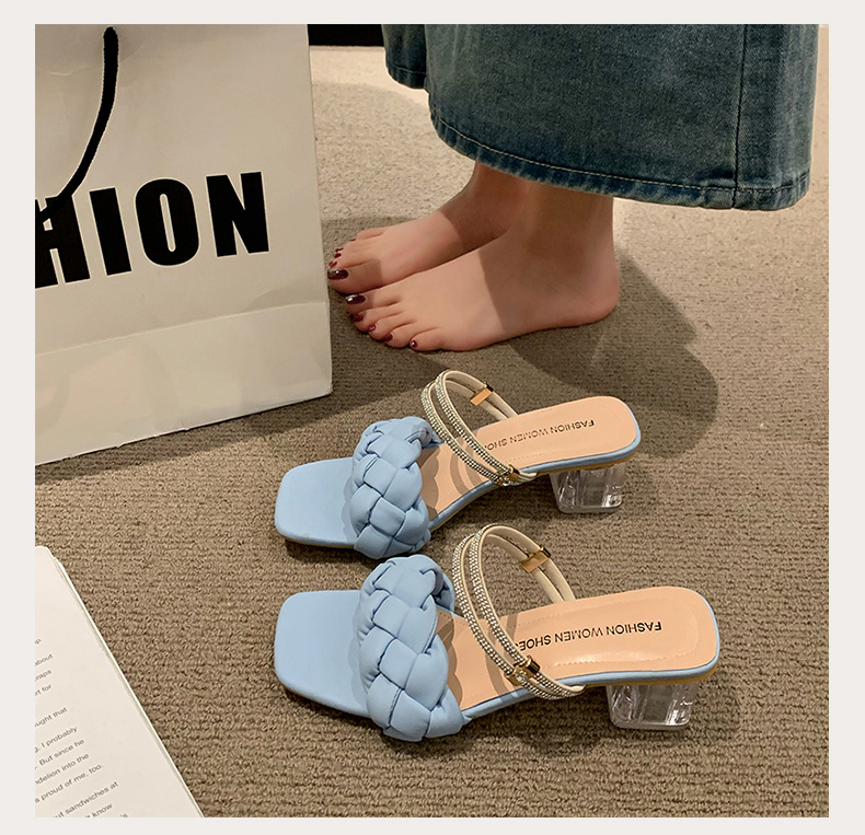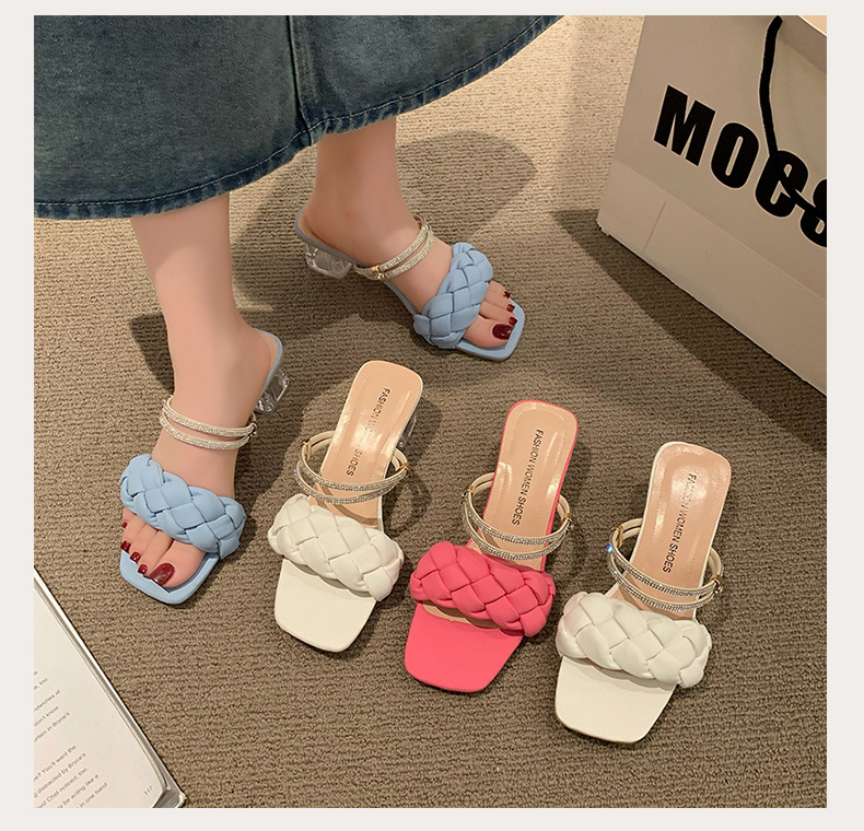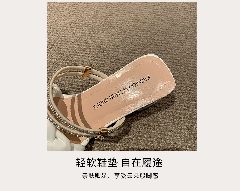 여성용 하이힐 샌들 페어리 스타일 프랑스 스타일 샌들 양방향 슬리퍼 여성 여름 2024 새로운 의상 라인스톤 하이스토어 가기