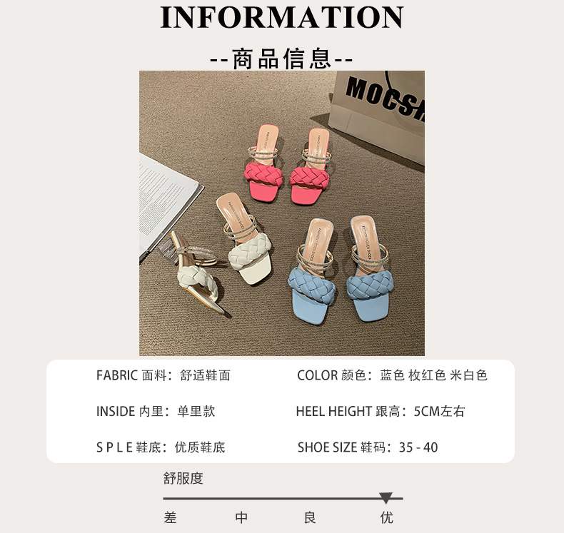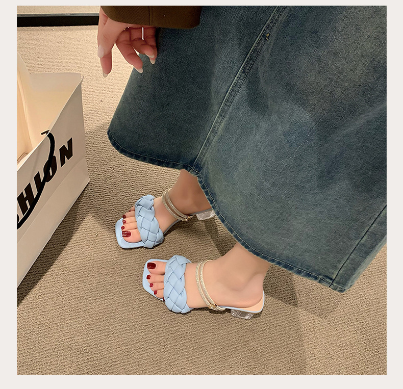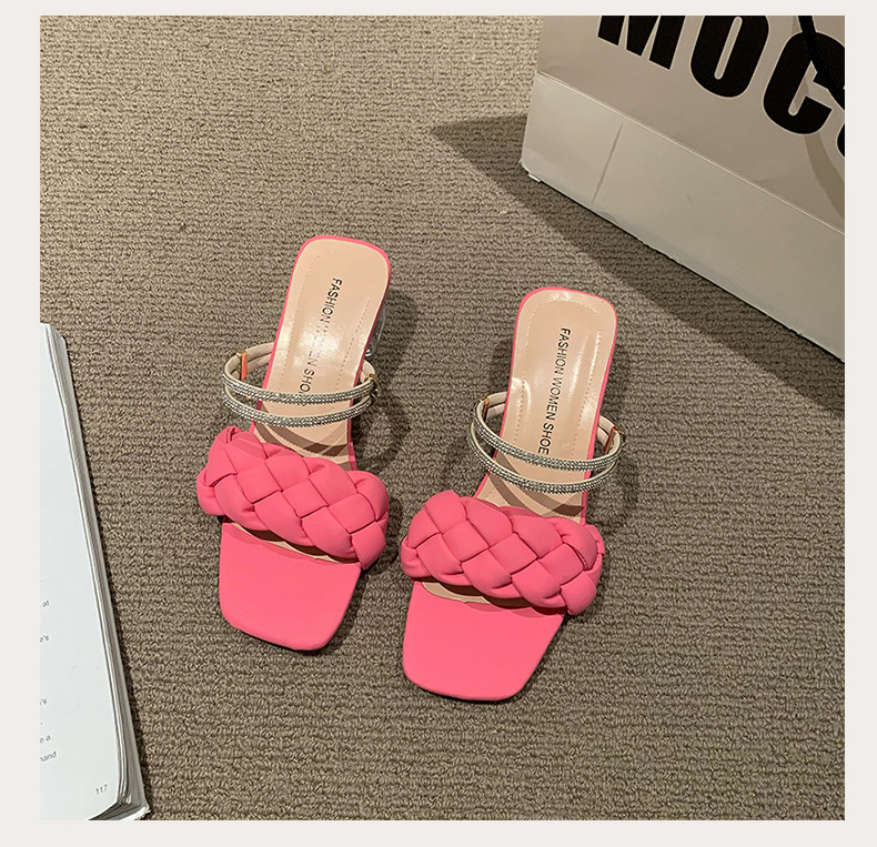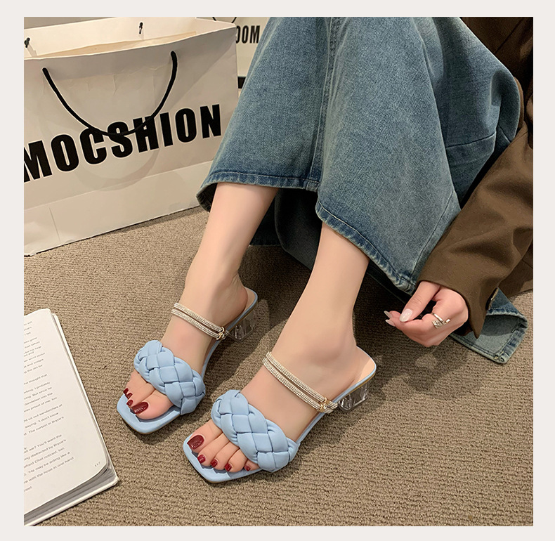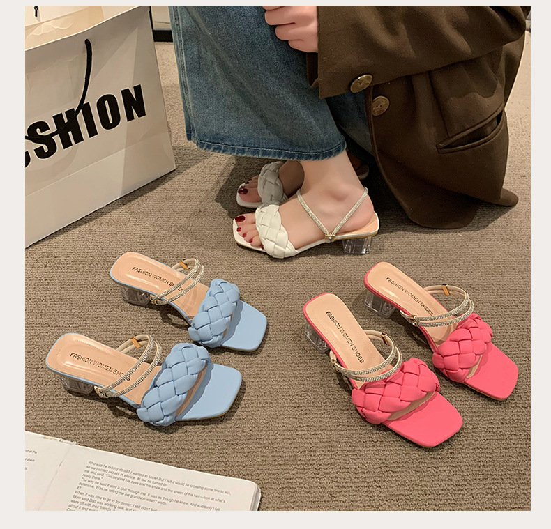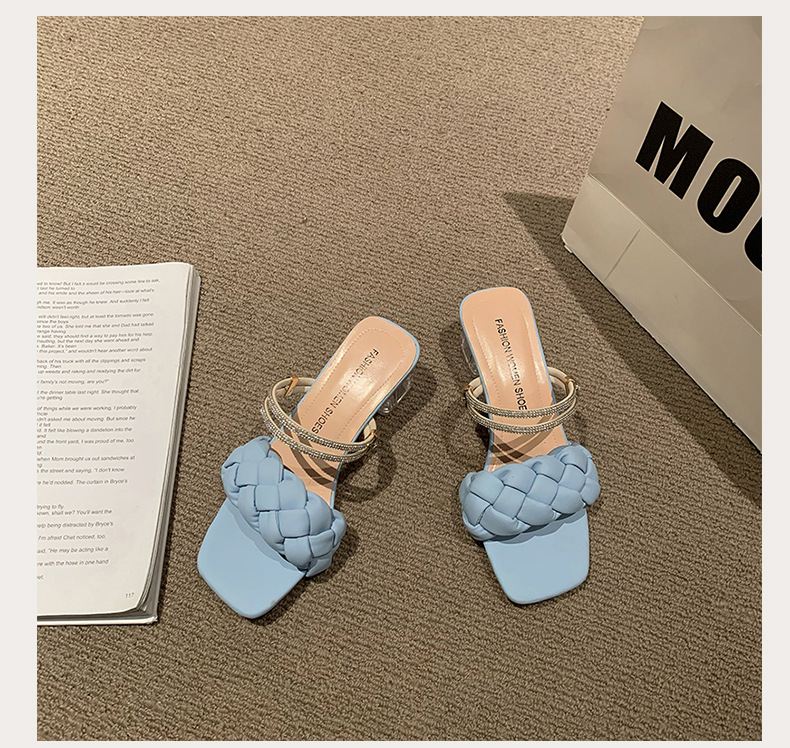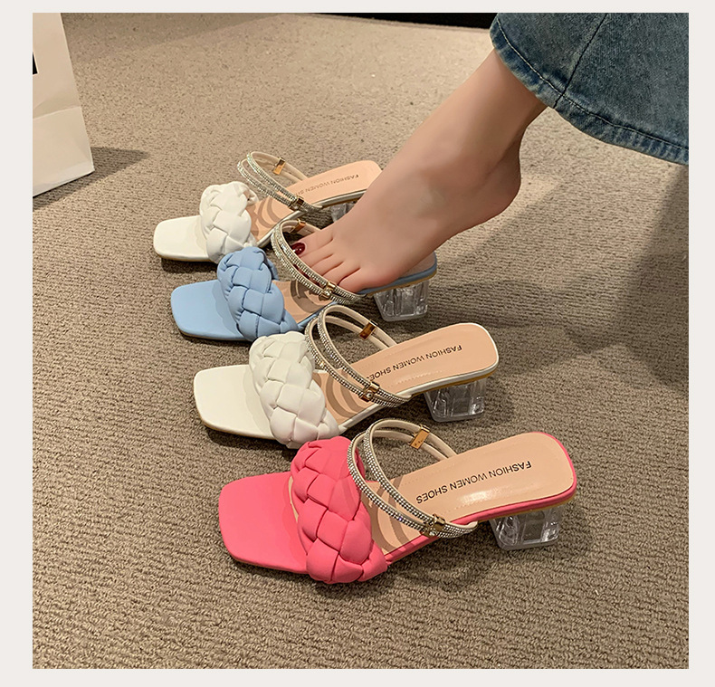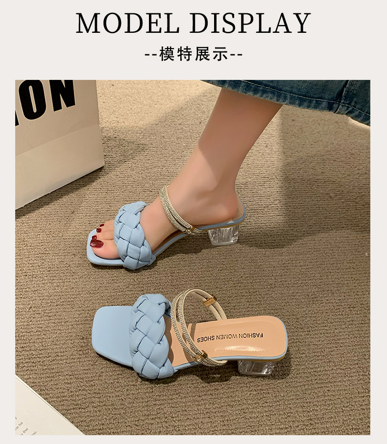 여성용 하이힐 샌들 페어리 스타일 프랑스 스타일 샌들 양방향 슬리퍼 여성 여름 2024 새로운 의상 라인스톤 하이스토어 가기