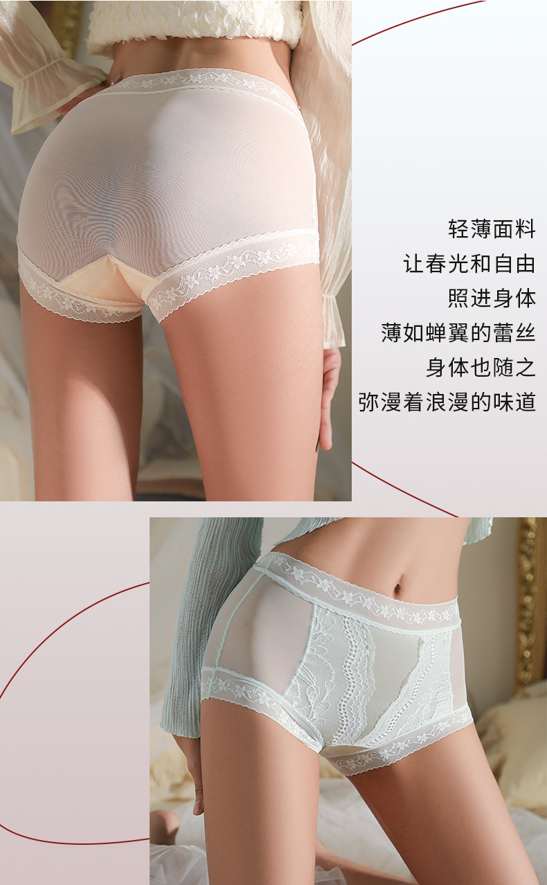 봄 여름 신상품 얇은 레이스 하이 웨이스트 속옷, 살짝 배를 조여주는 통기성, 무봉제 실크 유산균 가랑이 팬티, 여성용스토어 가기