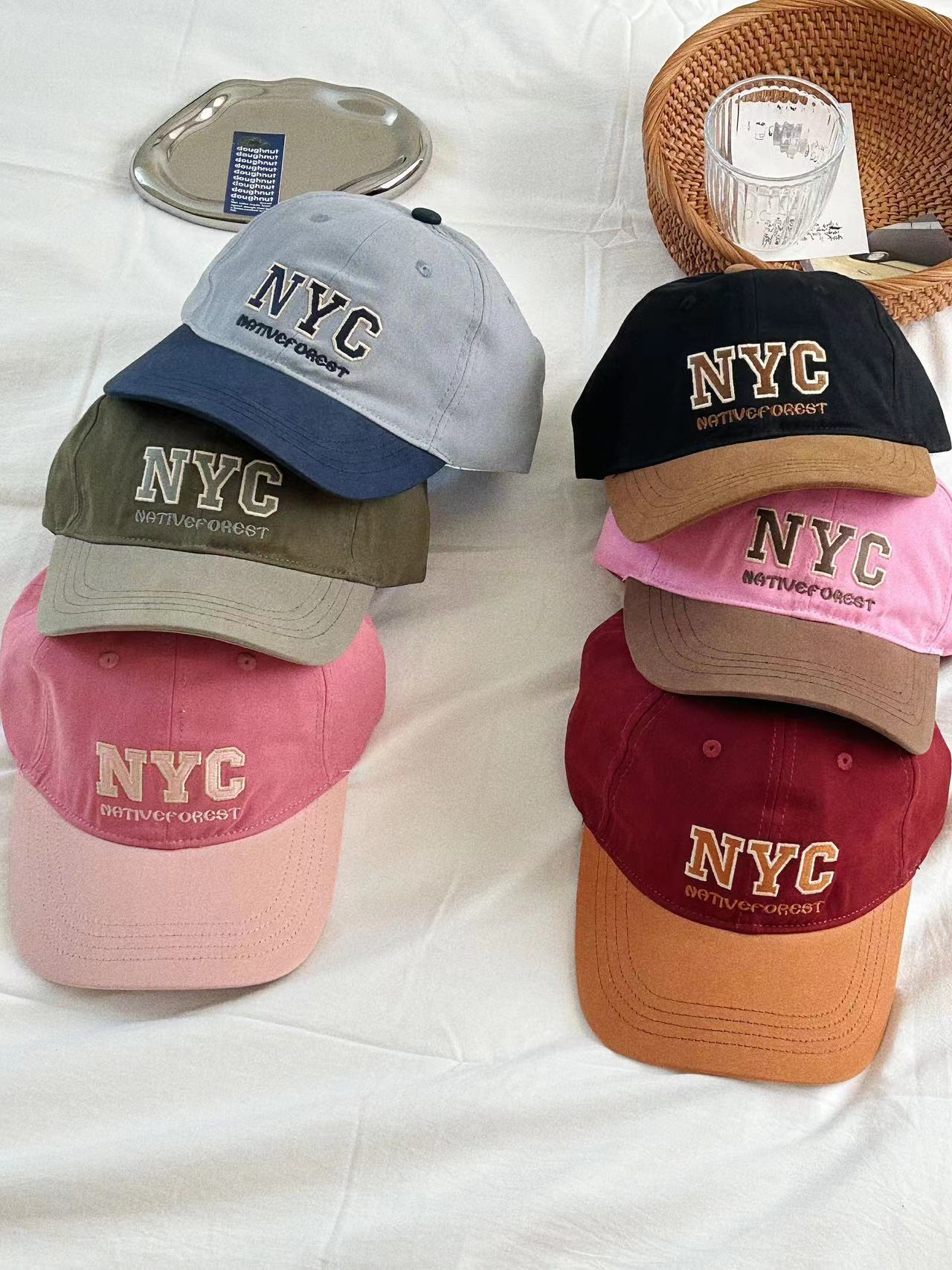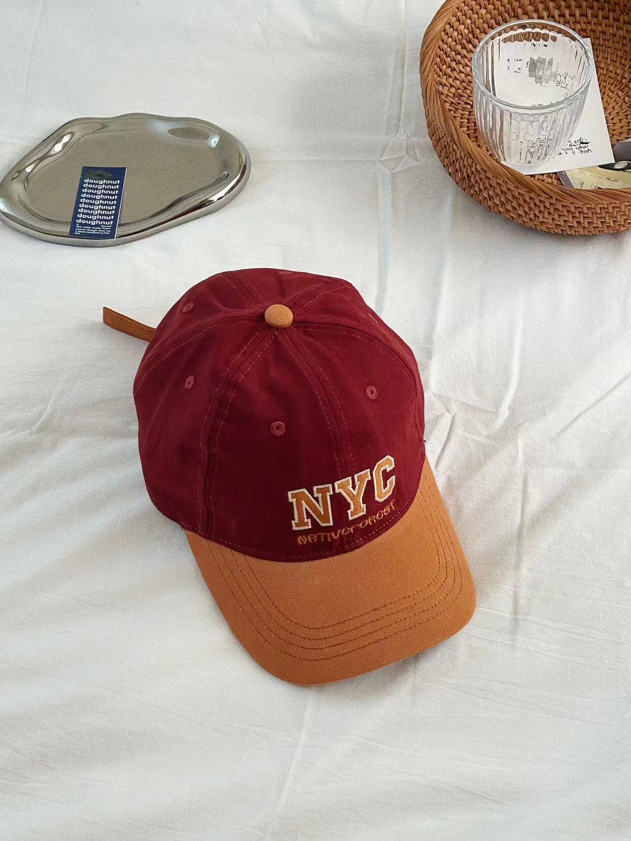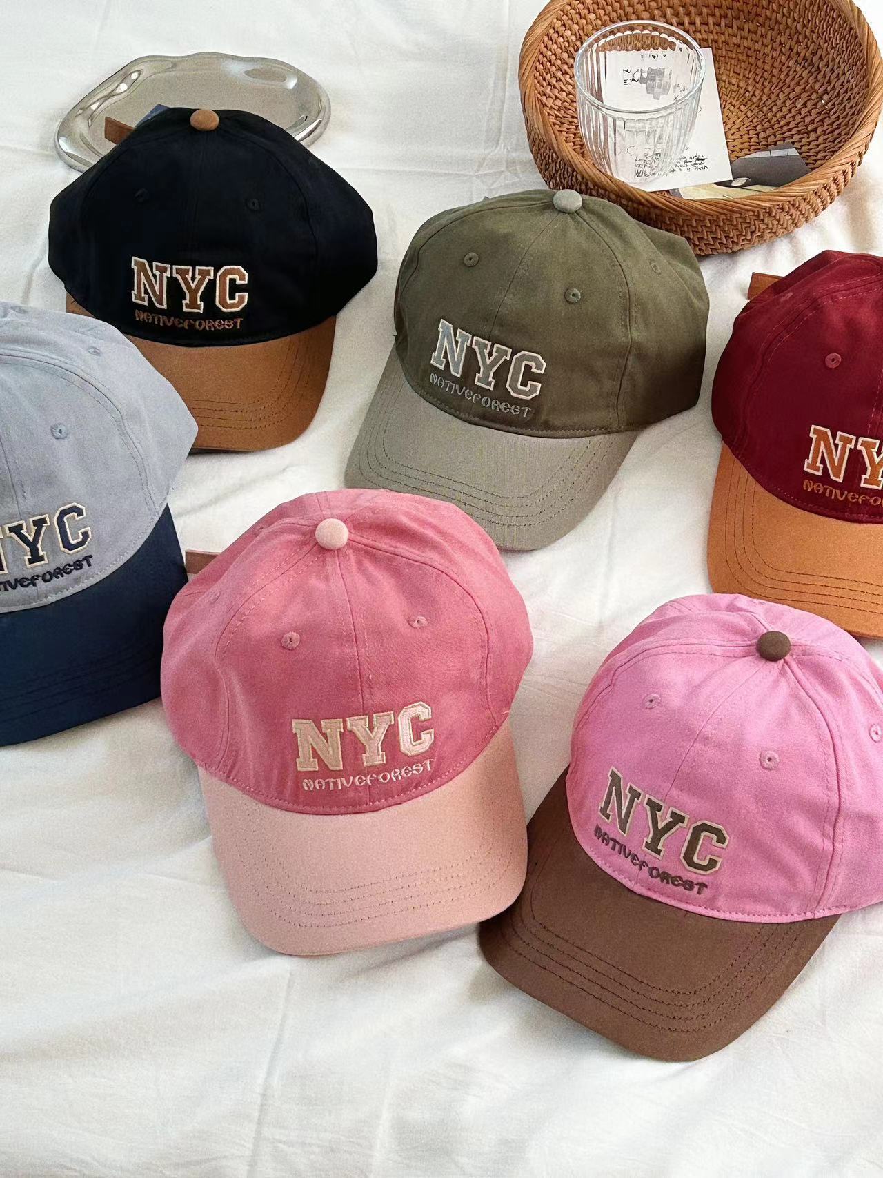 24 이른 가을 새로운 대비 색상 스티칭 NYC 문자 자수 작은 신선한 달콤한 캐주얼 일본 야구 한국 모자스토어 가기