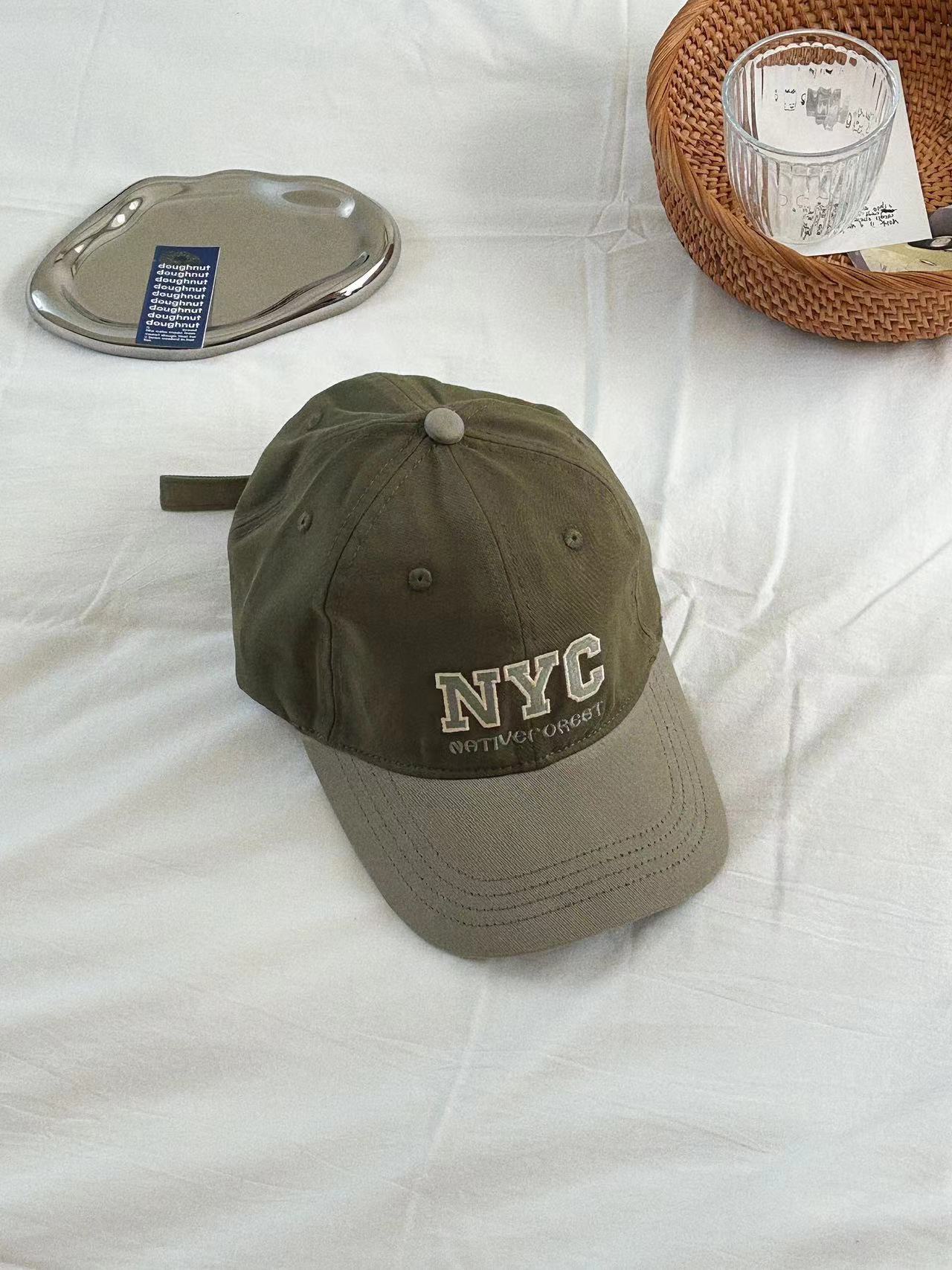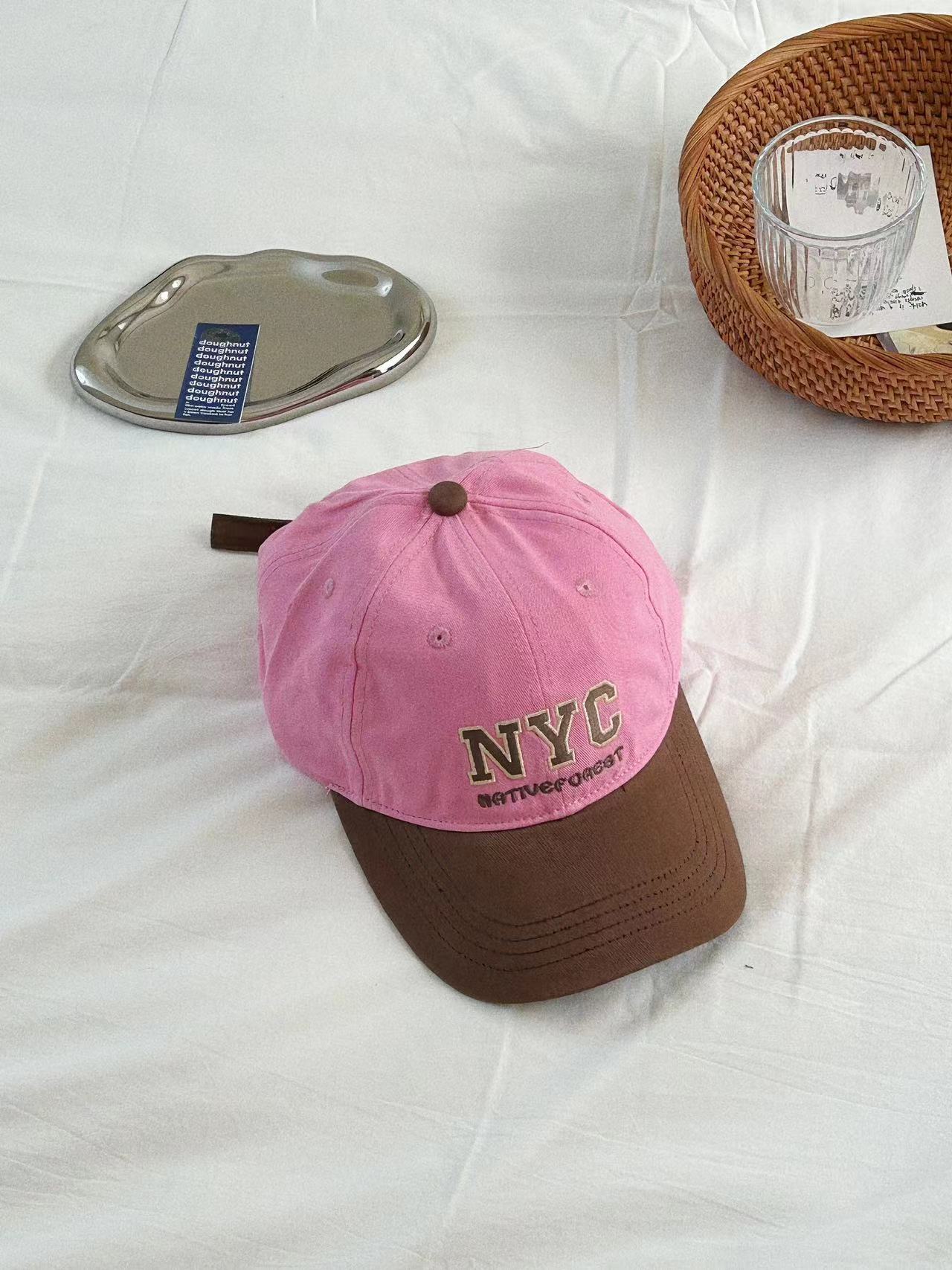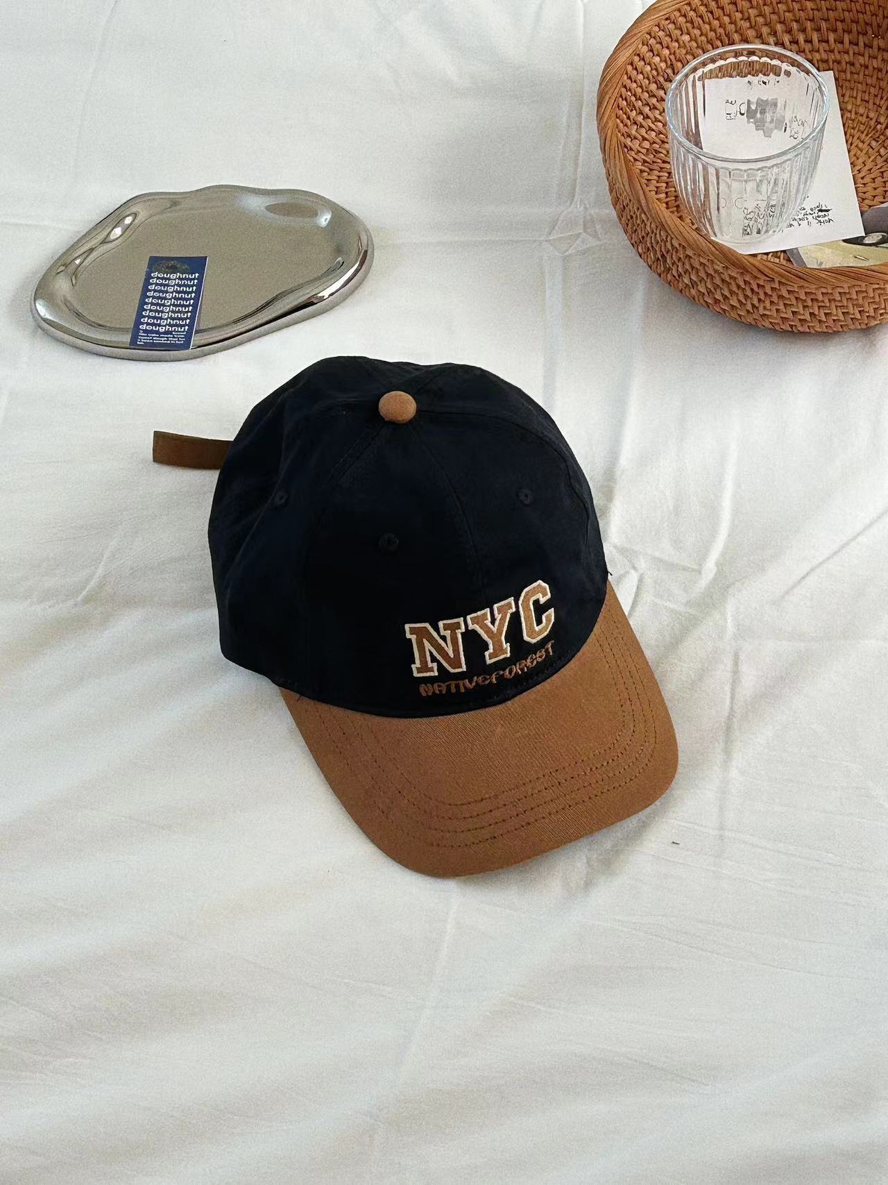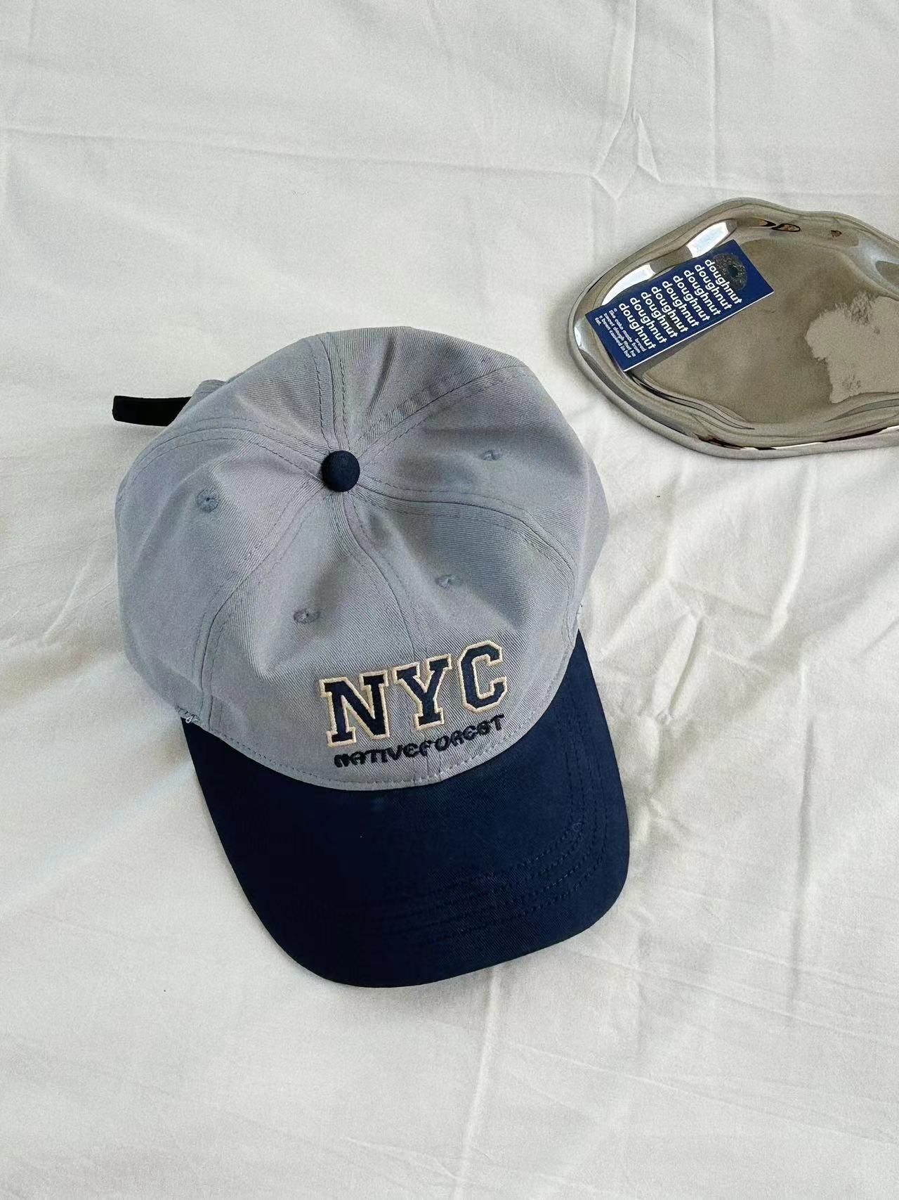 24 이른 가을 새로운 대비 색상 스티칭 NYC 문자 자수 작은 신선한 달콤한 캐주얼 일본 야구 한국 모자스토어 가기