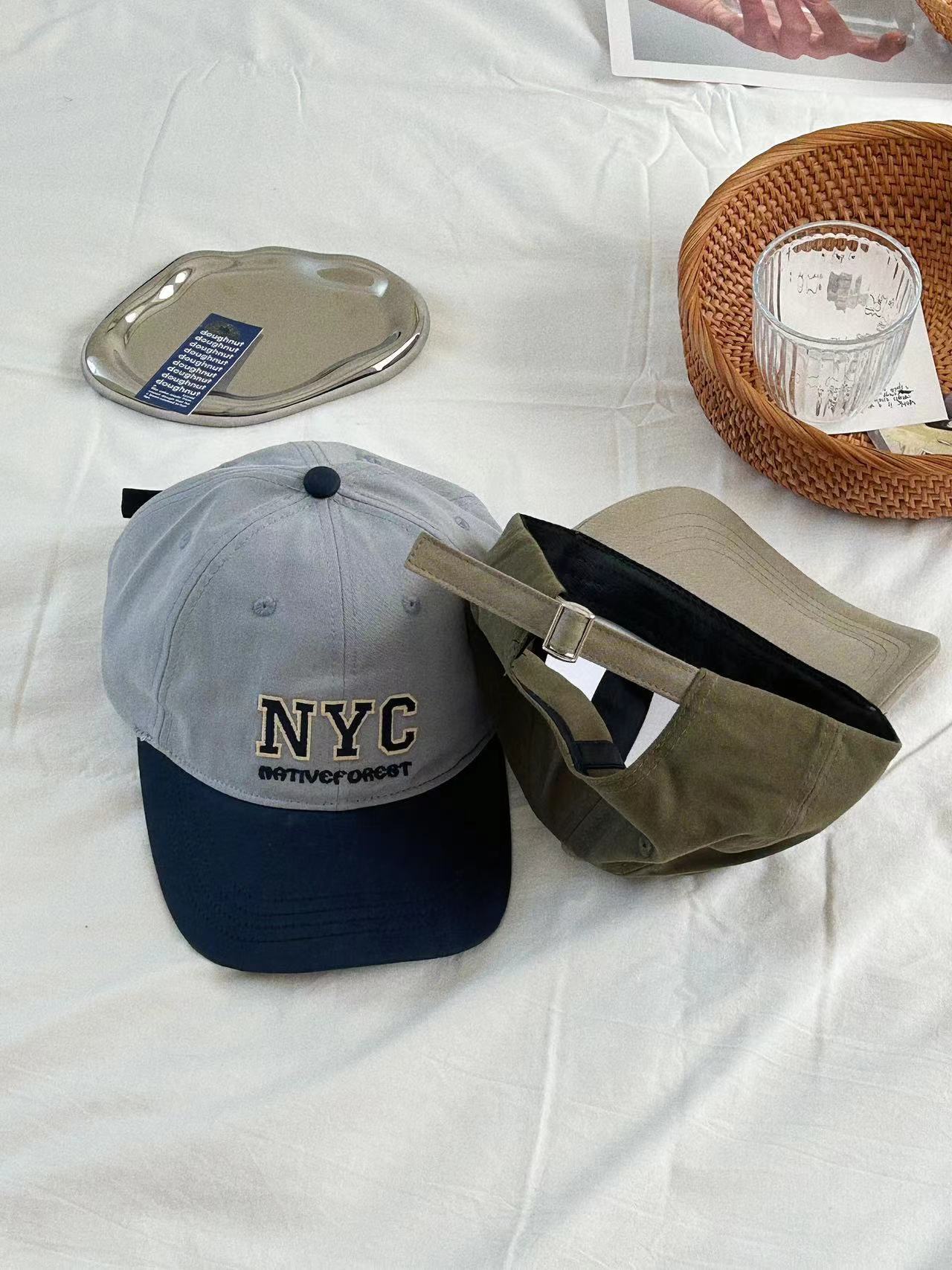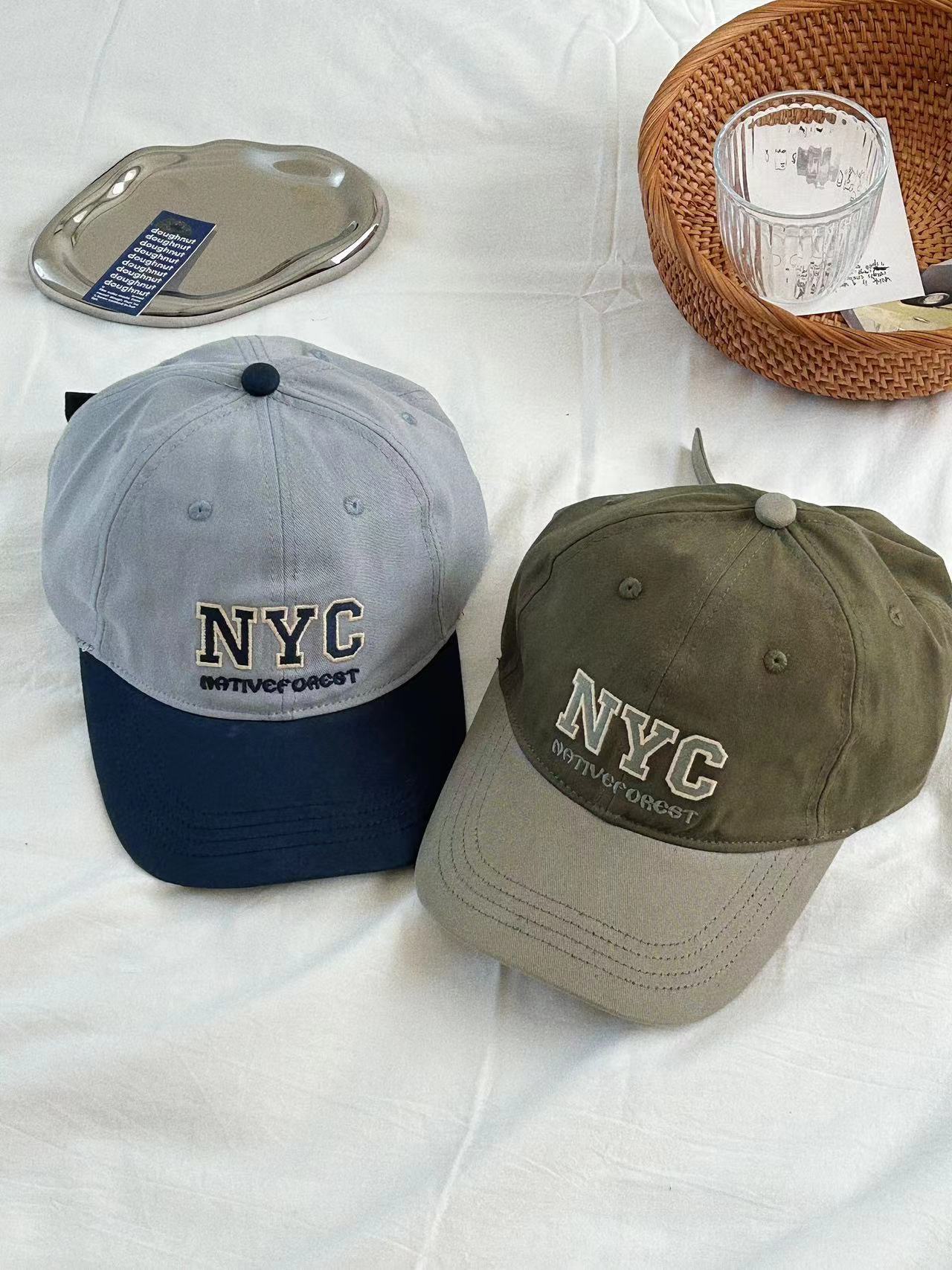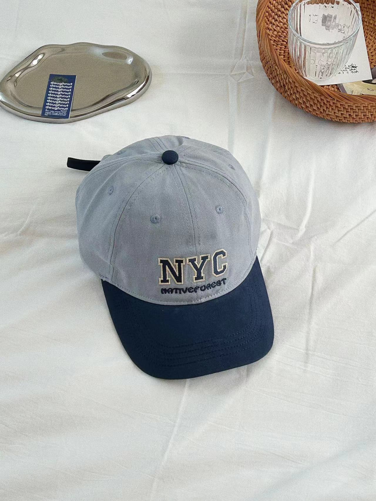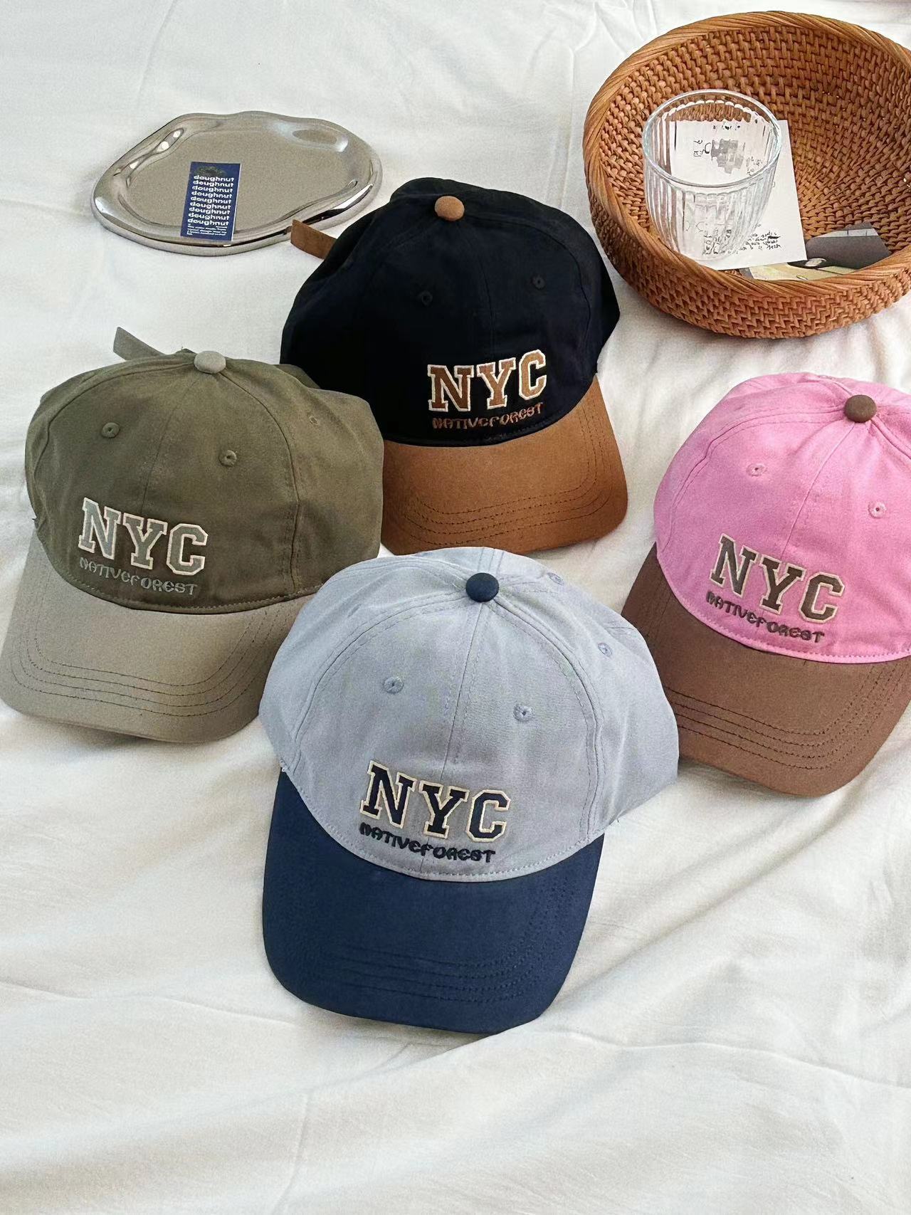 24 이른 가을 새로운 대비 색상 스티칭 NYC 문자 자수 작은 신선한 달콤한 캐주얼 일본 야구 한국 모자