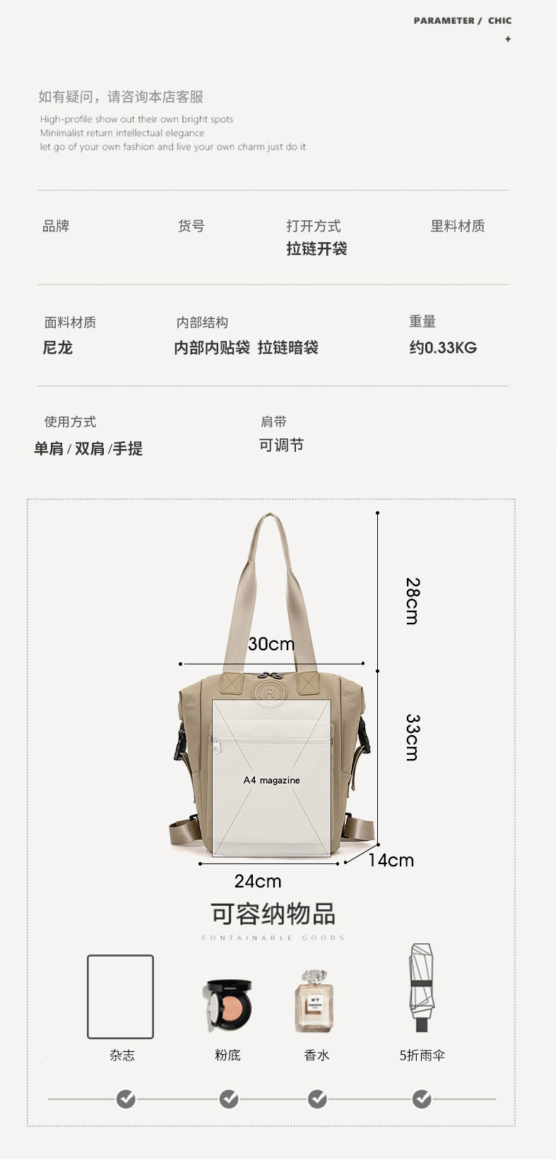 봄 2025 새로운 도착 어깨 운반 한국 스타일 나일론 헝겊 가방 국경 패션 학생 휴대용 다기능 배낭스토어 가기