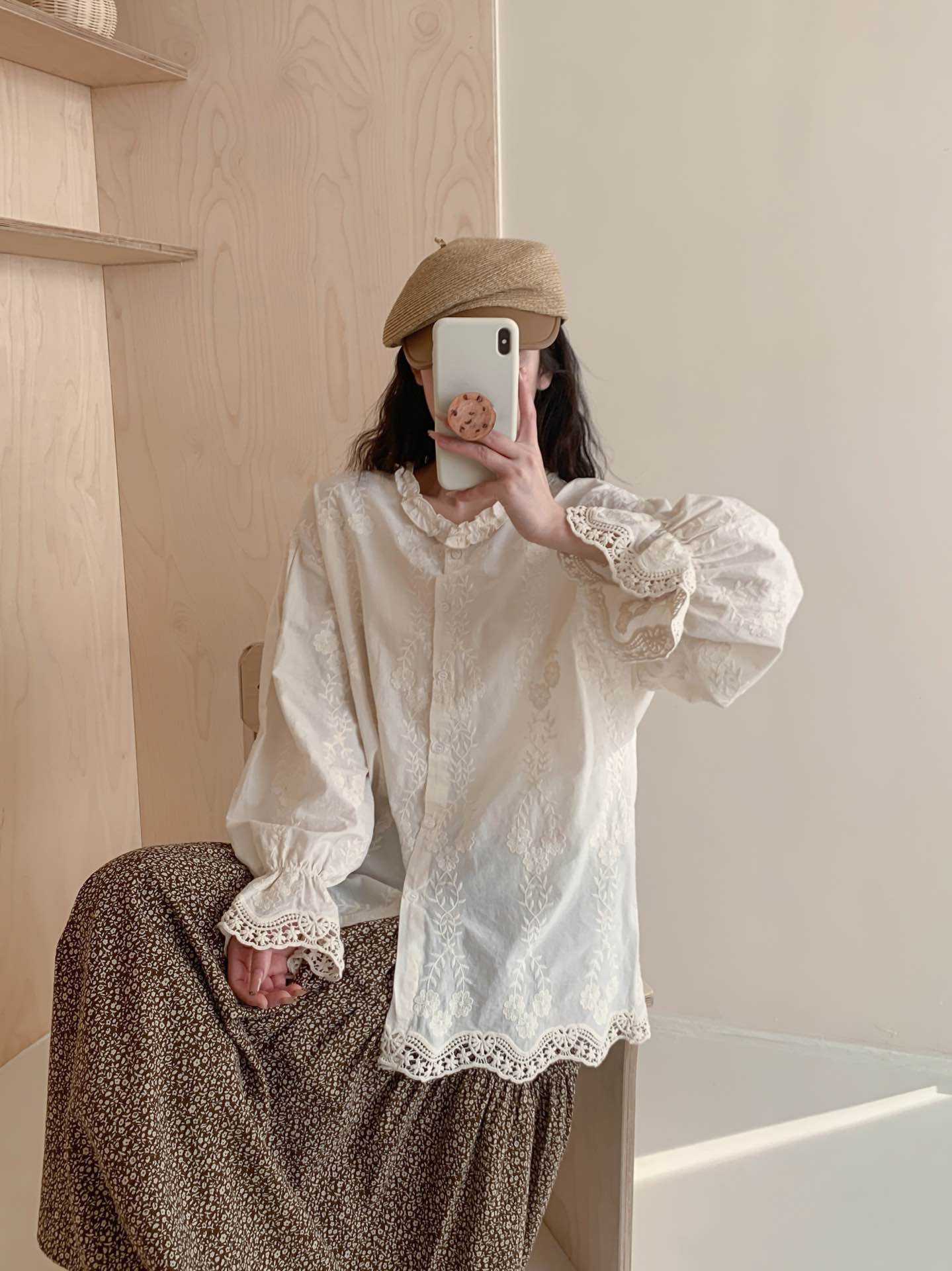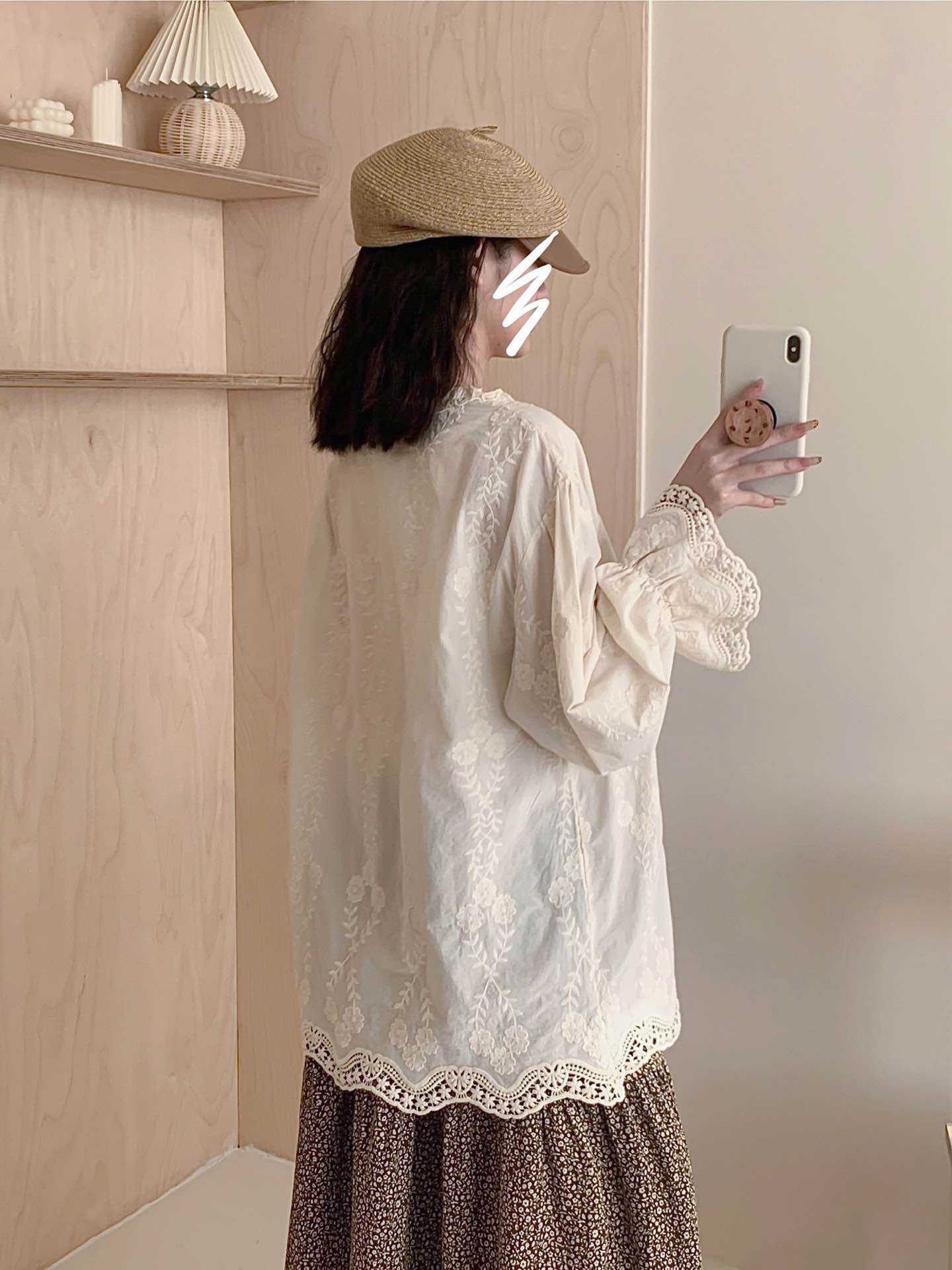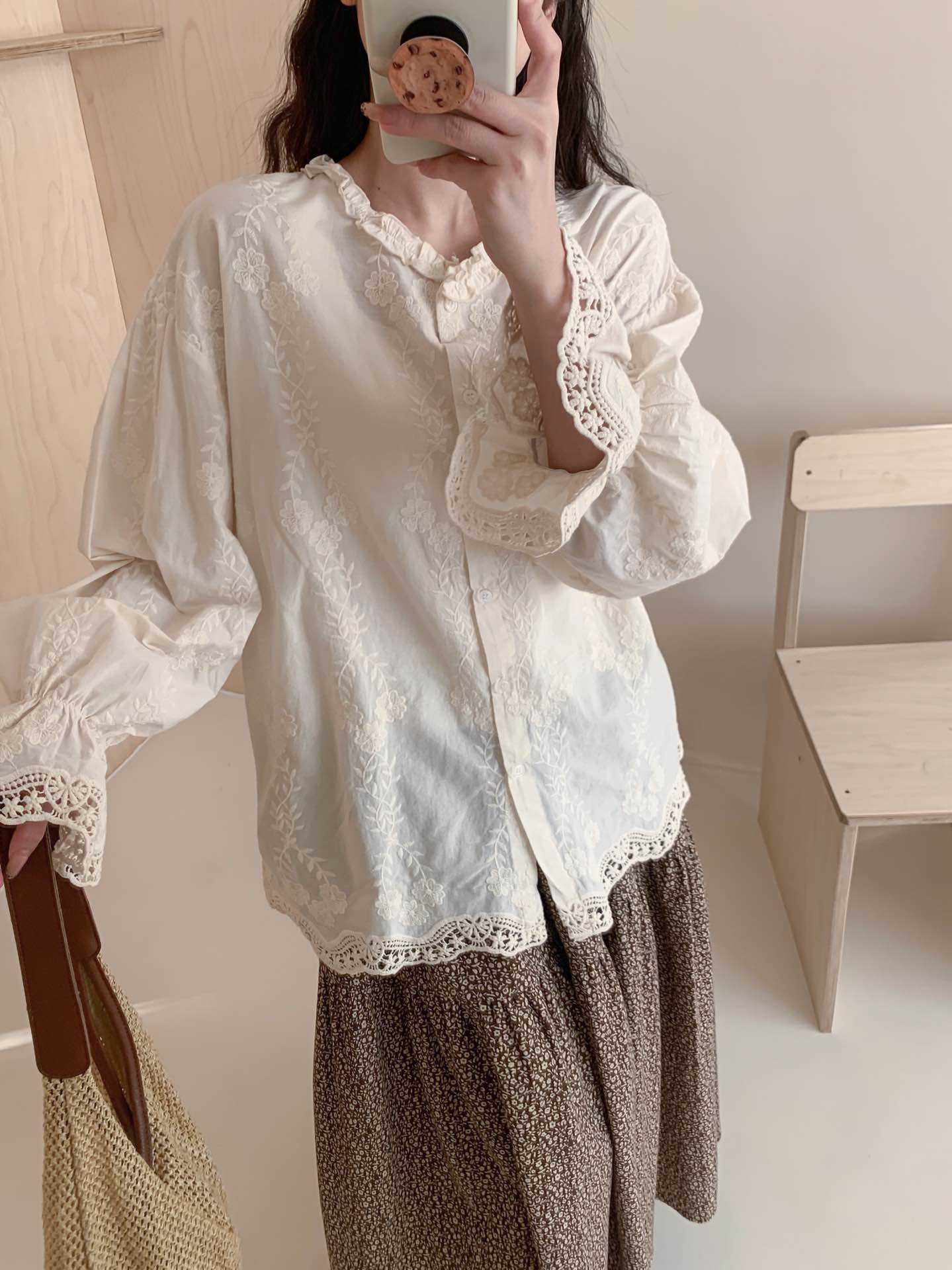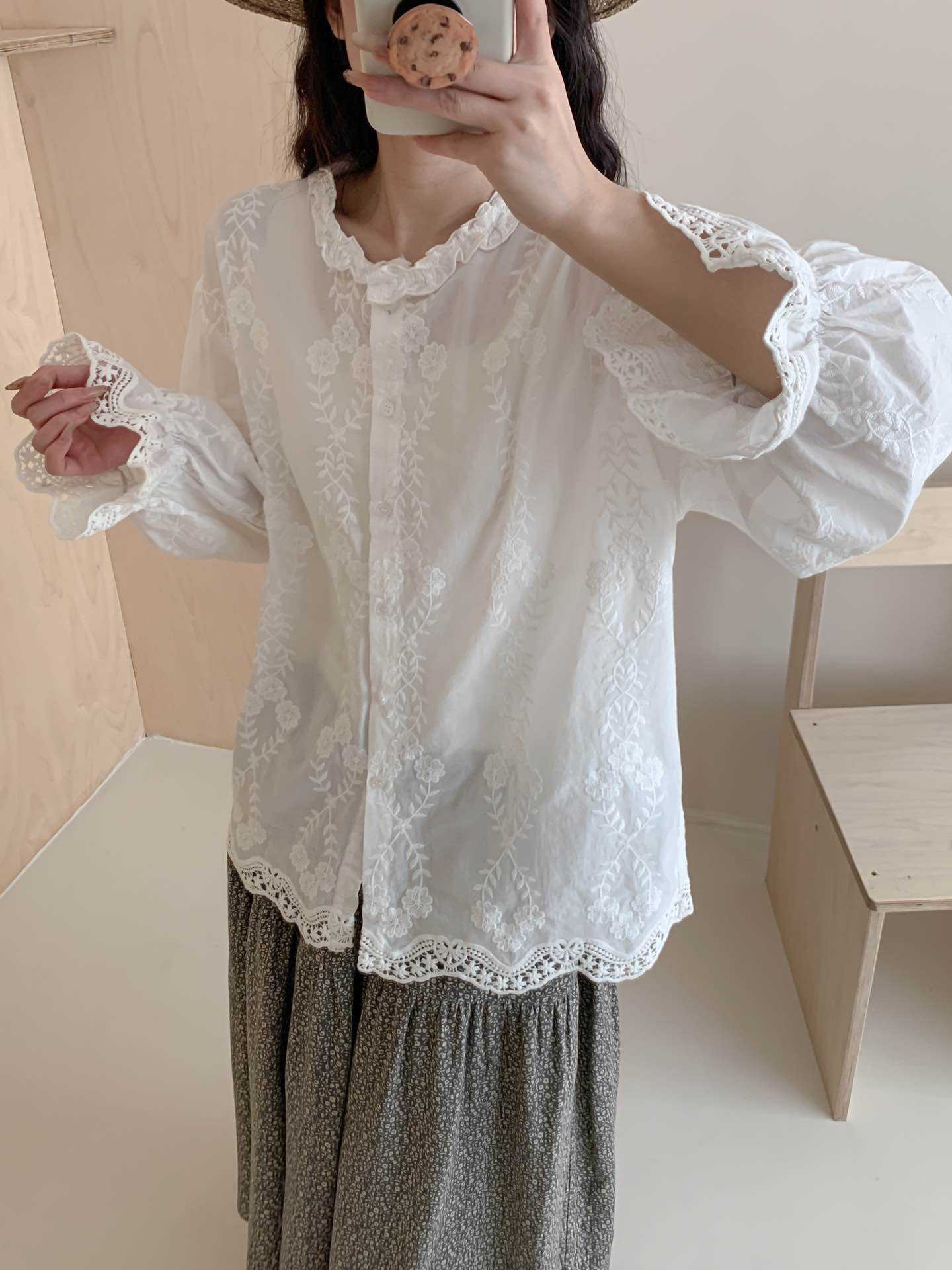 자수 셔츠 여성 2025 봄 새로운 레이스 레이스 우아한 얇은 달콤한 나이 감소 부드러운 스타일 탑스토어 가기