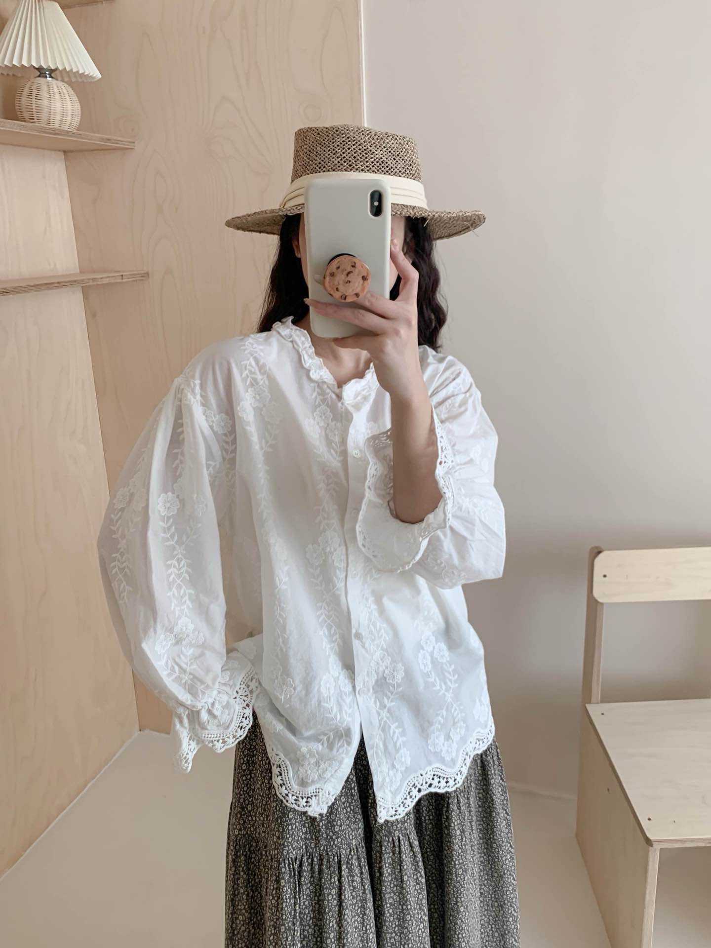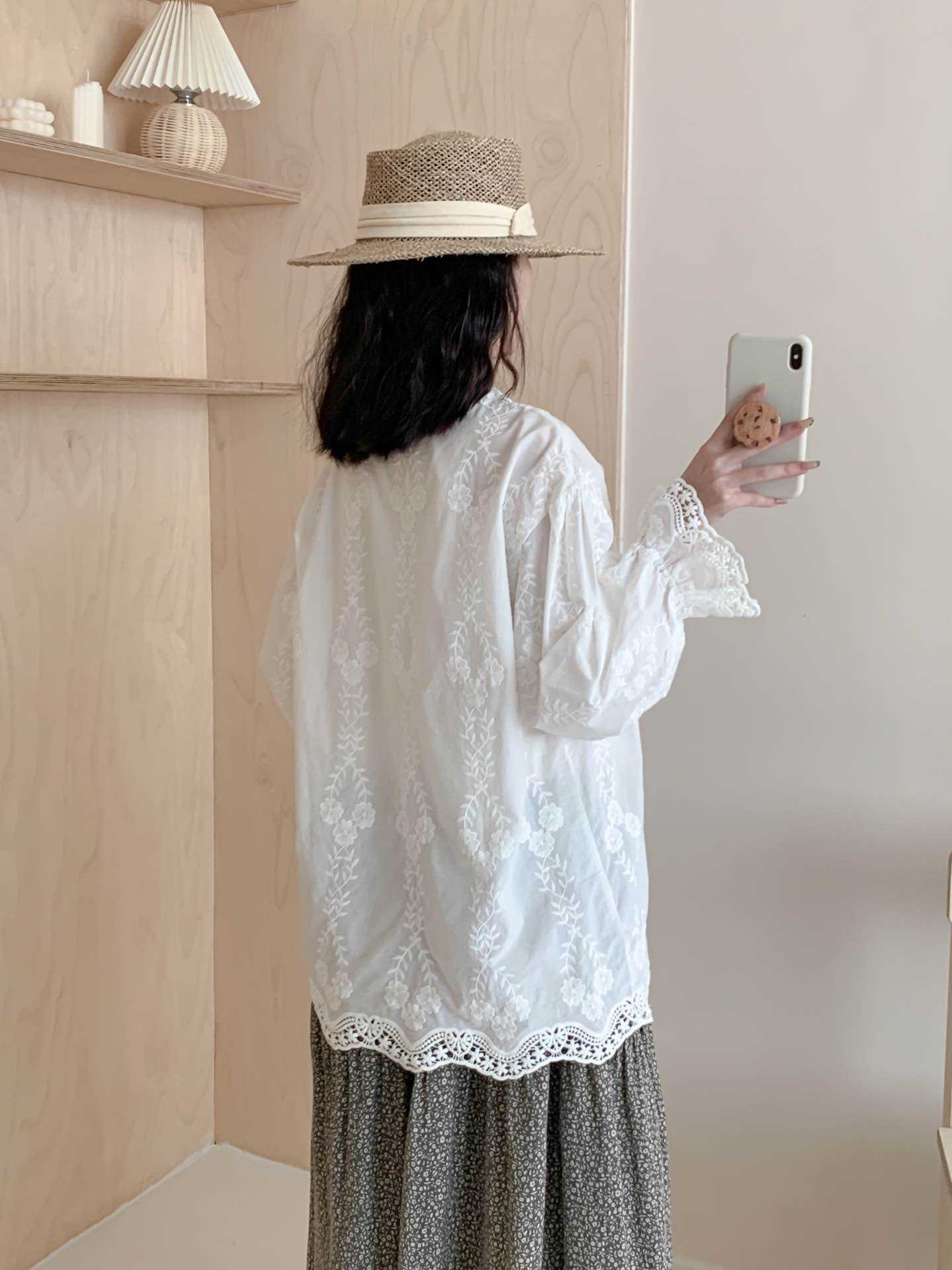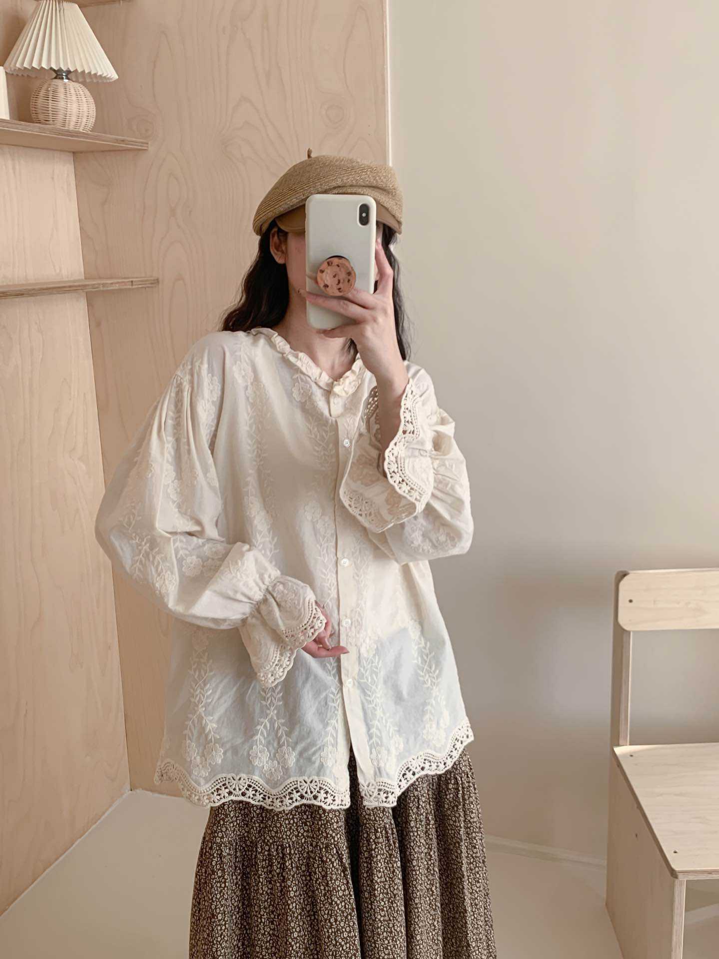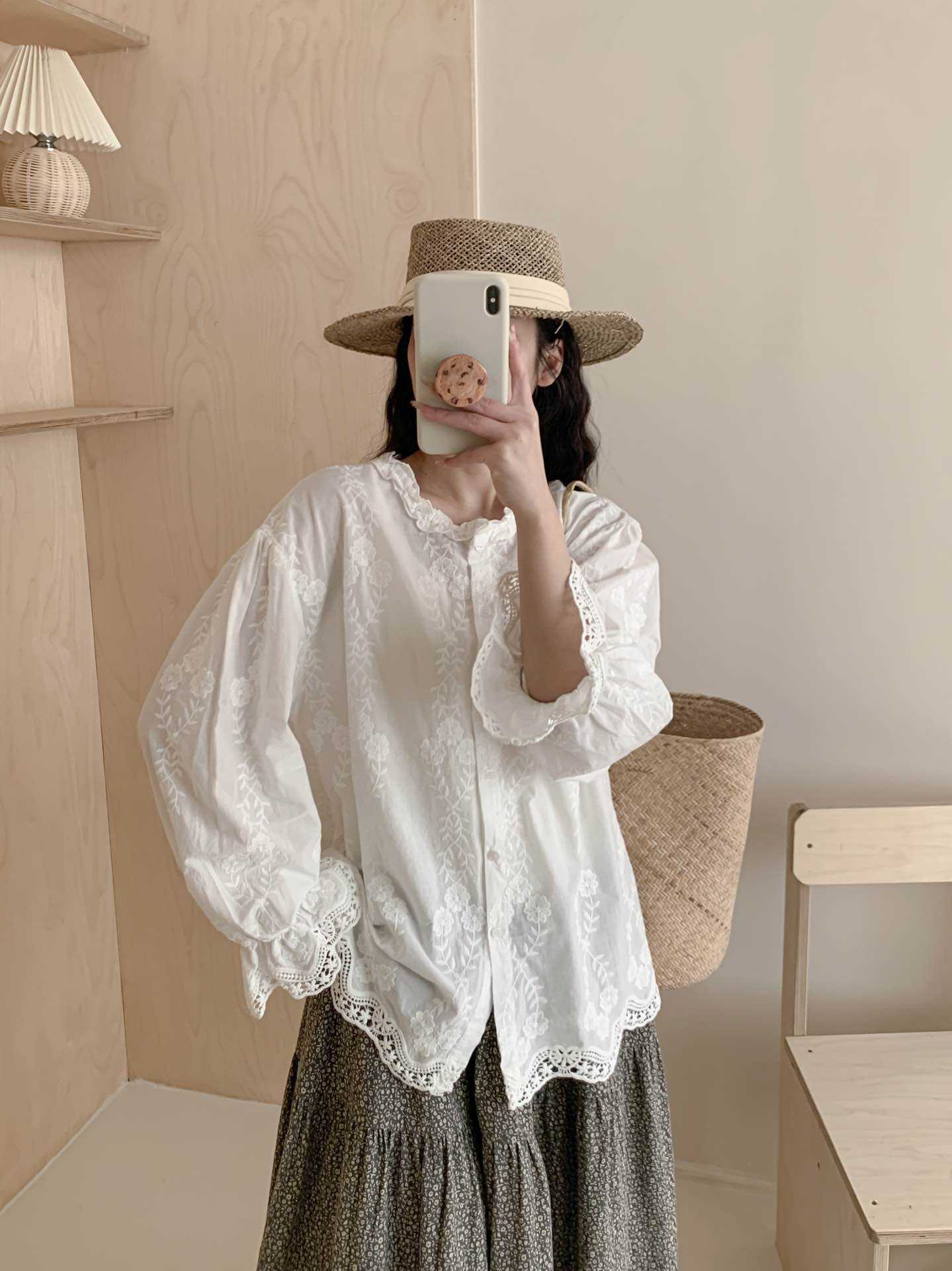 자수 셔츠 여성 2025 봄 새로운 레이스 레이스 우아한 얇은 달콤한 나이 감소 부드러운 스타일 탑스토어 가기