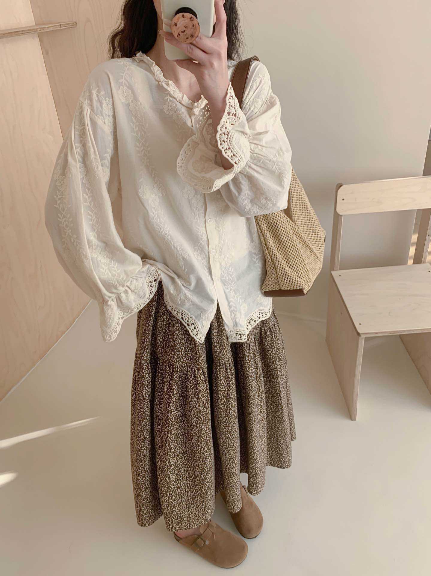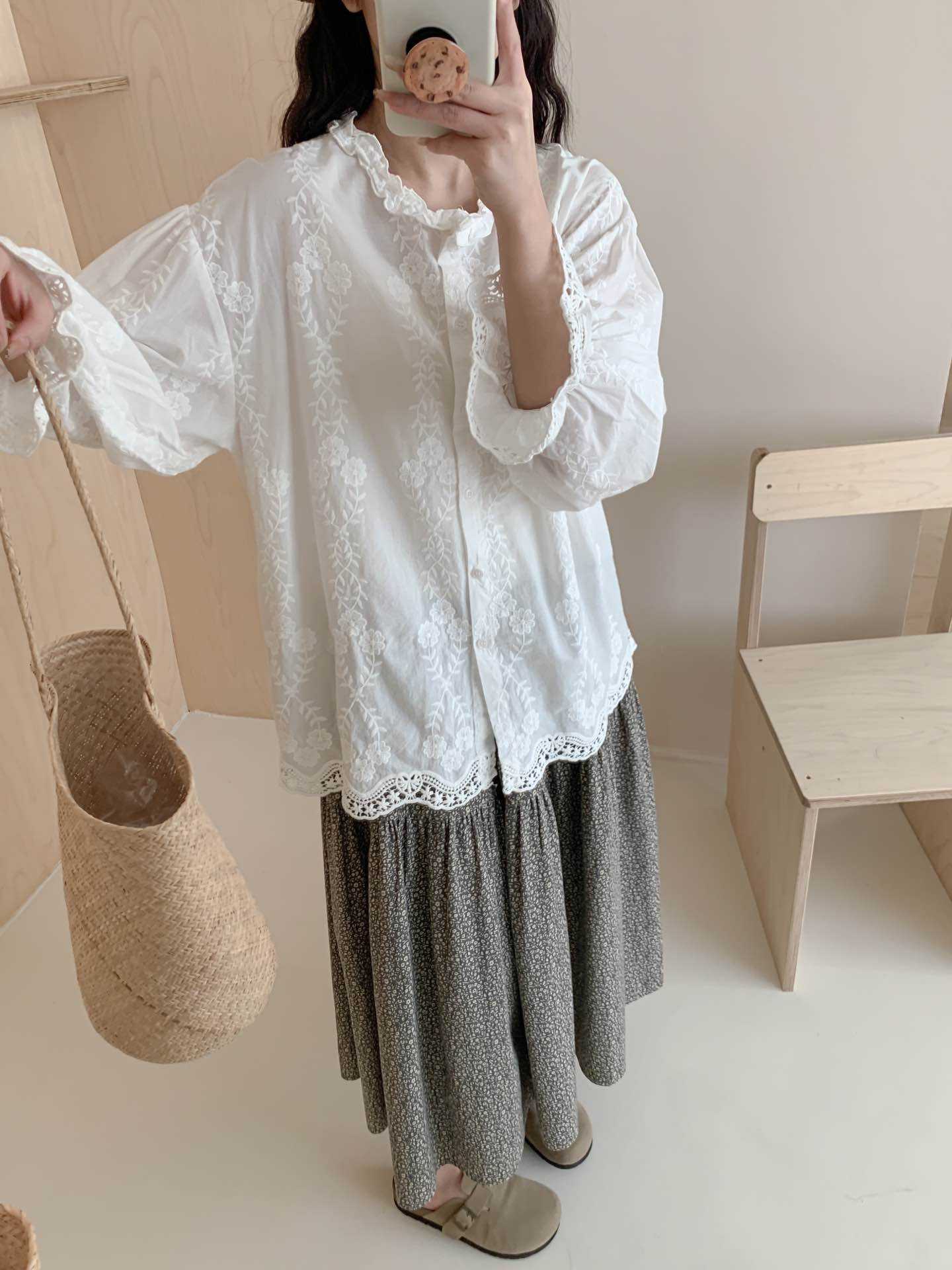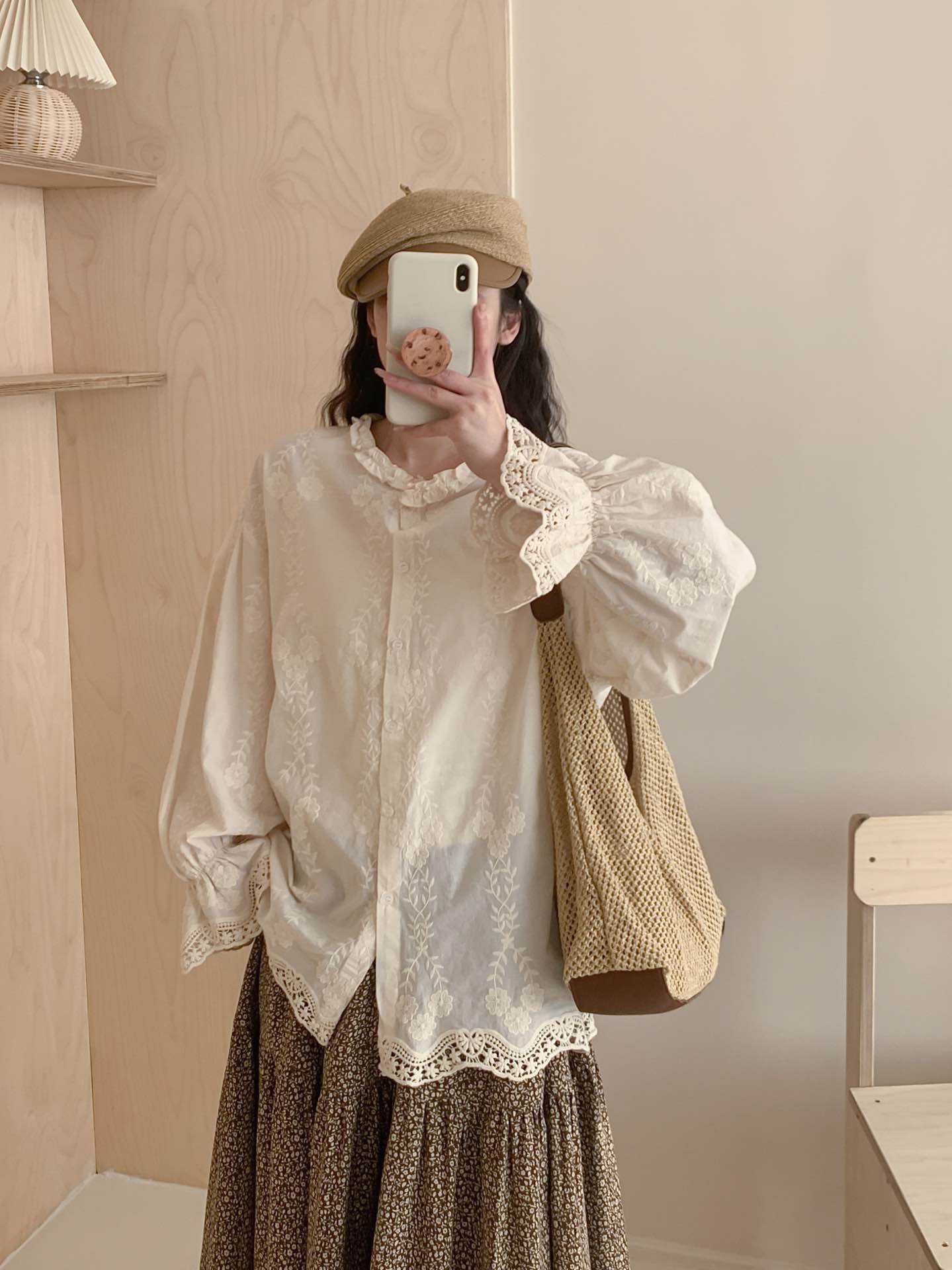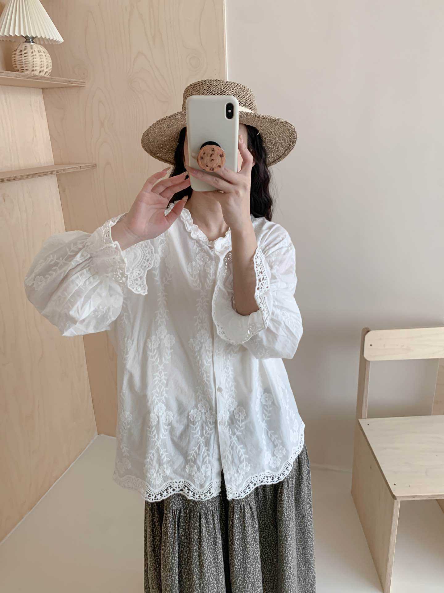자수 셔츠 여성 2025 봄 새로운 레이스 레이스 우아한 얇은 달콤한 나이 감소 부드러운 스타일 탑스토어 가기