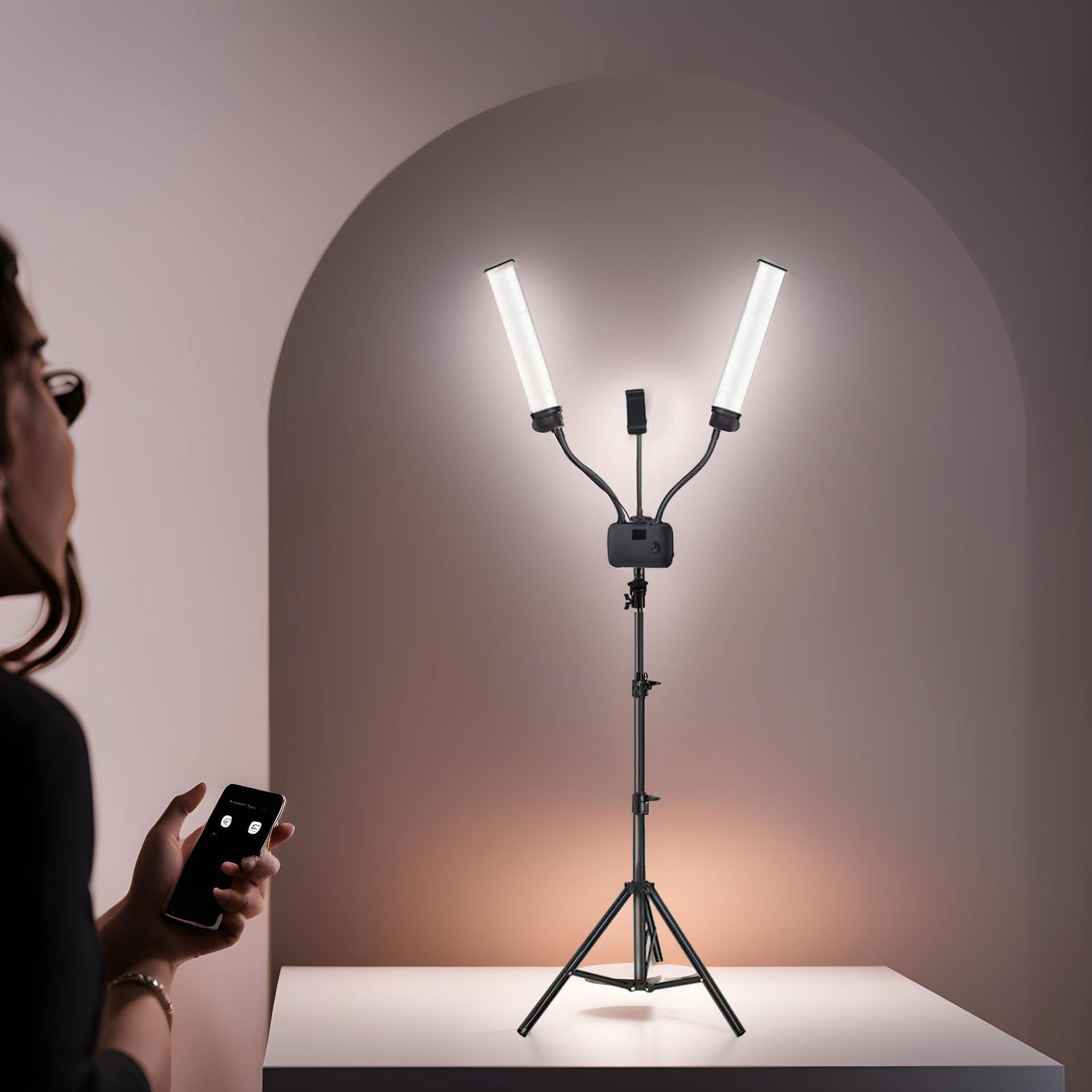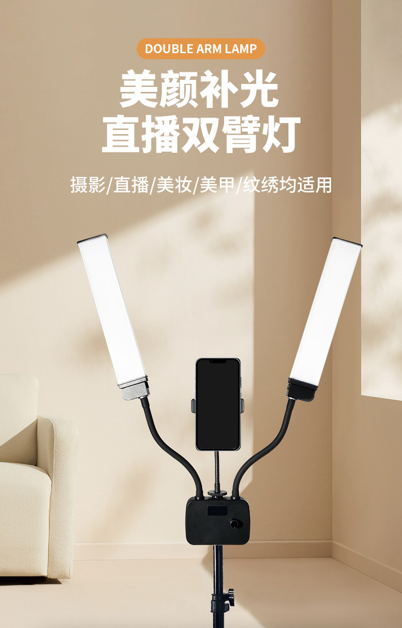 Led 더블 암 튜브 사진 램프 그물 빨간 라이브 휴대 전화 USB 아름다움 여전히 생활 촬영 일정한 빛 22 인치 채우기 빛스토어 가기