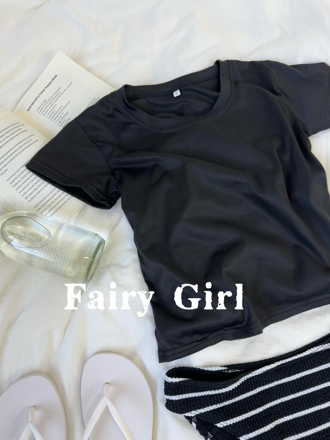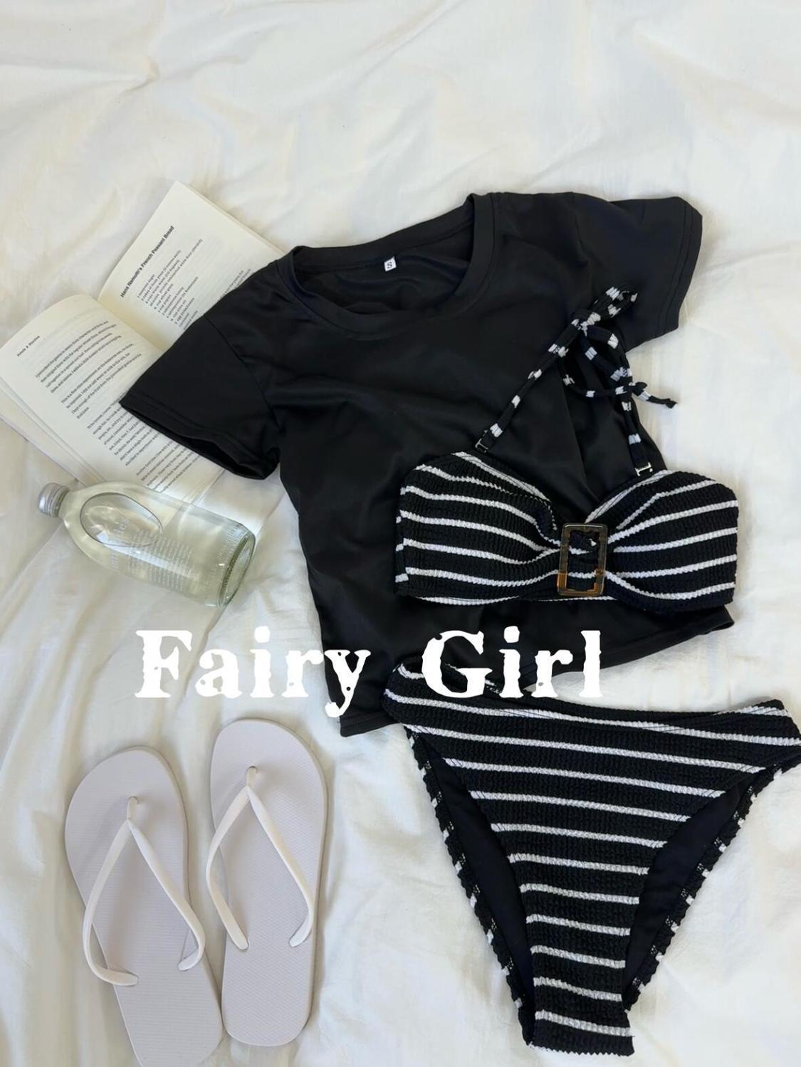 • 검은색 줄무늬 비키니 + 검은색 반소매