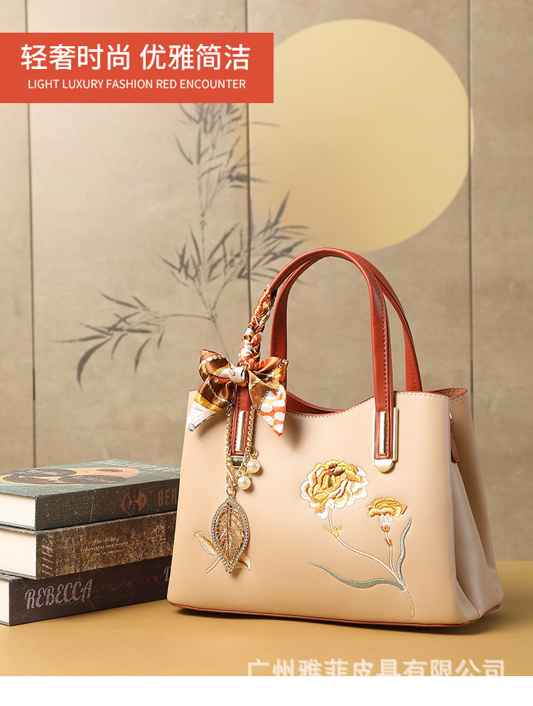 2025 연회 가방 휴대용 어깨 크로스 바디 백 새로운 중국 스타일 수 자수 카네이션 고급 살구색 다크 브라운 어머니 가방 시어머니