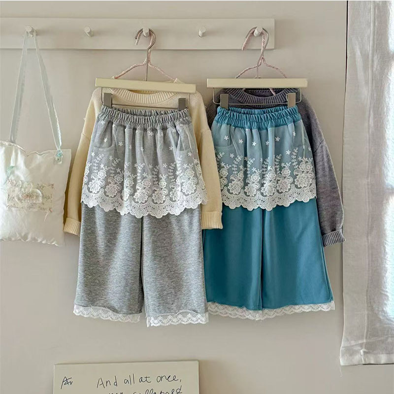 소녀 2025 봄 새로운 어린이 세련된 올 매치 레이스 바지 어린이 아기의 유행 레이스 바느질 캐주얼 바지스토어 가기
