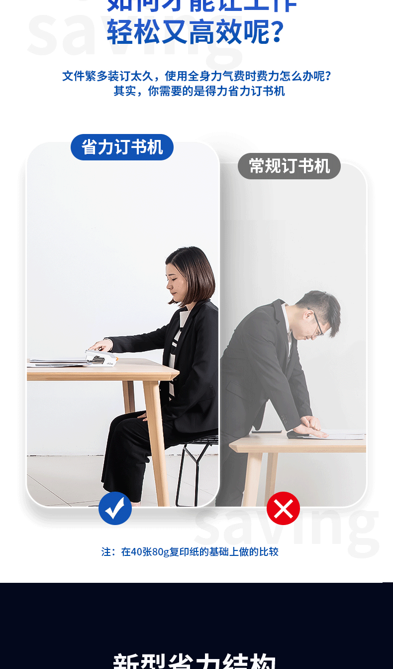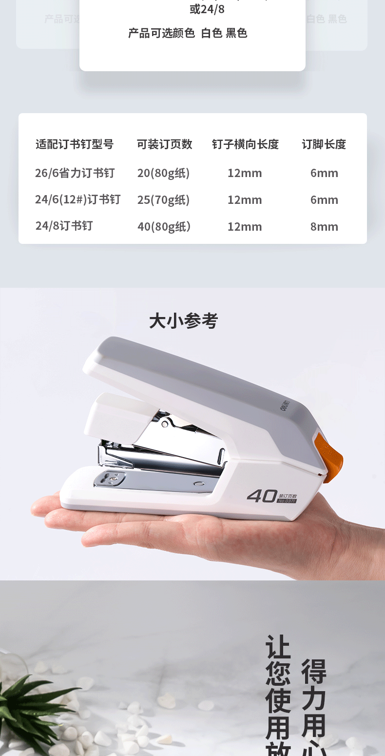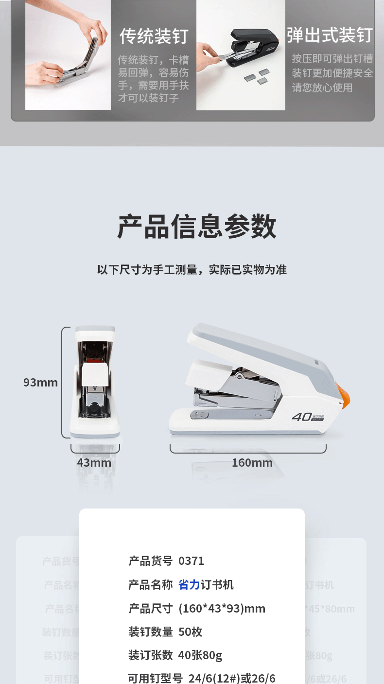 Deli 0371 노동 절약 스테이플러 중간 두꺼운 못 40 페이지 스테이플러 사무실 학생 노동 절약 스테이플러