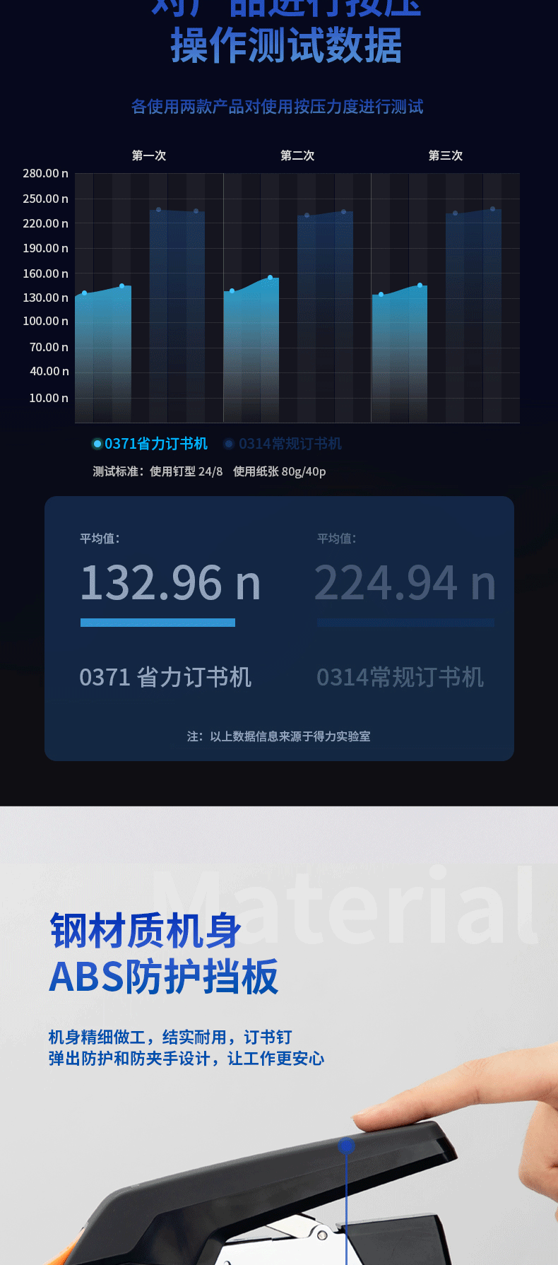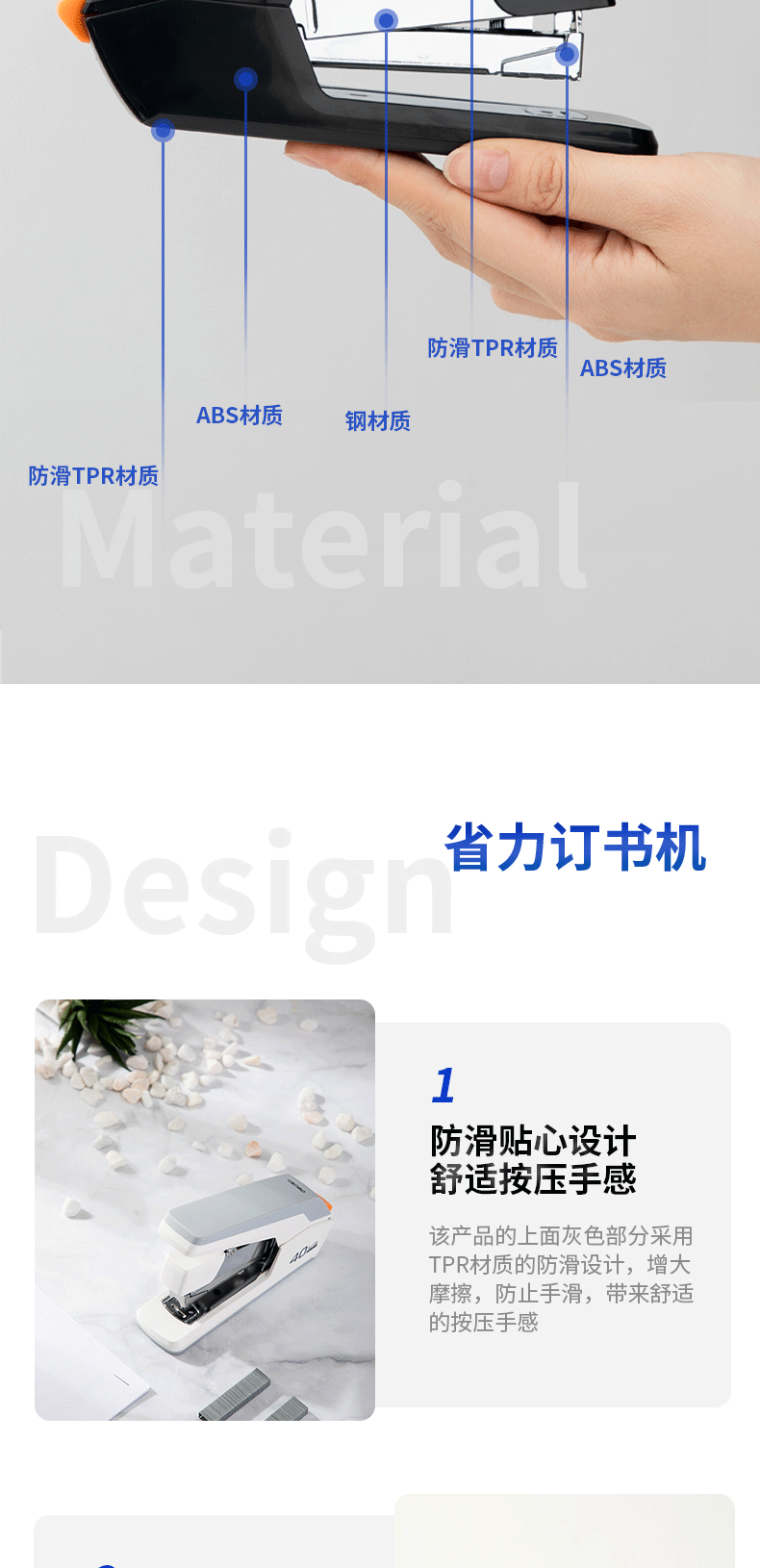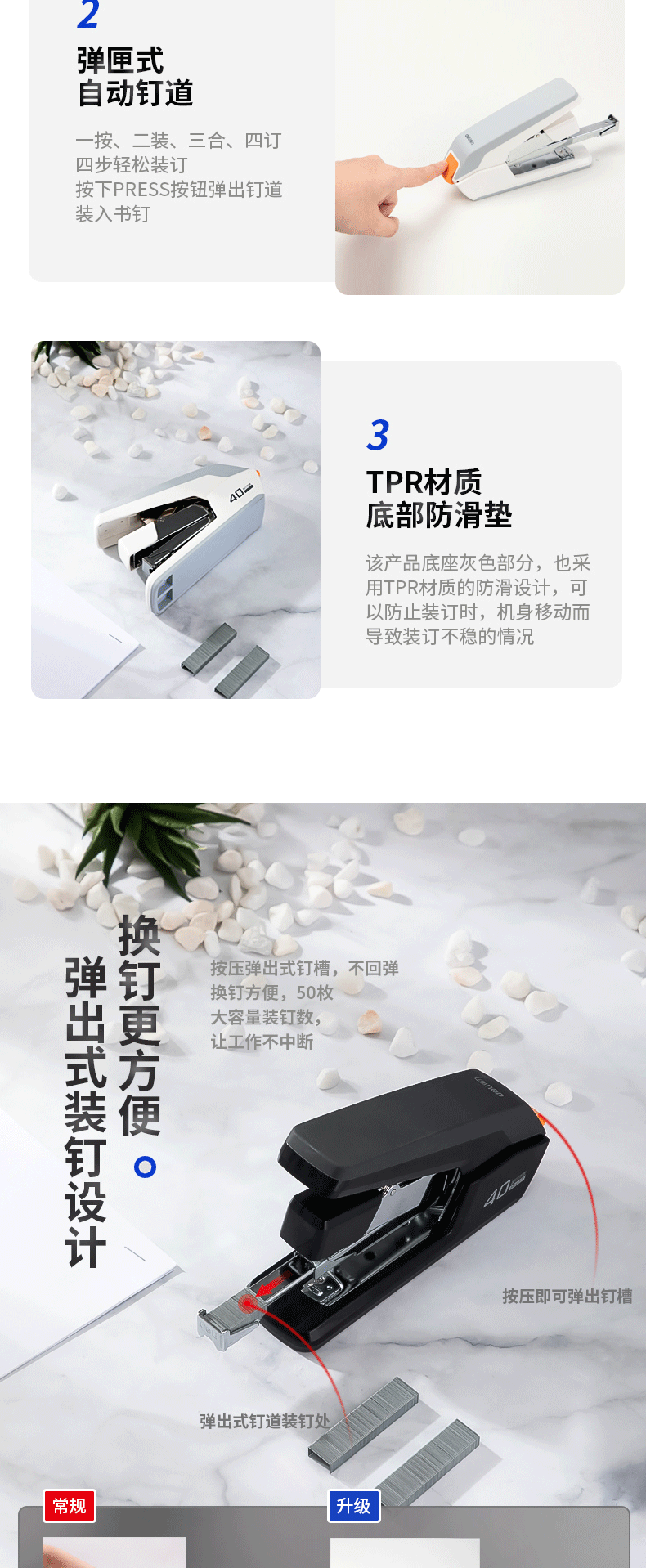 Deli 0371 노동 절약 스테이플러 중간 두꺼운 못 40 페이지 스테이플러 사무실 학생 노동 절약 스테이플러