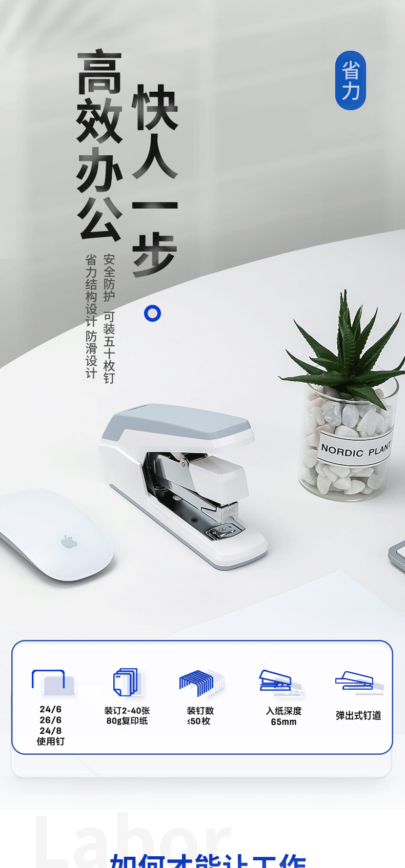 Deli 0371 노동 절약 스테이플러 중간 두꺼운 못 40 페이지 스테이플러 사무실 학생 노동 절약 스테이플러스토어 가기