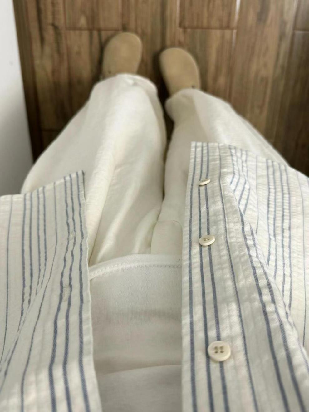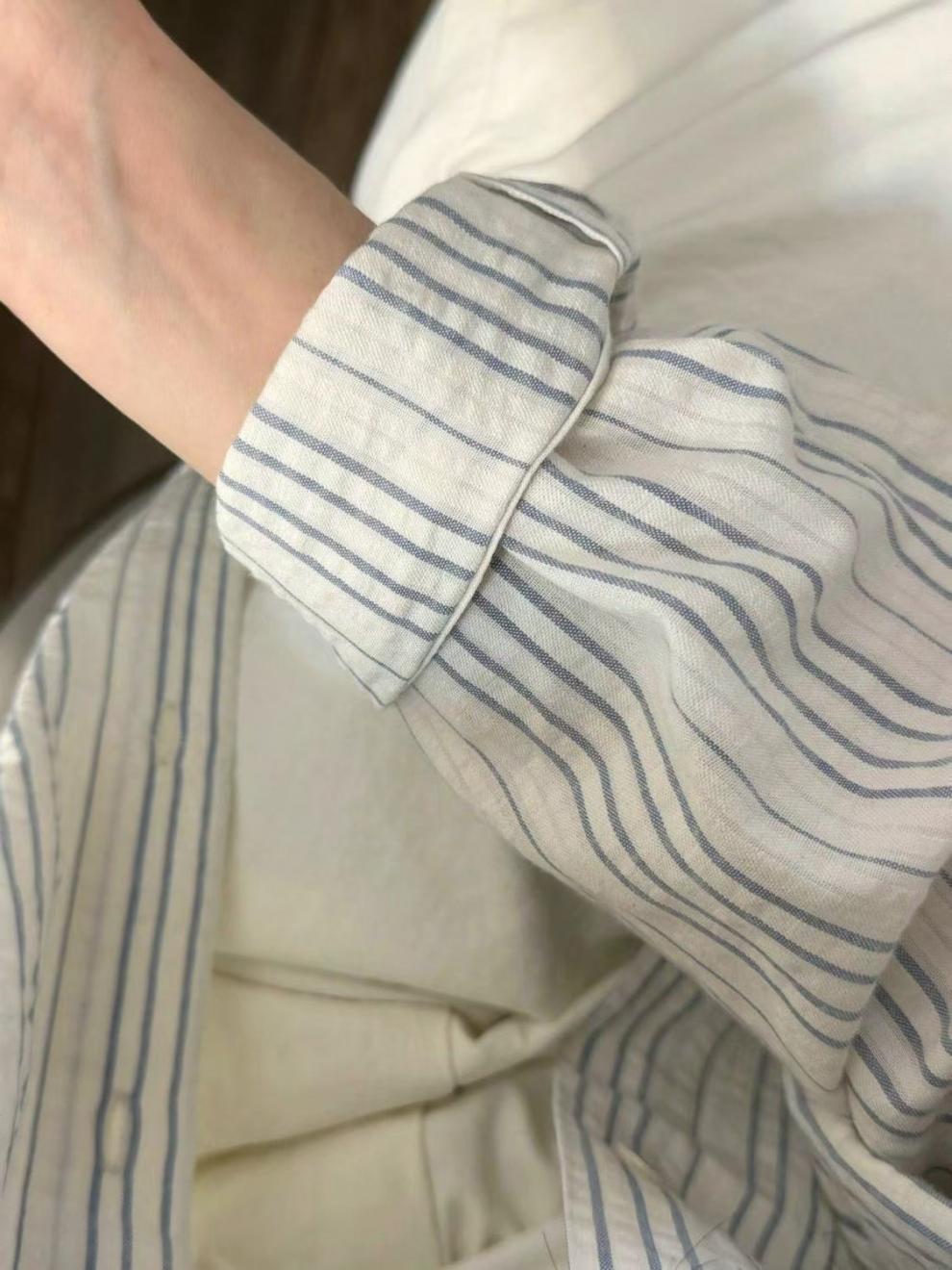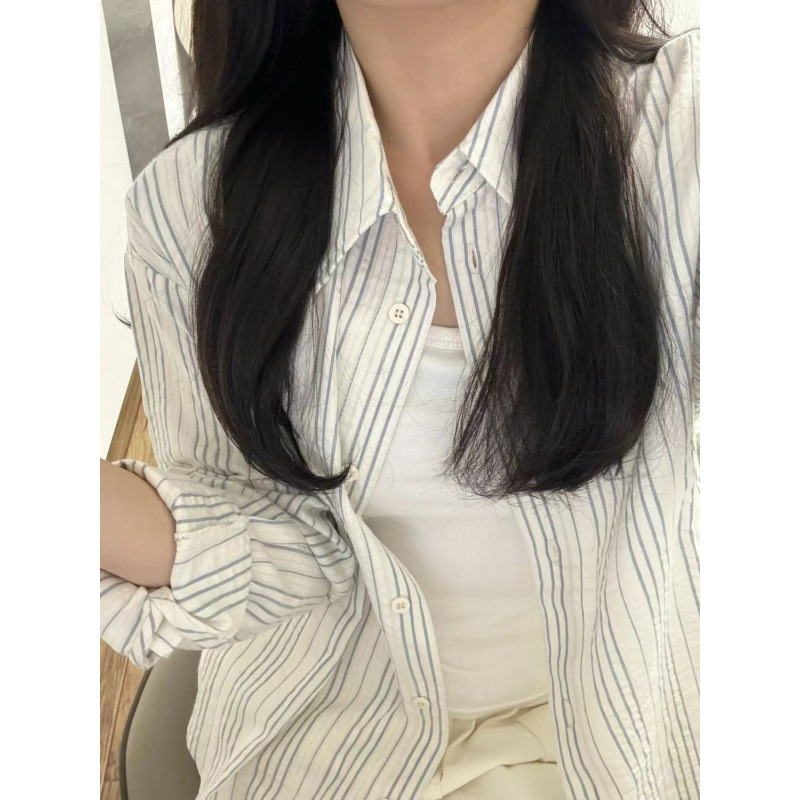 봄 얇은 선스크린 셔츠 여성 줄무늬 디자인 센스 신선하고 느슨한 이른 봄 캐주얼 셔츠 작고 작은스토어 가기