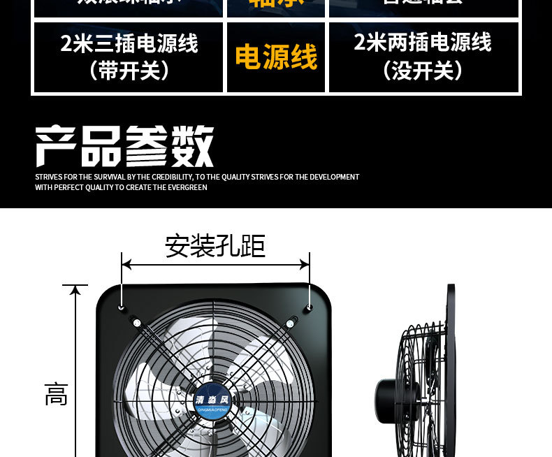 • 10inch 강화 이중 그릴 2m 스위치 와이어 볼 베어링 순수 구리 모터 알루미늄