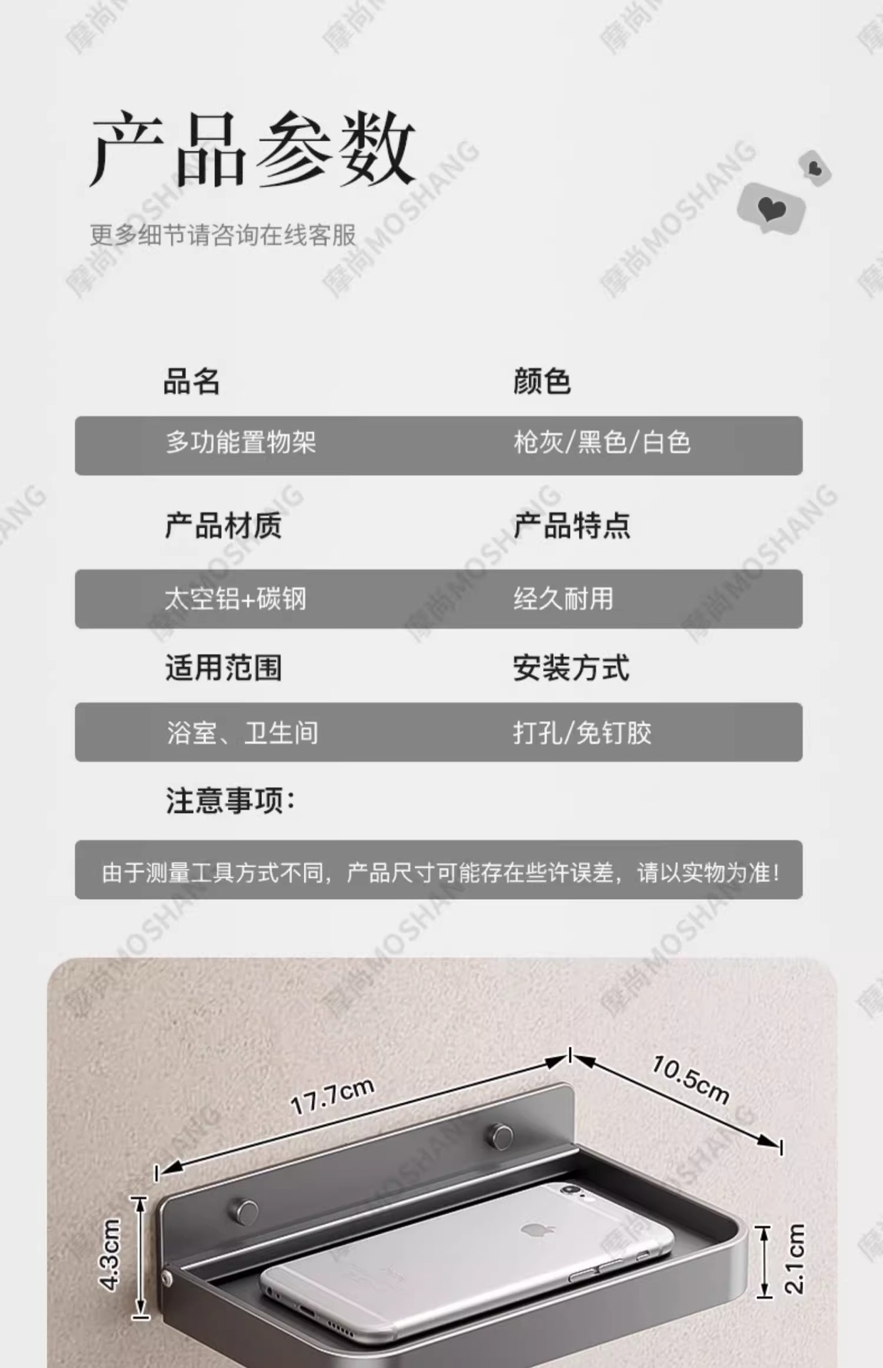 • 스페이스 알루미늄 모델] 건그레이 휴대폰 거치대 [펀칭/못 없음]