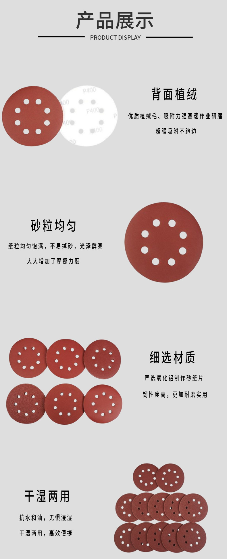 125MM 5인치 8홀 레드 샌드페이퍼 특수 연마 샌드페이퍼 시트 크로스보더 고품질 자가 접착식 플로킹 샌드페이퍼스토어 가기