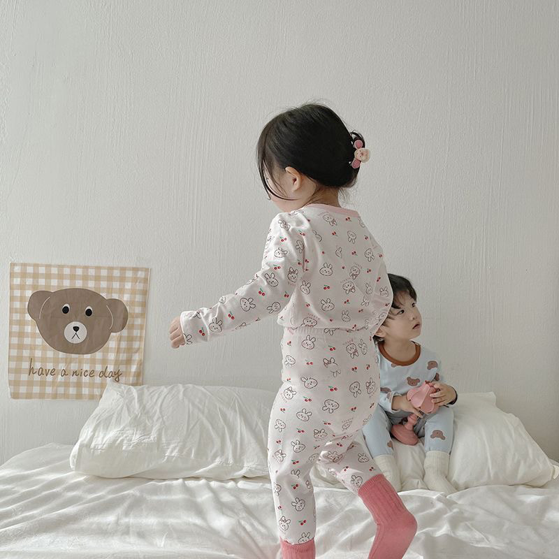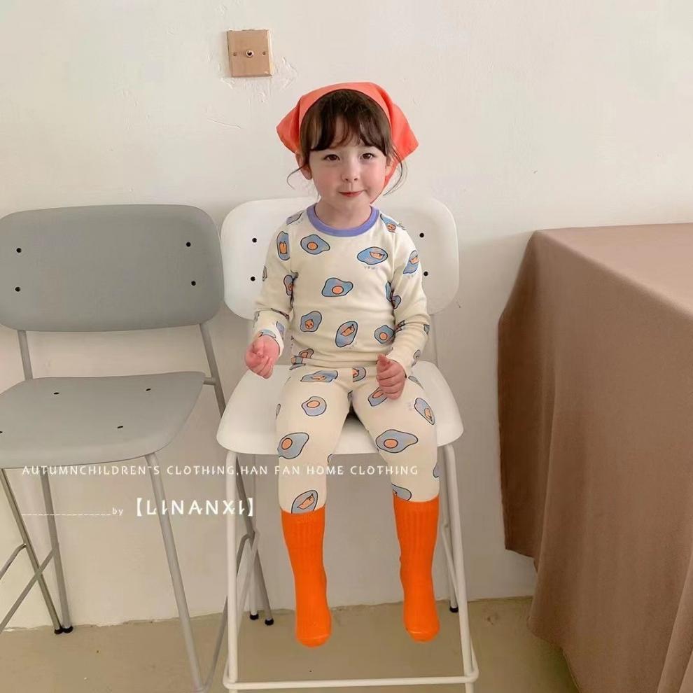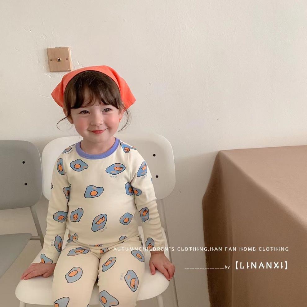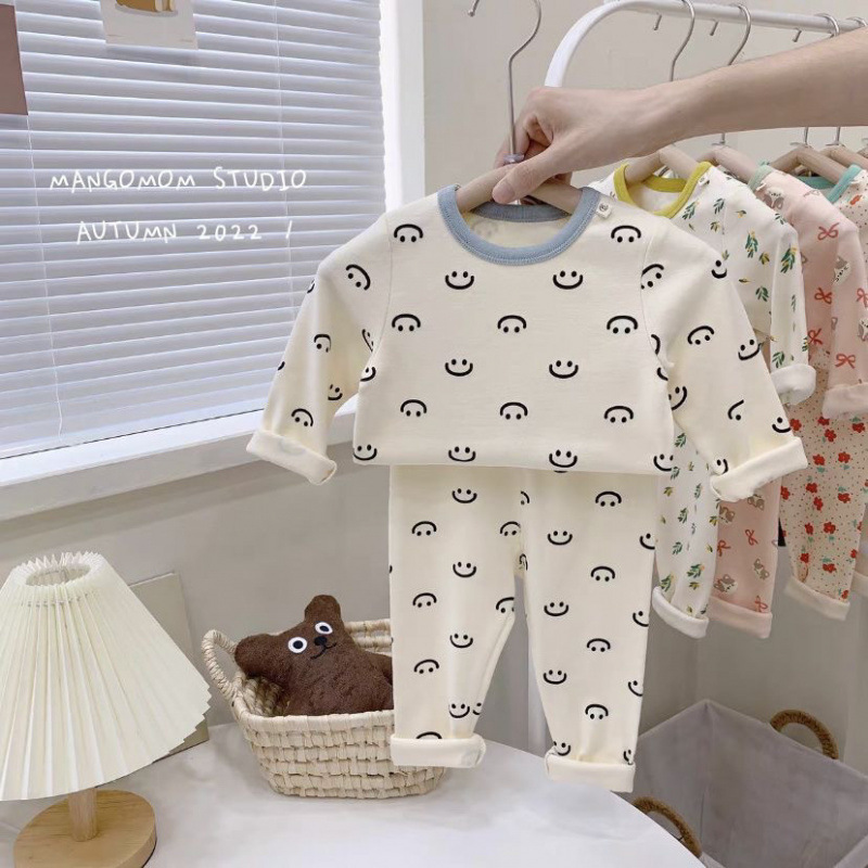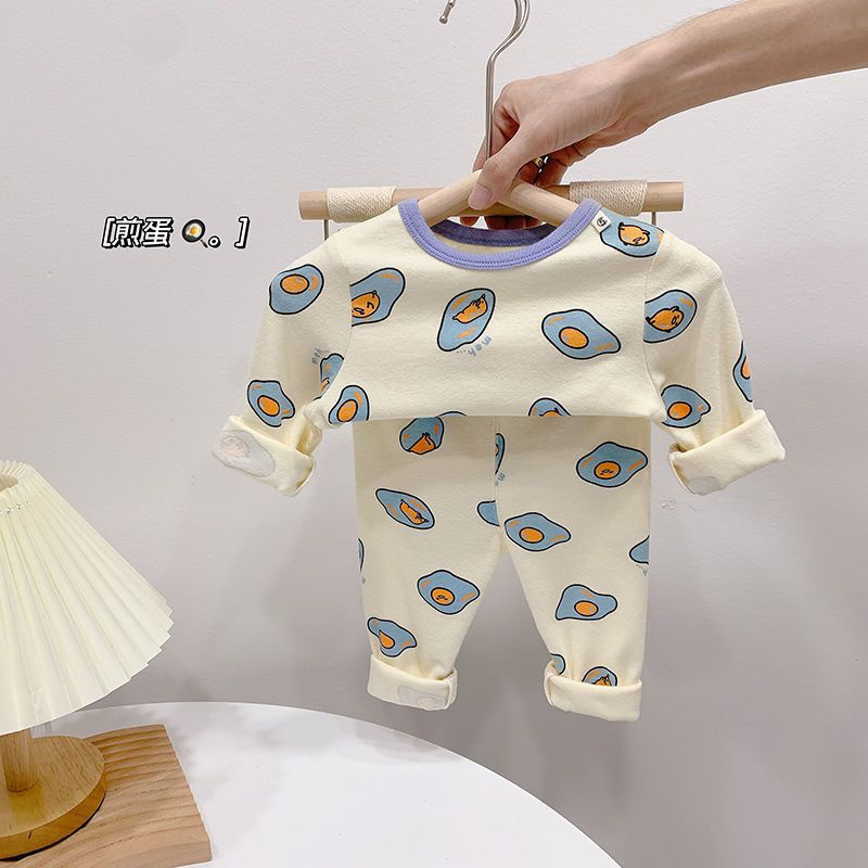 아기의 봄과 가을 가정 옷 세트 가을 옷과 바지 투피스 아기의 뼈없는 봉제 파자마베이스 셔츠스토어 가기