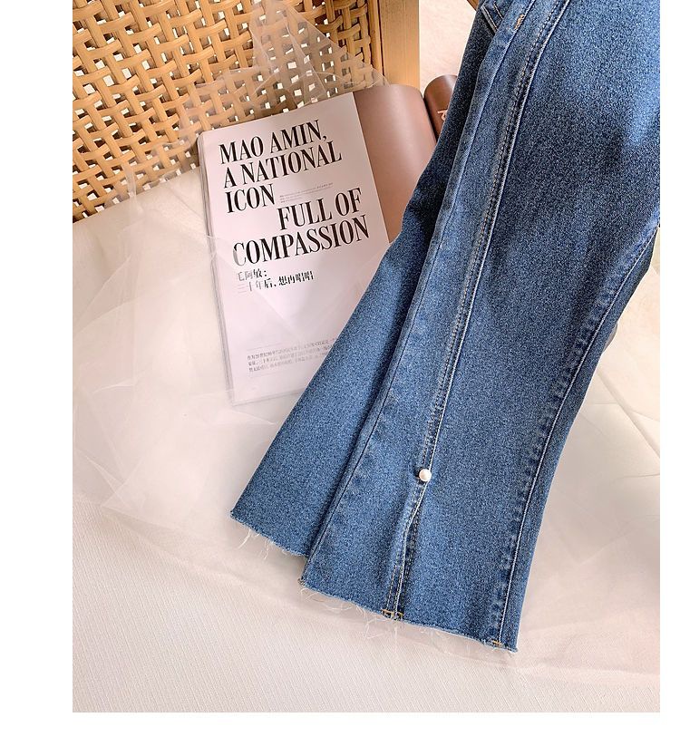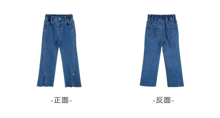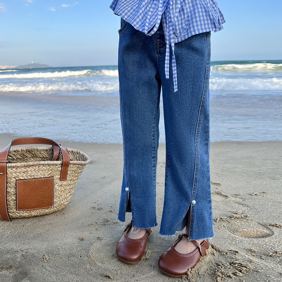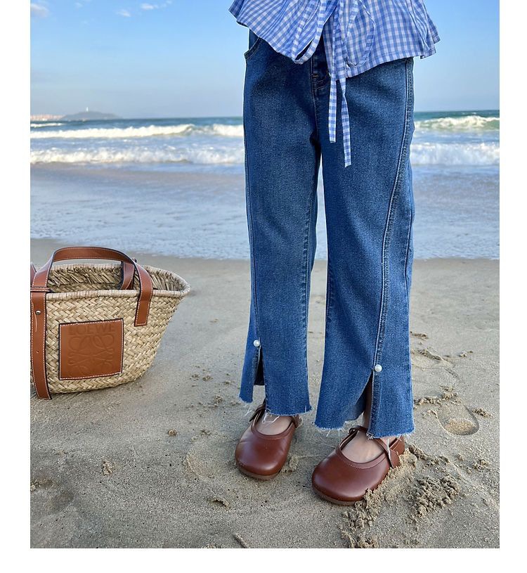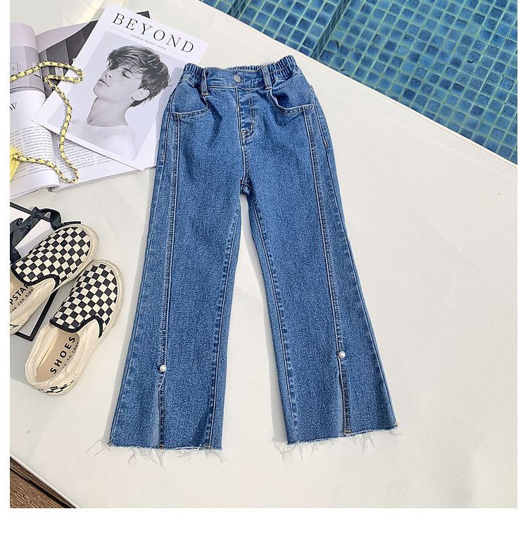 봄과 가을 여성 아동복 청바지 아기의 서양식 어린이 독특한 유행 한국 스타일 플레어 바지 진주 분할스토어 가기
