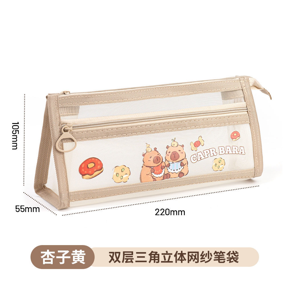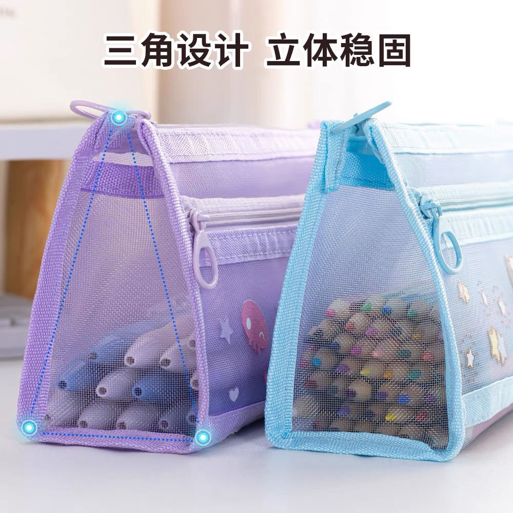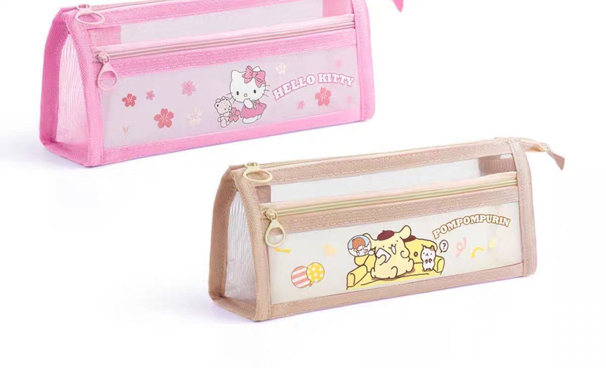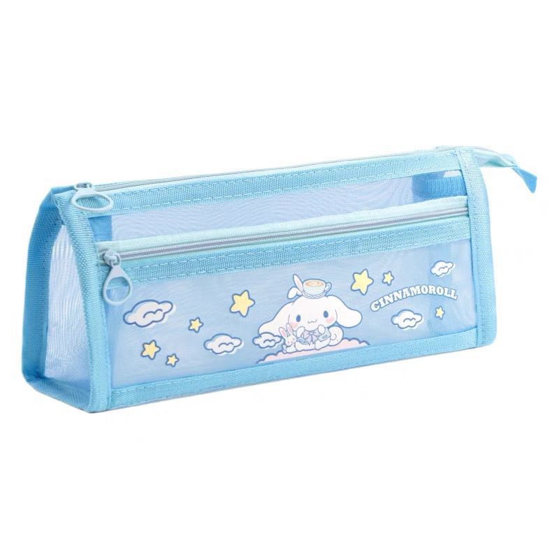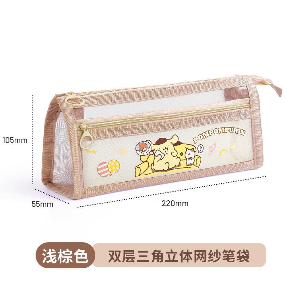 초등학생을위한 새로운 Sanrio Kulomi 메쉬 연필 가방 더블 레이어 연필 가방 문구 가방 대용량 저장 가방