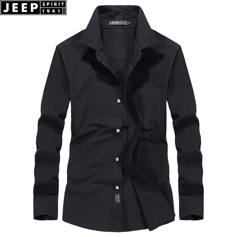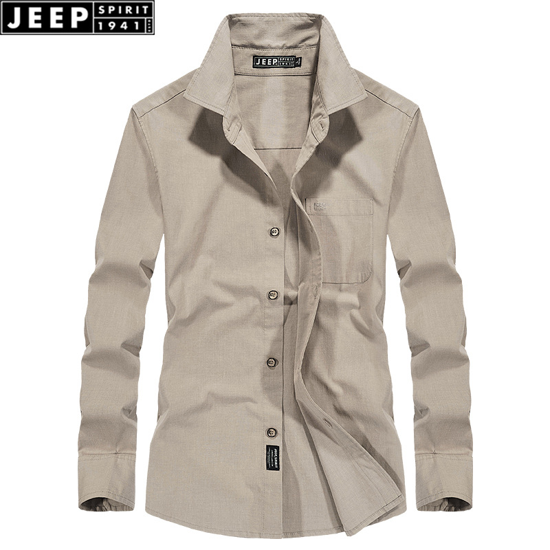 JEEP SPIRIT 새 남자 긴 소매 셔츠 옷깃 통기성 올 매치 영 및 중년 비즈니스 캐주얼 롱 셔츠스토어 가기