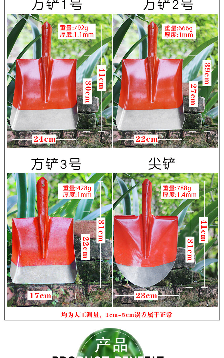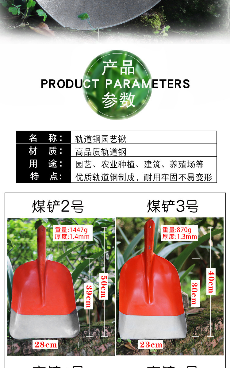 • 28cm [대형] 도장된 석탄 삽 + 1.2m 단단한 나무 손잡이