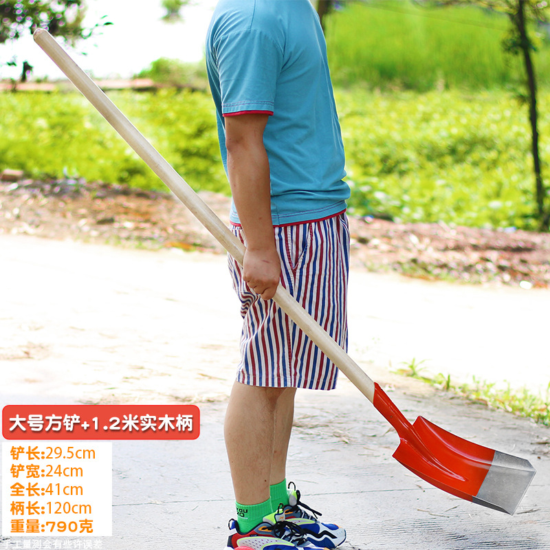 • 24cm [대형] 도색된 사각형 삽 + 1.2m 단단한 나무 손잡이