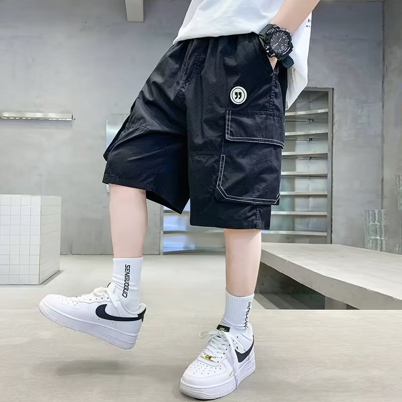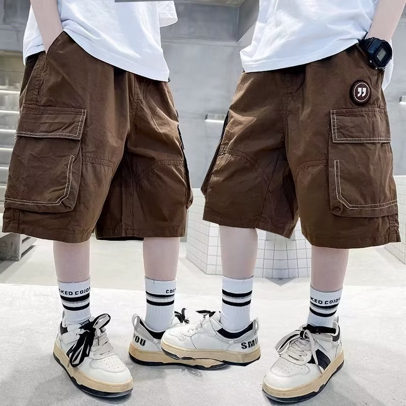 새로운 아동복 소년 여름 작업복 반바지 소년 2025 새로운 여름 중형 및 대형 어린이 얇은 빠른 건조 반바지