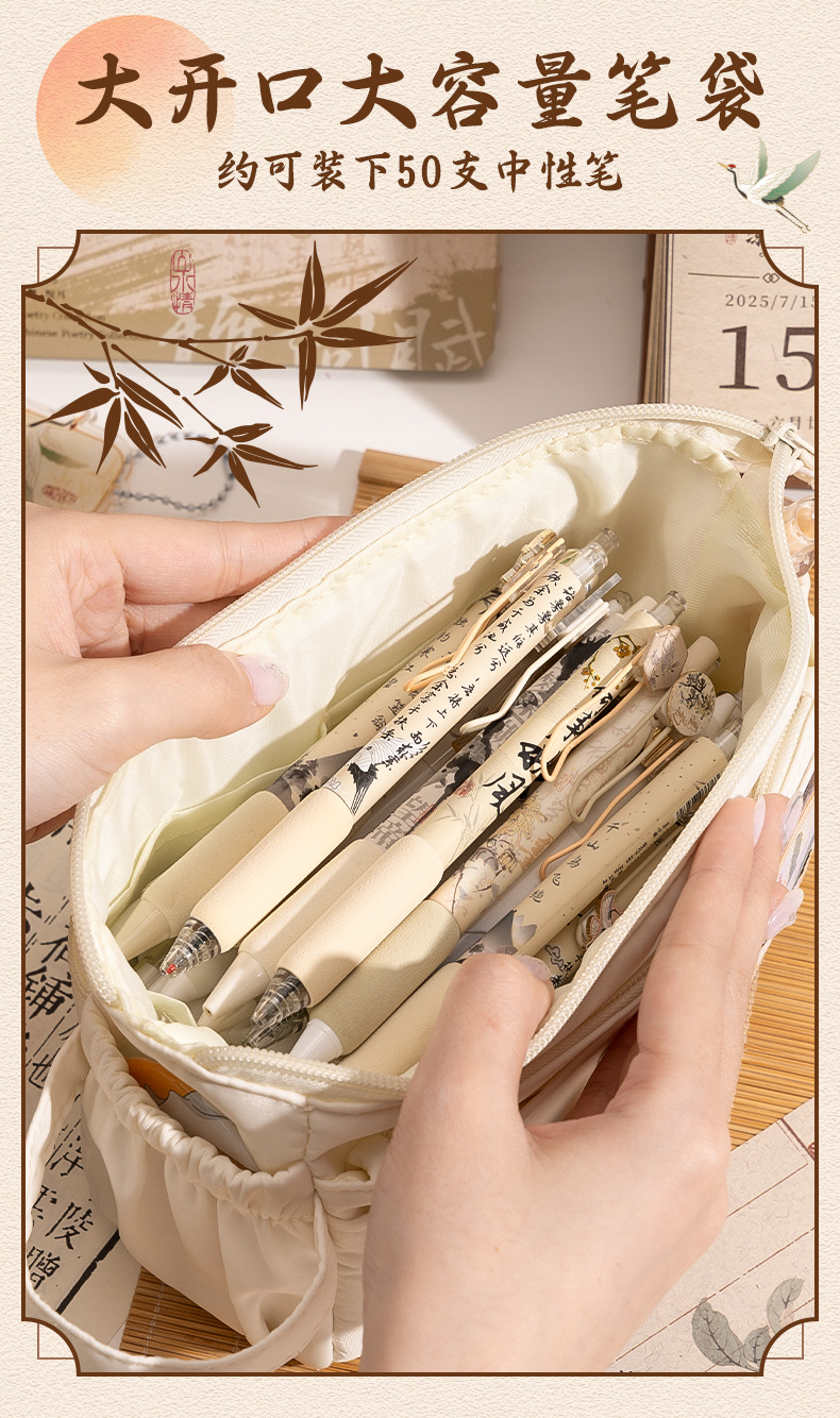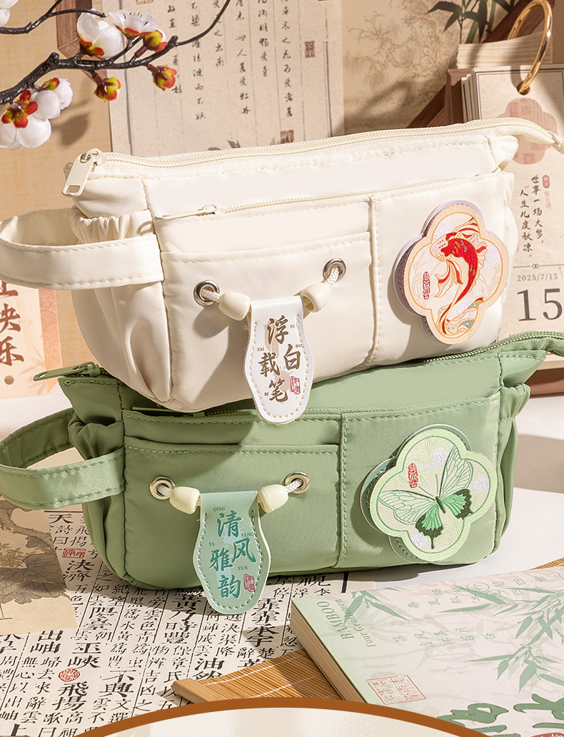 새로운 중국 스타일 연필 케이스 대용량 레트로 중국 스타일 초등학교 학생 문구 상자 높은 가치의 문구 가방 다층 보관 가방