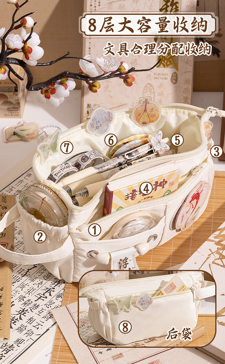 새로운 중국 스타일 연필 케이스 대용량 레트로 중국 스타일 초등학교 학생 문구 상자 높은 가치의 문구 가방 다층 보관 가방스토어 가기