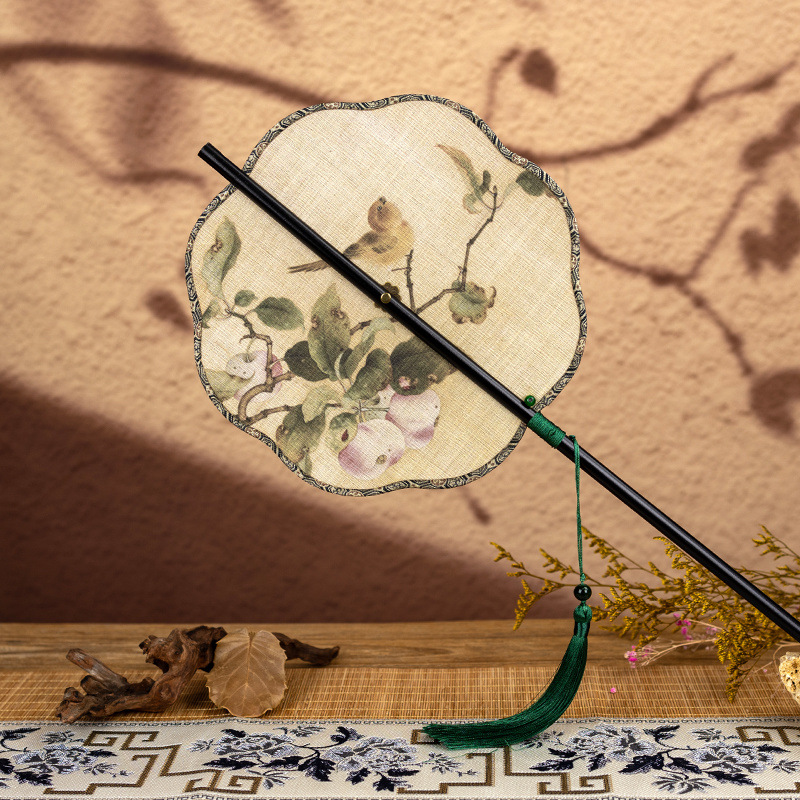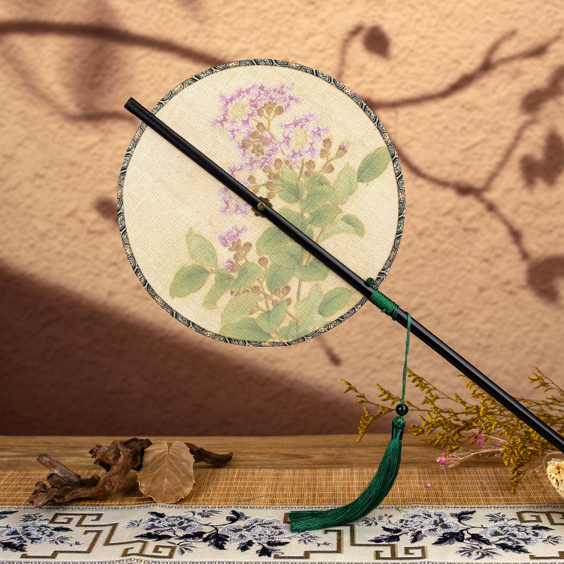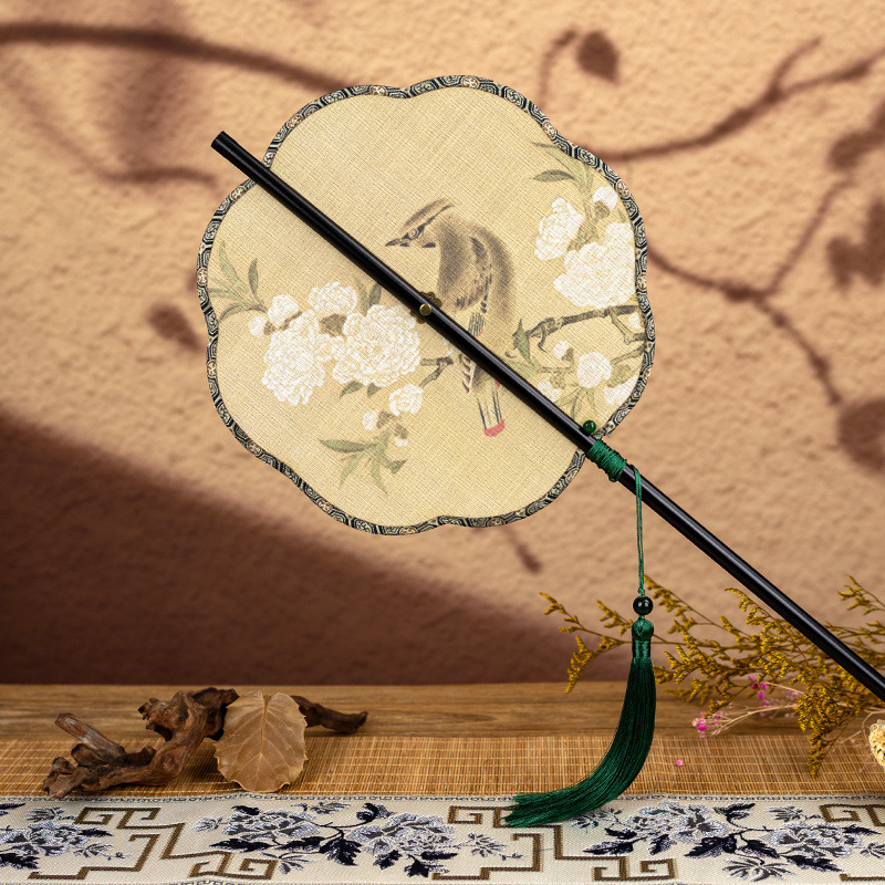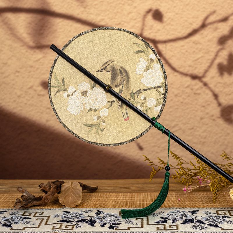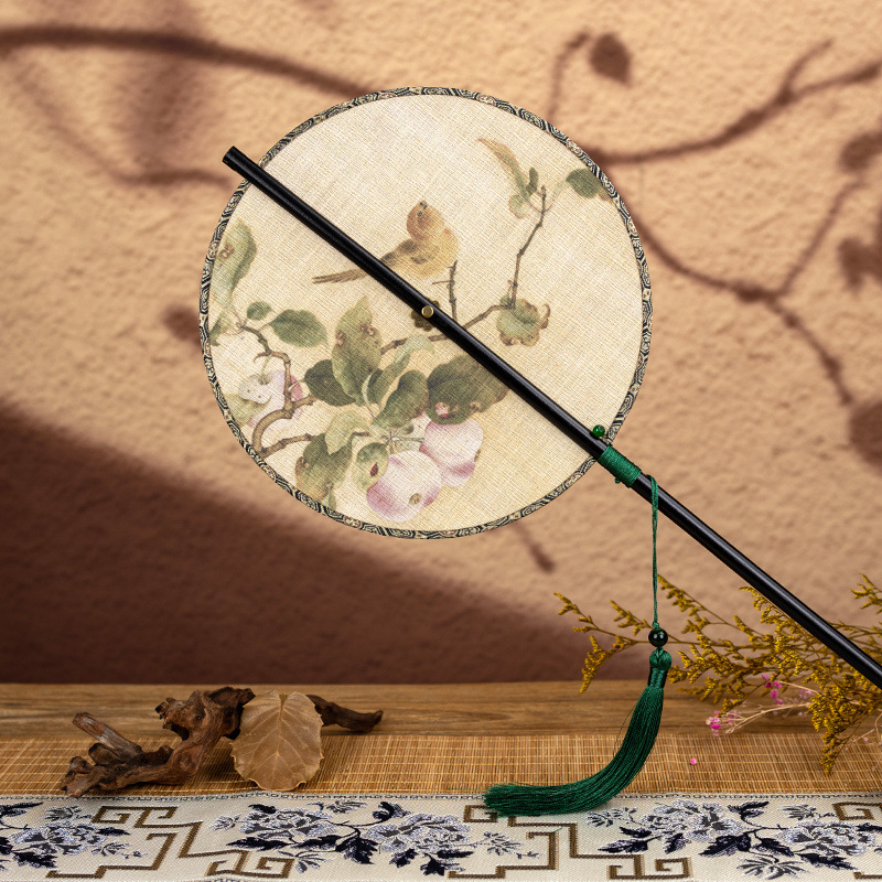 • 화살대나무 허리부채 - 여잎 복숭아가지 서작 [송진단단단] - 인쇄면 [말아서 보관할 수 있음] - 00