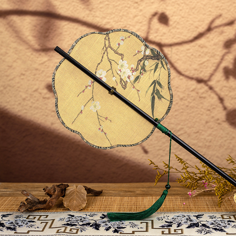 • 화살대 허리부채 - 여꽃잎 매화와 대나무 그림 [송진 테두리] - 인쇄면 [말아서 보관할 수 있음] - 00