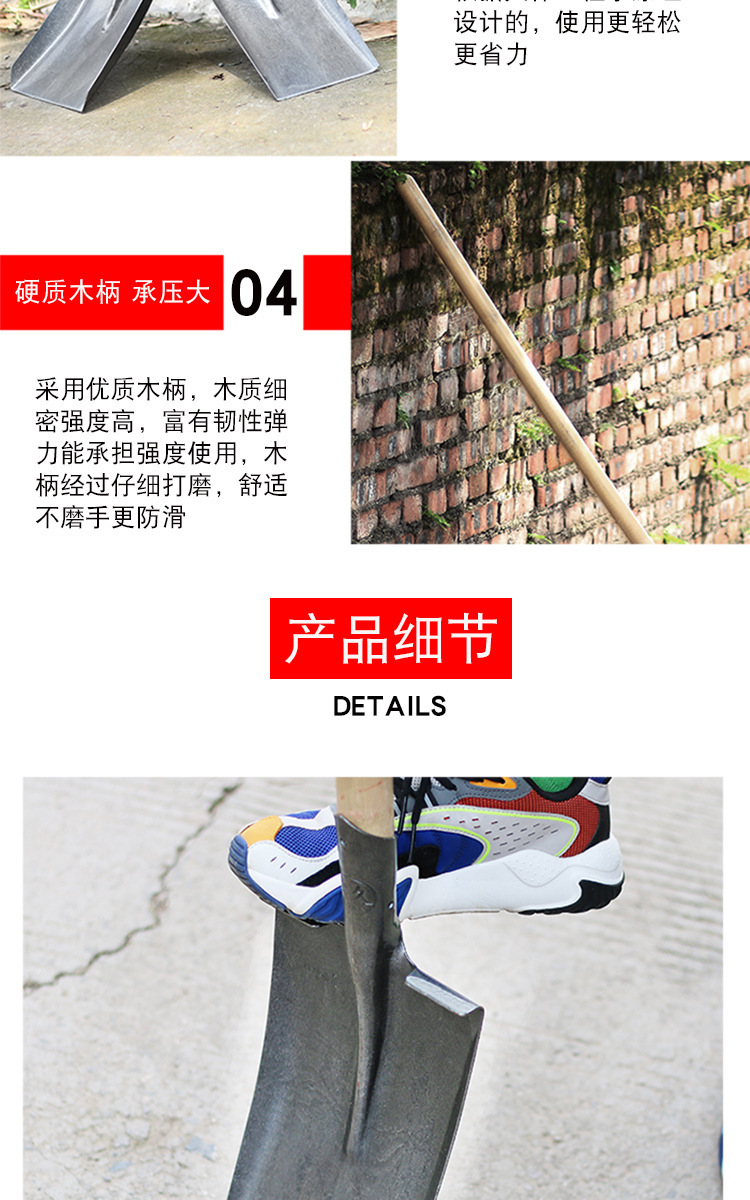 • 18cm 시멘트 강철 삽 + 1.2m 단단한 나무 손잡이