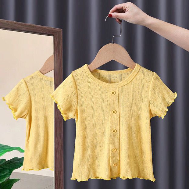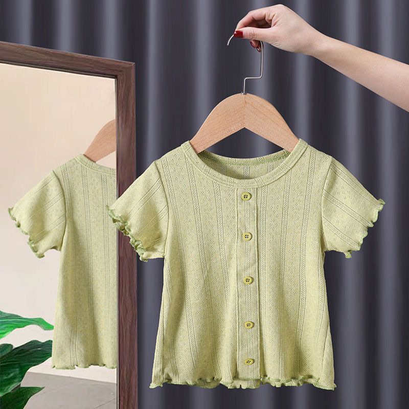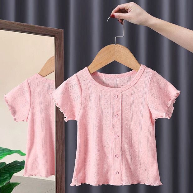 여자 여름 반팔 티셔츠 아기의 서양식 어린이 독특한 유행 한국 스타일 자카드 귀 테두리 달콤한 반소매 탑스토어 가기