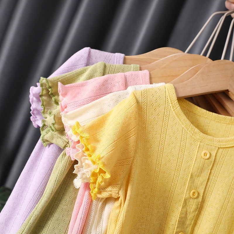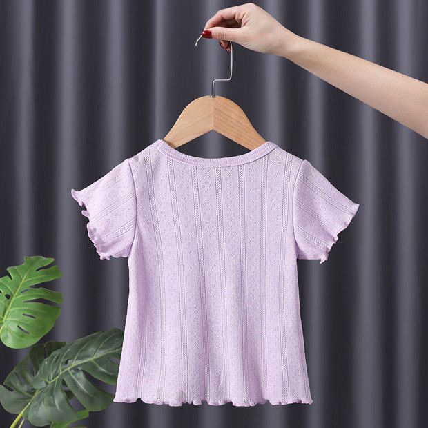 여자 여름 반팔 티셔츠 아기의 서양식 어린이 독특한 유행 한국 스타일 자카드 귀 테두리 달콤한 반소매 탑
