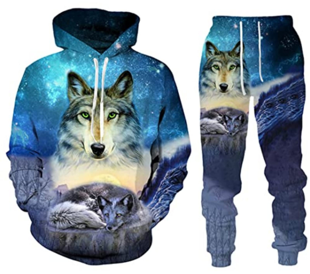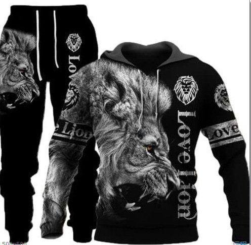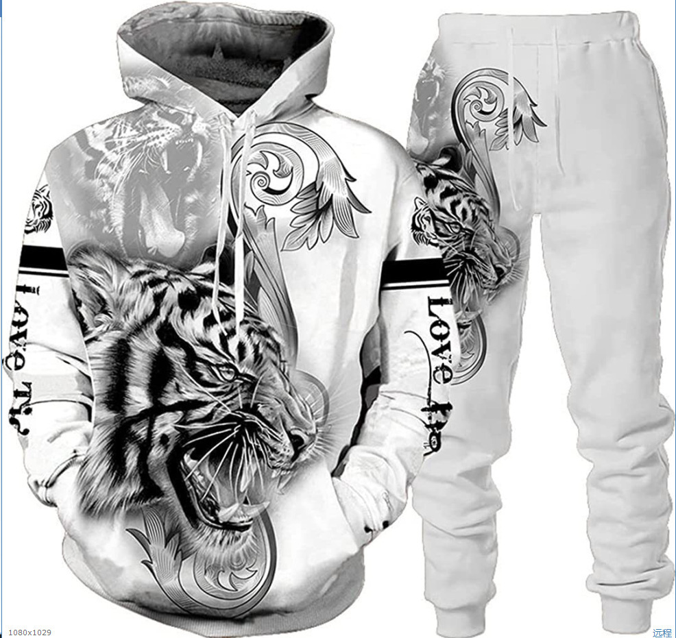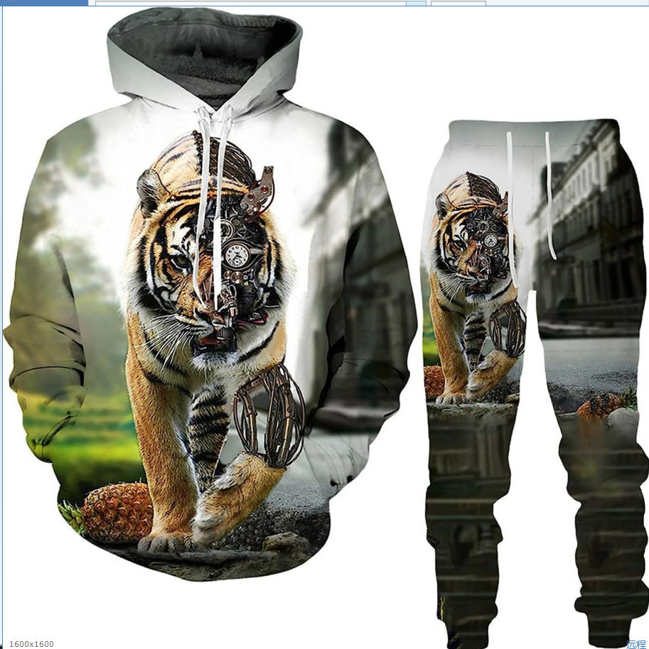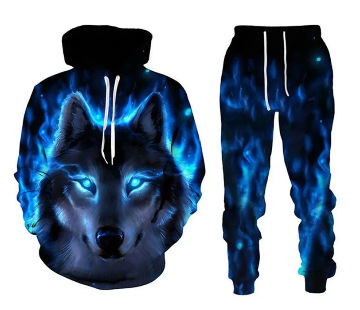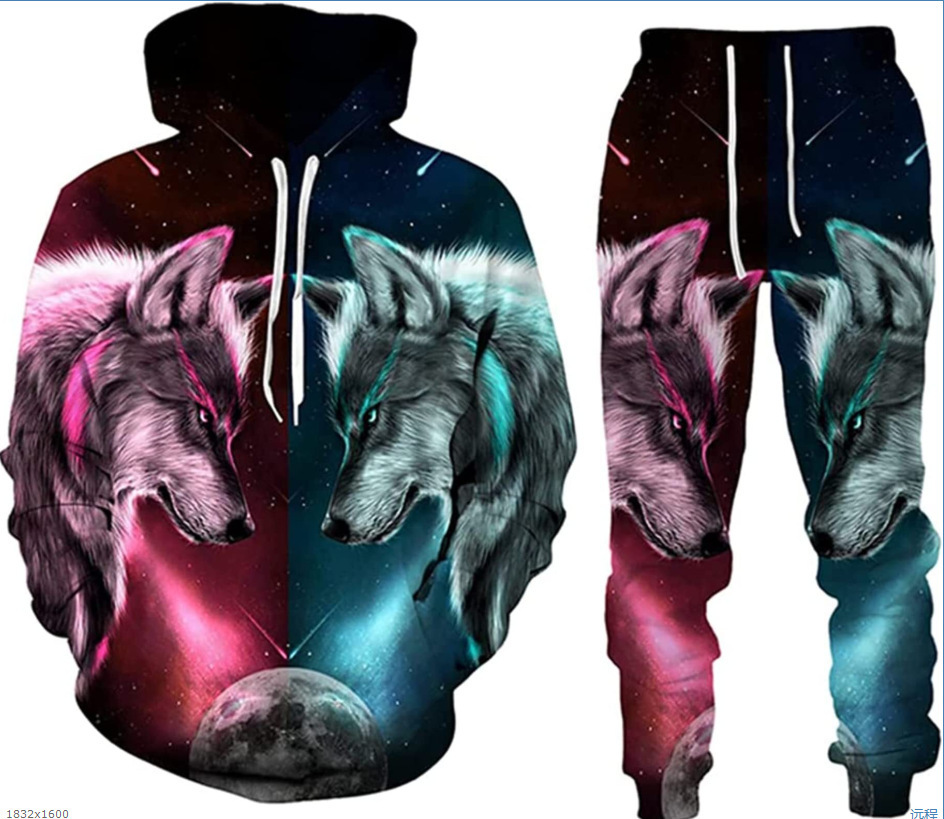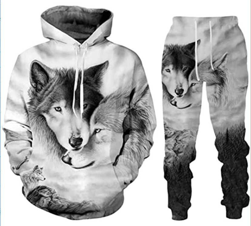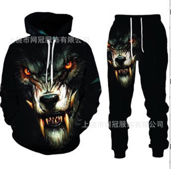 2025 국경을 넘는 새로운 늑대 3D 인쇄 후드 조끼 세트 봄과 가을 유럽과 미국 남성 풀오버 조끼 공장 도매스토어 가기