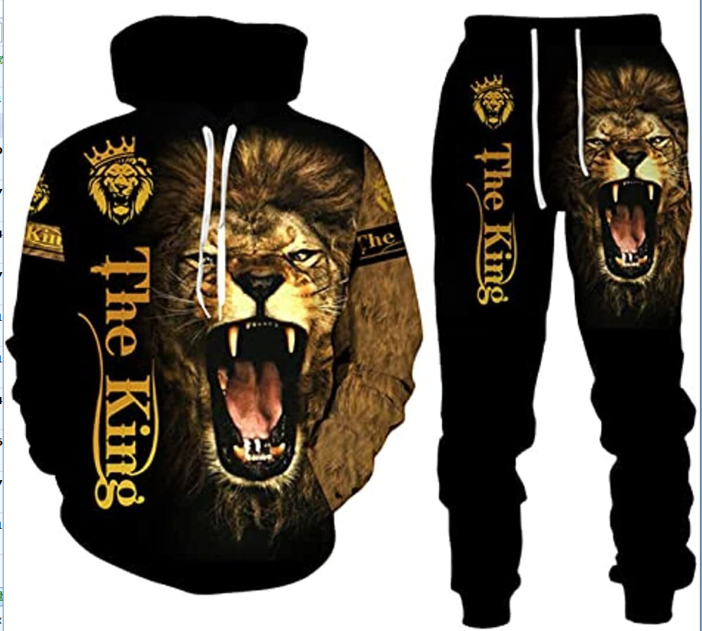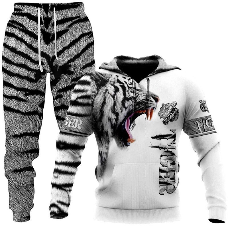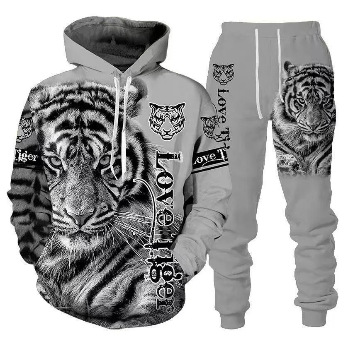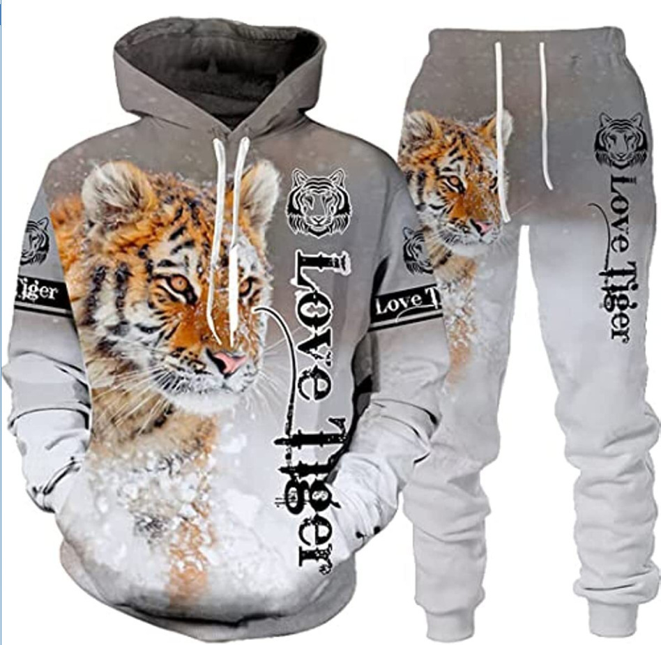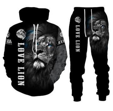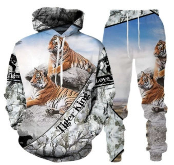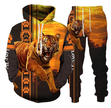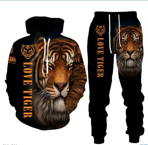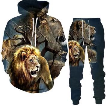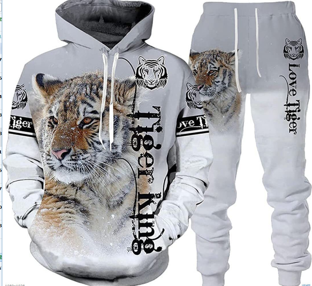 2025 국경을 넘는 새로운 늑대 3D 인쇄 후드 조끼 세트 봄과 가을 유럽과 미국 남성 풀오버 조끼 공장 도매스토어 가기