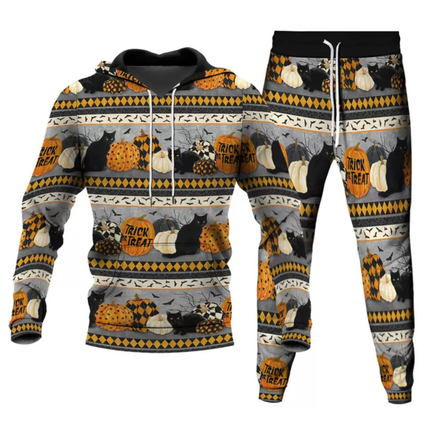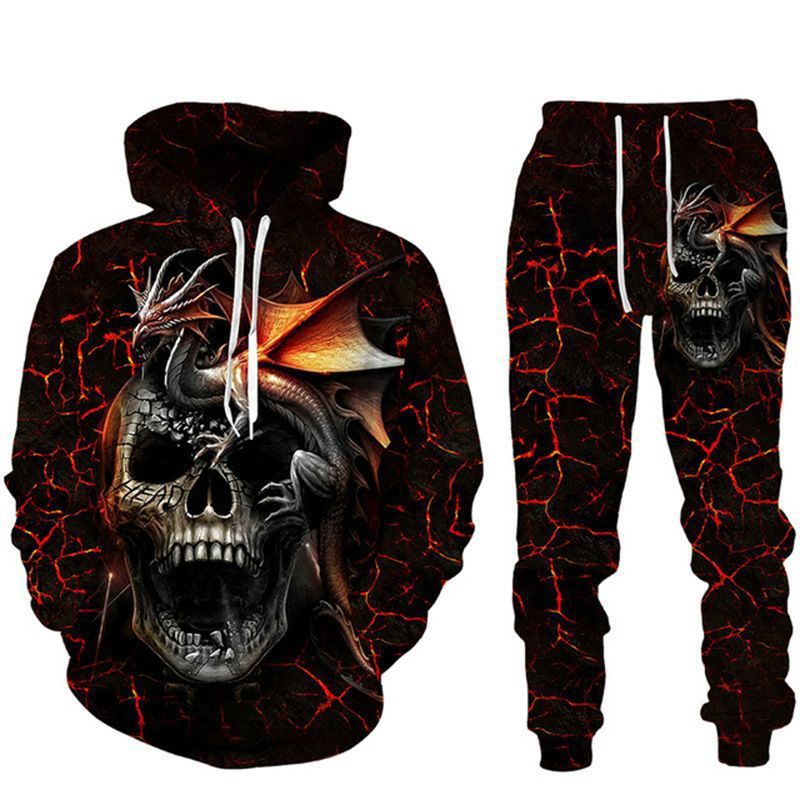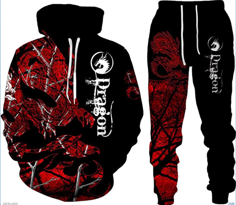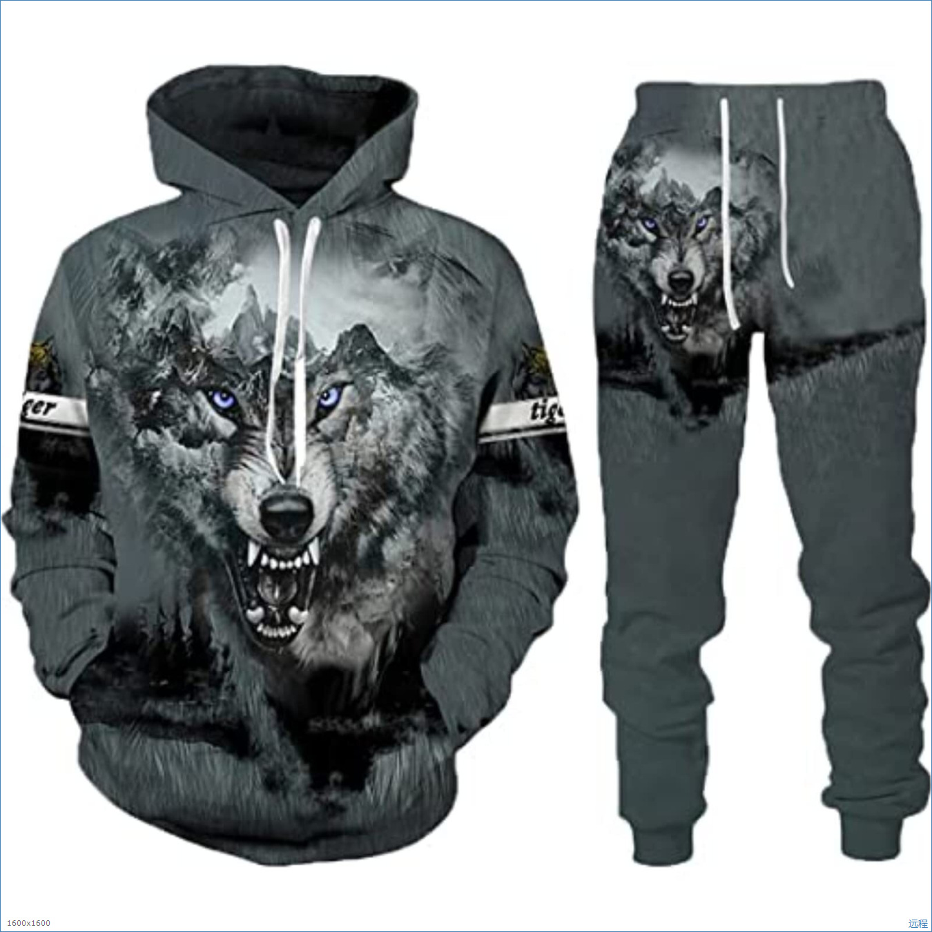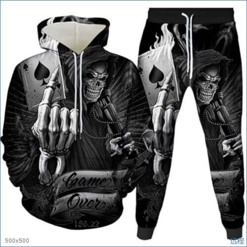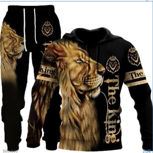 2025 국경을 넘는 새로운 늑대 3D 인쇄 후드 조끼 세트 봄과 가을 유럽과 미국 남성 풀오버 조끼 공장 도매스토어 가기