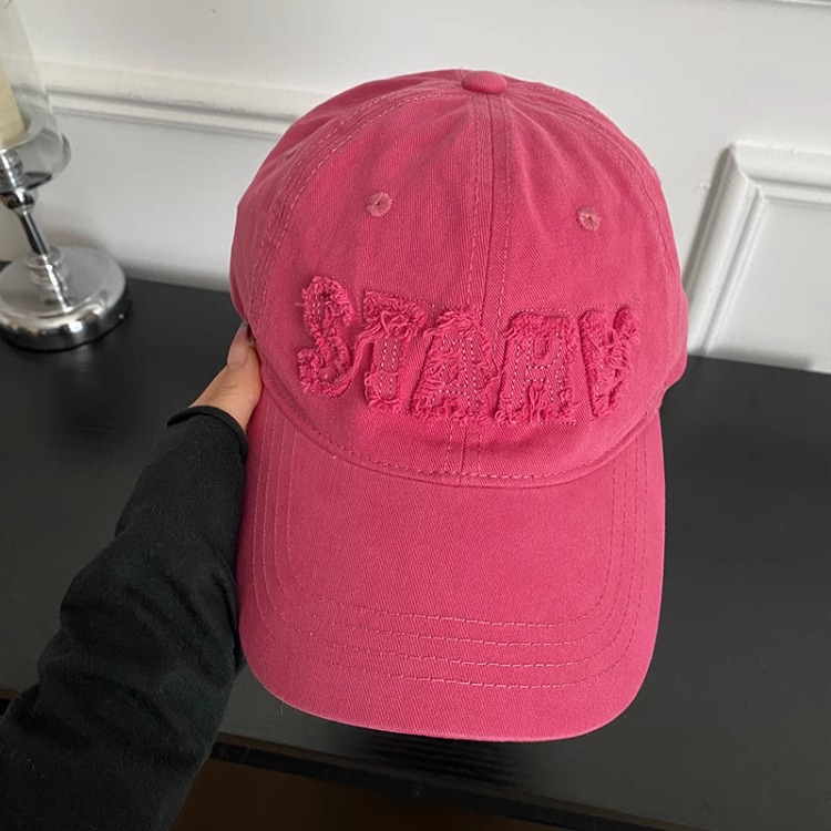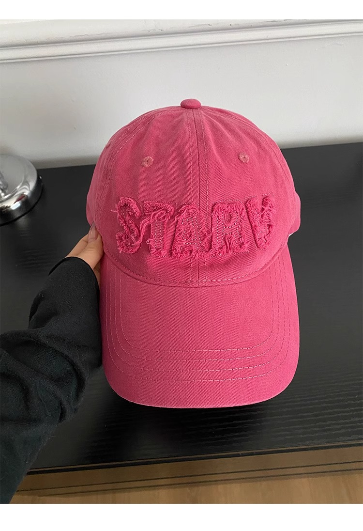 핑크 편지 자수 야구 모자 여자 2025 년 봄 새로운 빅 브림 캡 추가 심화 된 하드 탑 모자