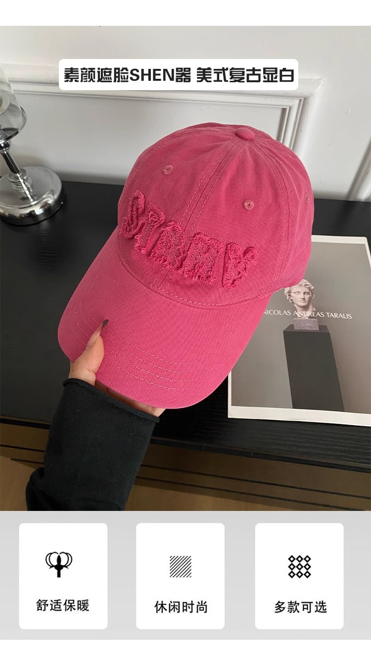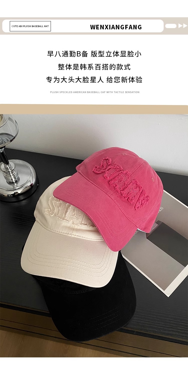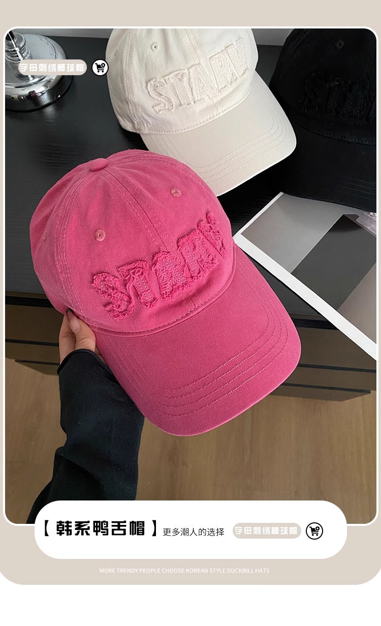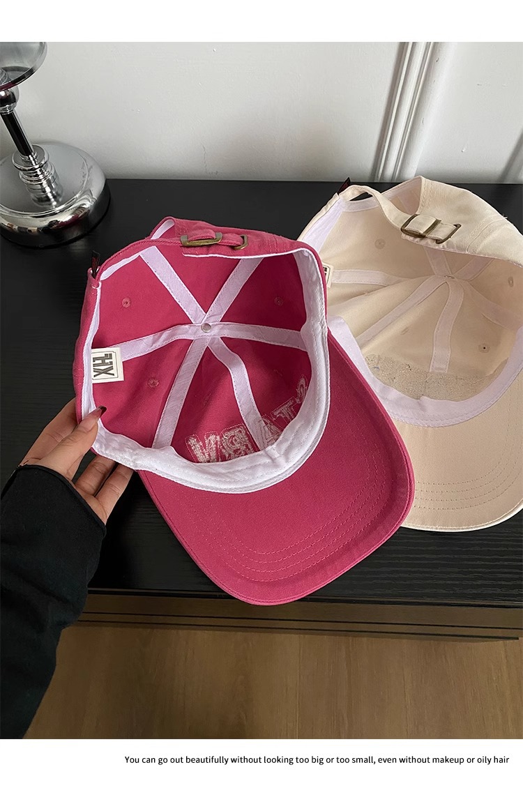 핑크 편지 자수 야구 모자 여자 2025 년 봄 새로운 빅 브림 캡 추가 심화 된 하드 탑 모자스토어 가기