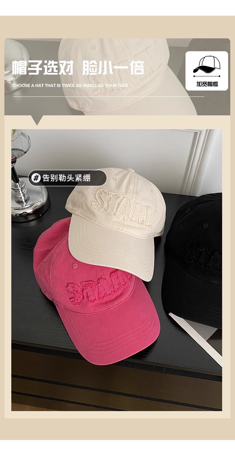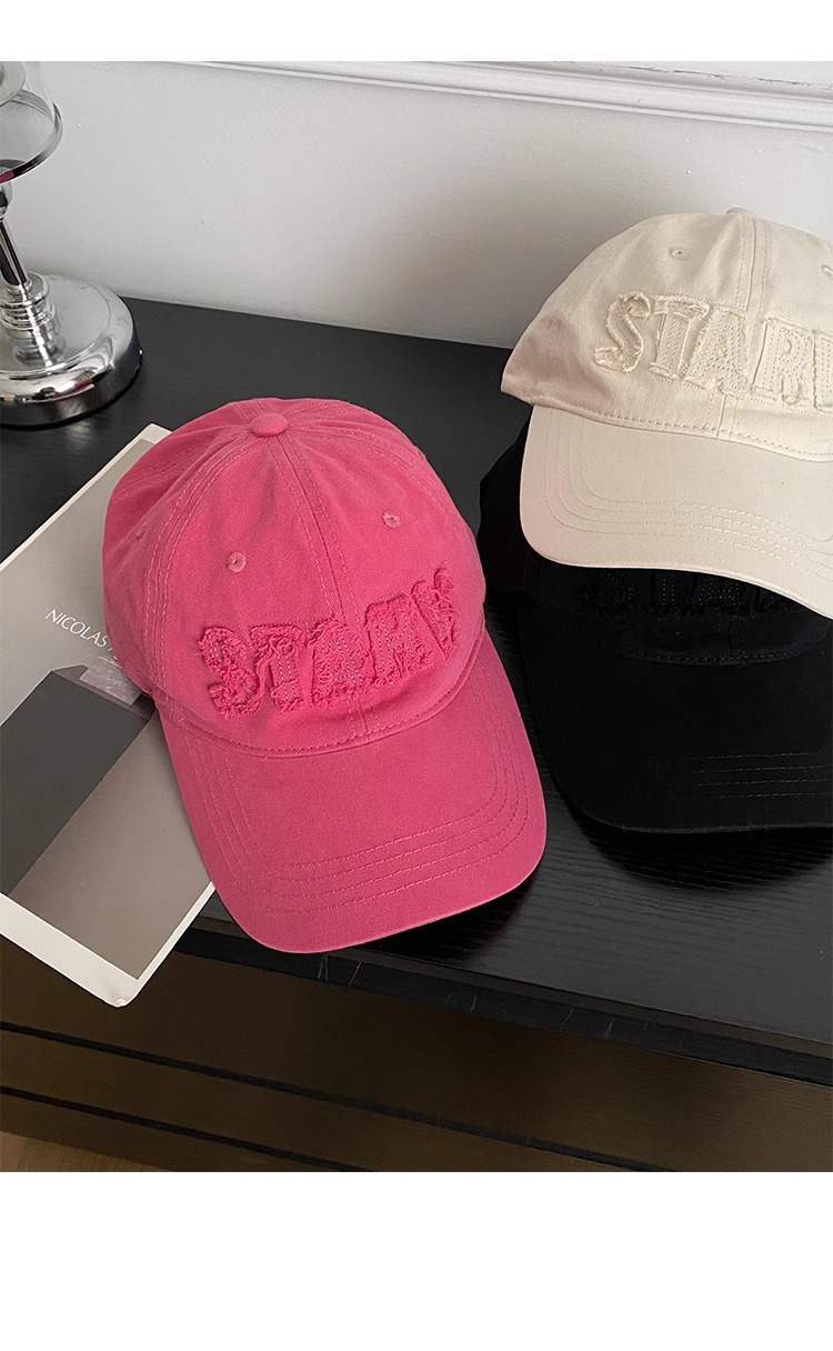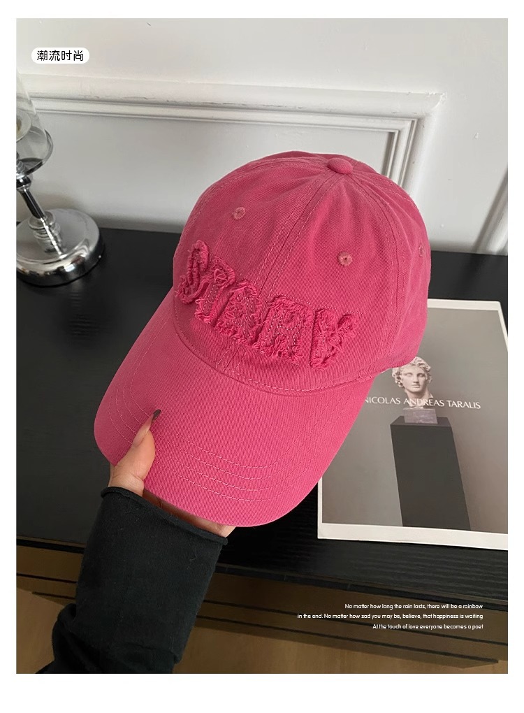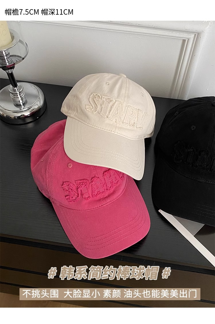 핑크 편지 자수 야구 모자 여자 2025 년 봄 새로운 빅 브림 캡 추가 심화 된 하드 탑 모자스토어 가기