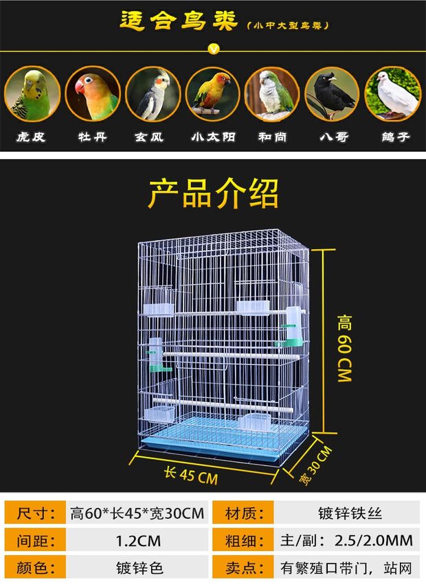 큰 굵은 약한 큰 새 케이지 호랑이 피부 모란 Xuan Feng 앵무새 케이지 블링 비둘기 아연 도금 번식 케이지스토어 가기