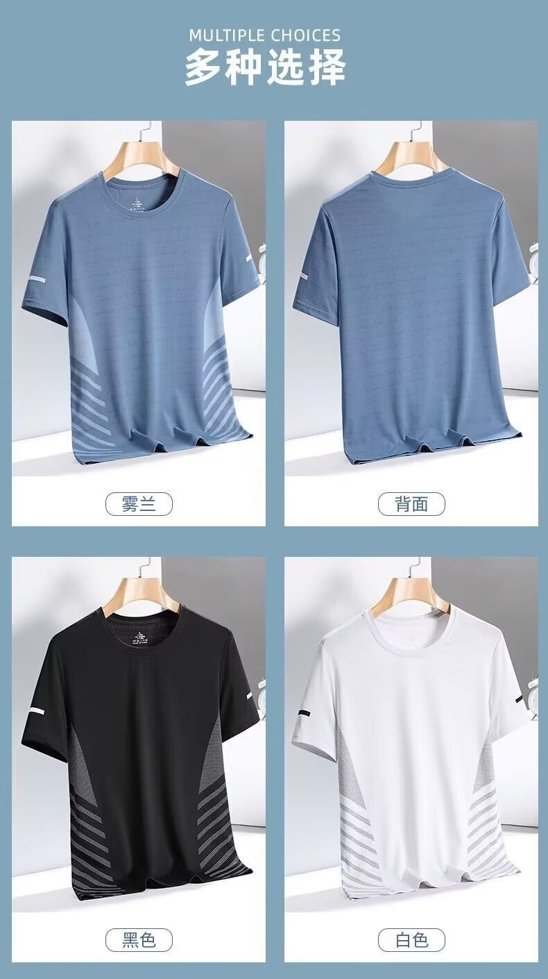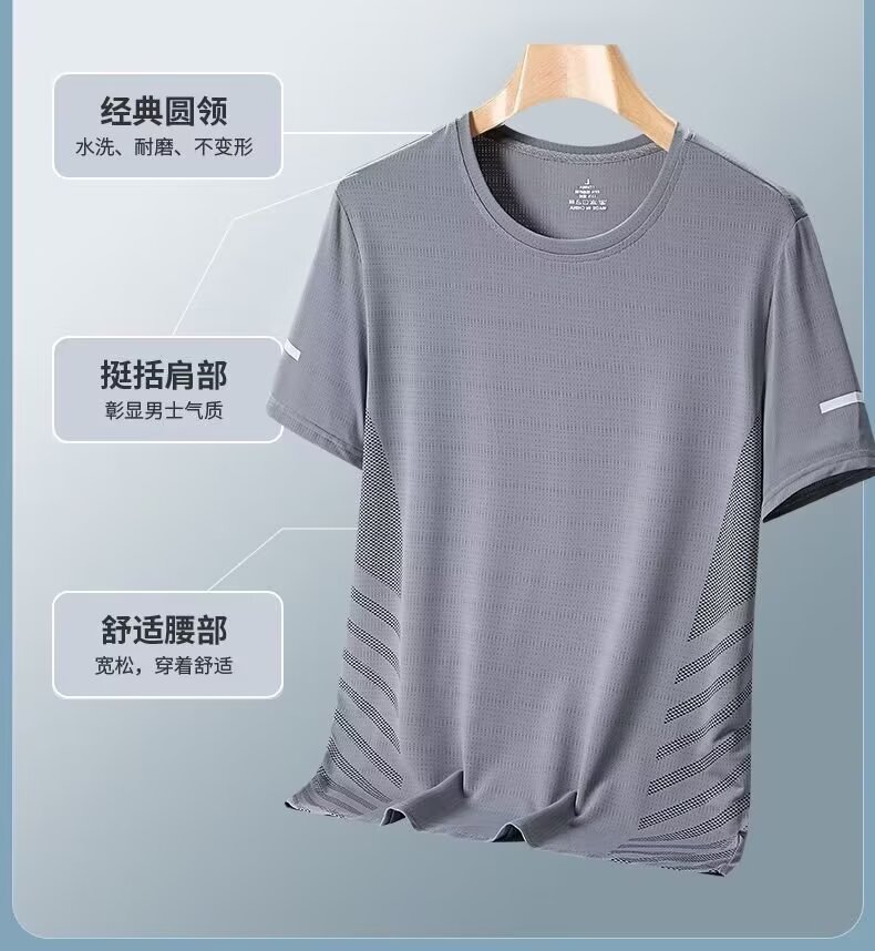 TikTok 폭발 남자 빠른 건조 반팔 티셔츠 여름 아이스 실크 피트니스 내부 농구 배드민턴 통기성 탑