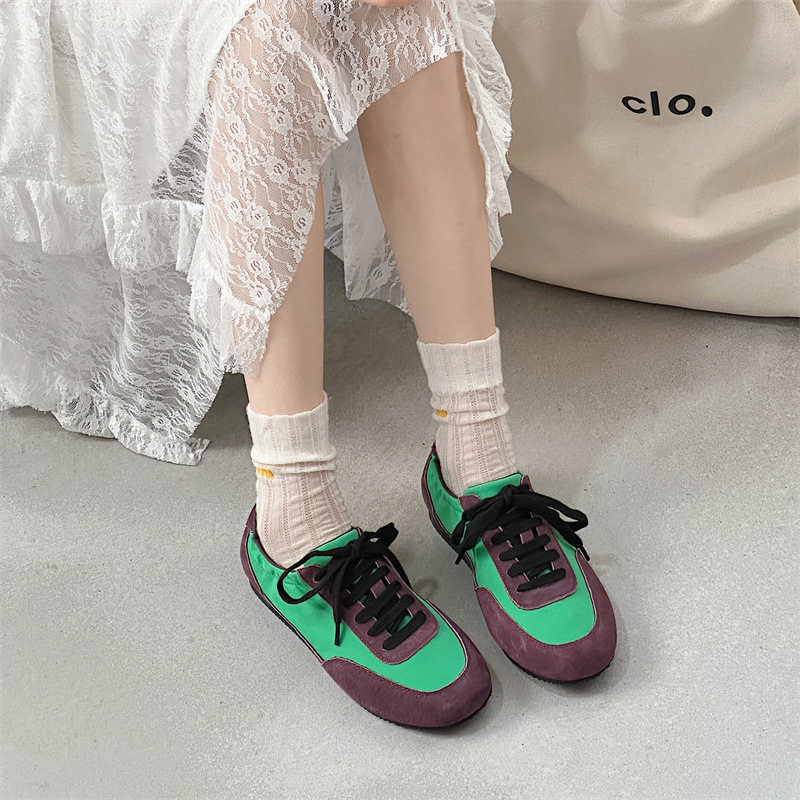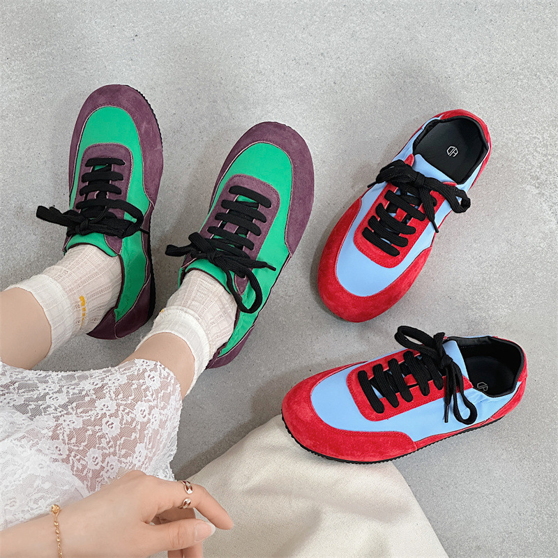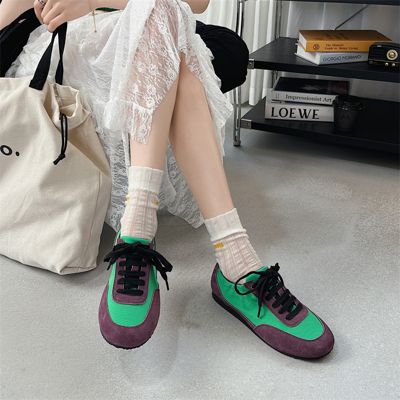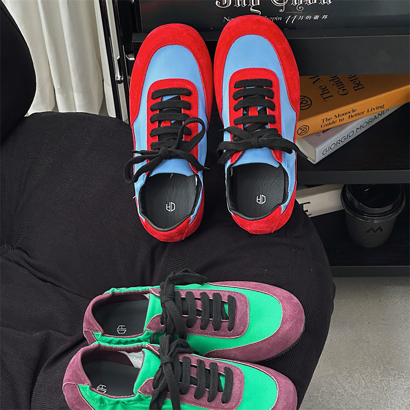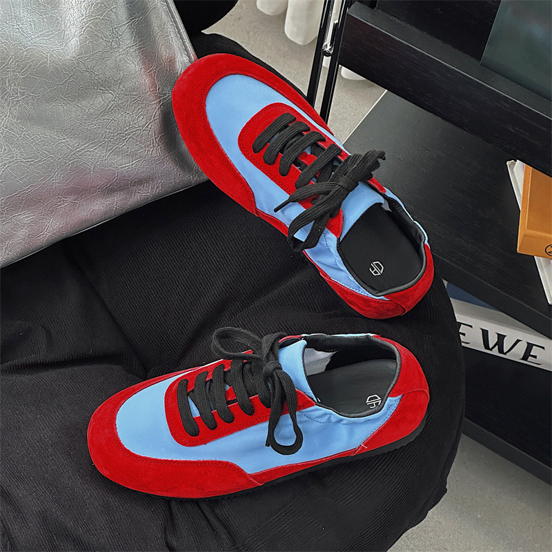 나비 Ao 2025 새로운 패션 올 매치 플랫 독일 트레이닝 신발 카우보이 나일론 컬러 매칭 편안한 캐주얼 레이스 업 포레스트 검프 신발스토어 가기