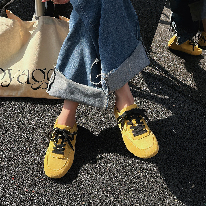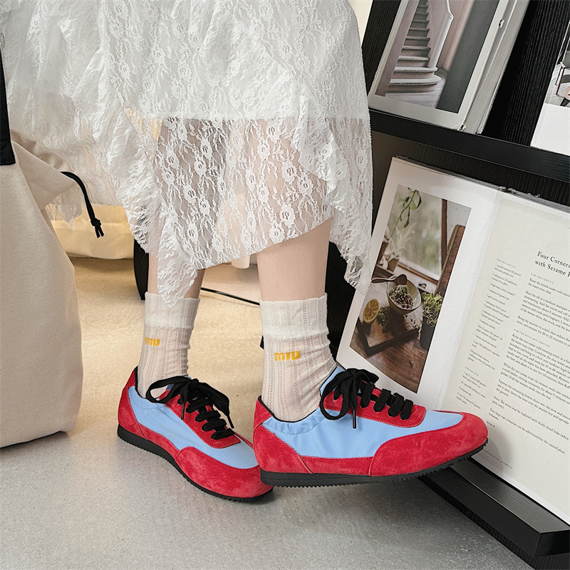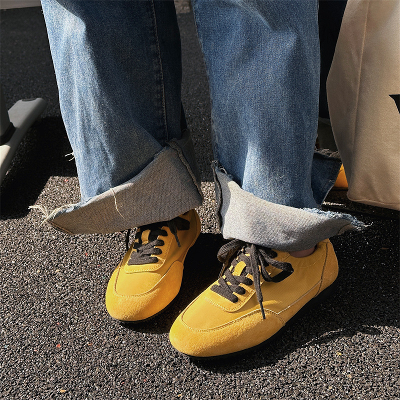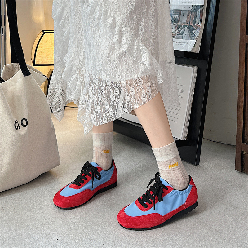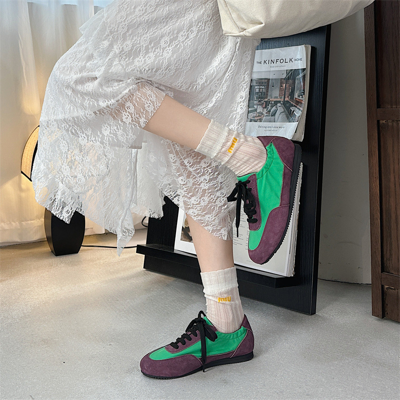 나비 Ao 2025 새로운 패션 올 매치 플랫 독일 트레이닝 신발 카우보이 나일론 컬러 매칭 편안한 캐주얼 레이스 업 포레스트 검프 신발스토어 가기