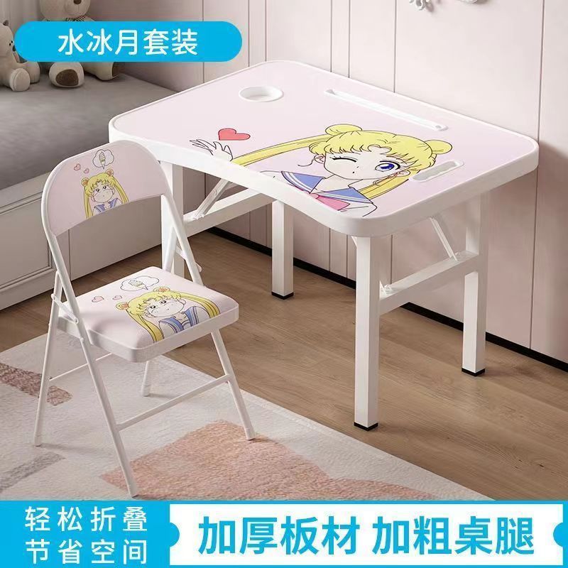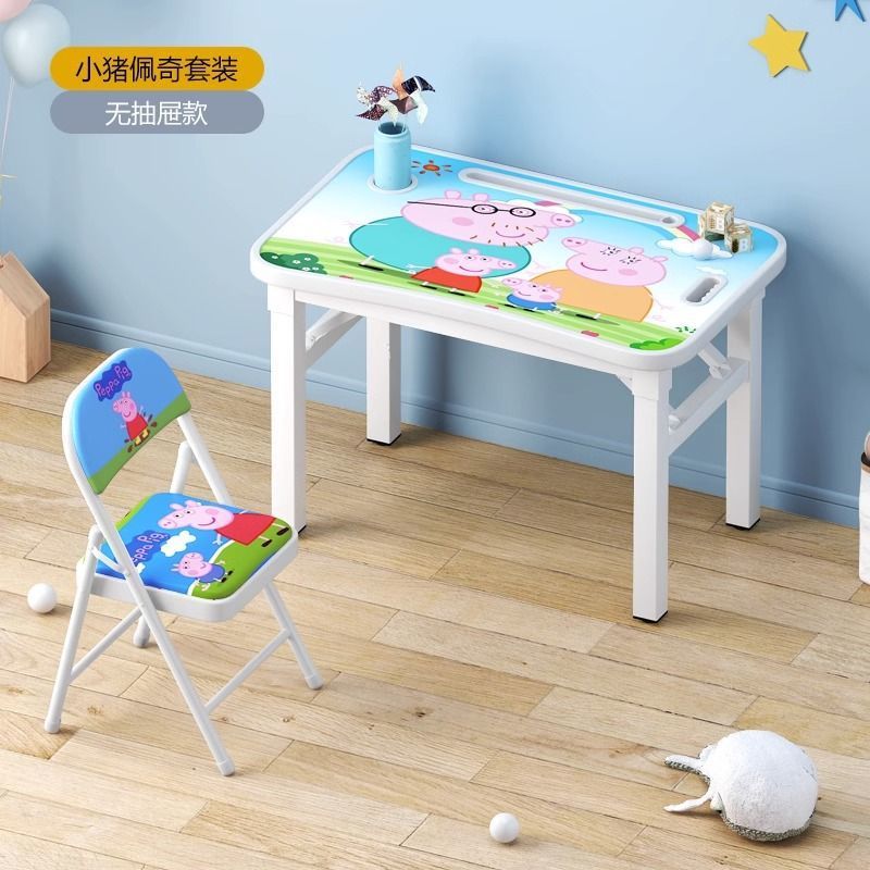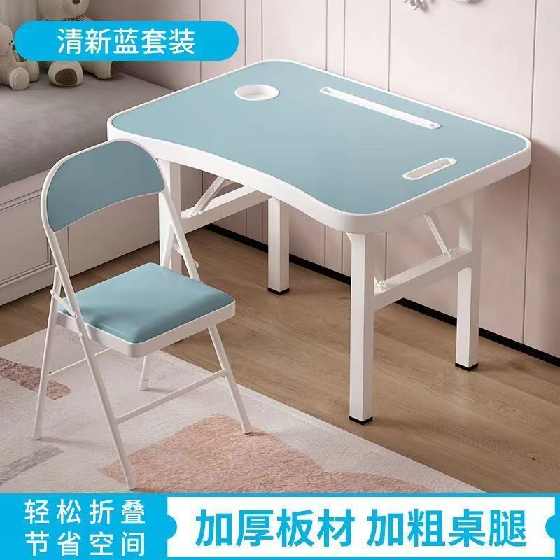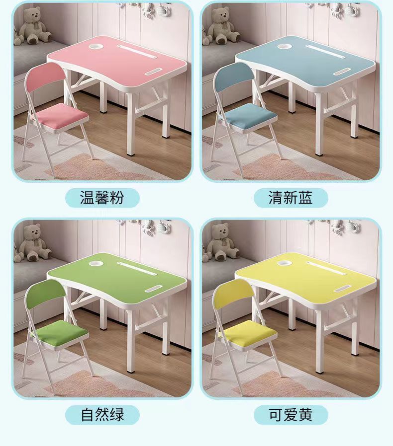 간단한 어린이 책상 의자 연구 테이블 홈 소년과 소녀 학생 및 어린이를위한 접이식 쓰기 작업 테이블 및 의자 세트